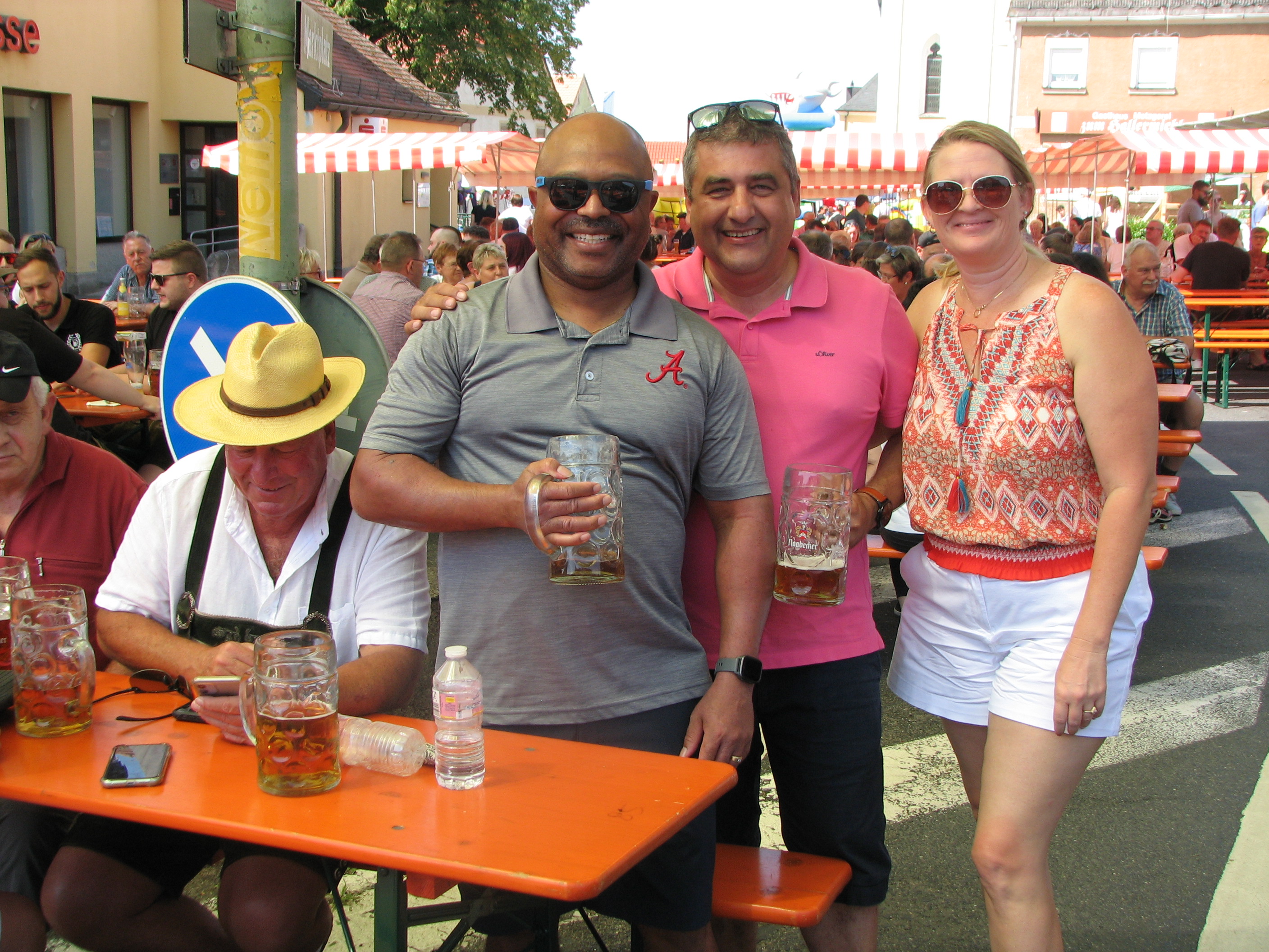 Trotz der gnadenlosen Hitze fanden Weißwürste und Weizenbier kurz darauf ihre Abnehmer. Von Beginn an dabei war Carl Childs, ein amerikanischer Soldat, der bis vor sieben Jahren in Mantel gewohnt hatte. Er kam mit seiner Frau und einem militärischen Kollegen zu einem Besuch nach Deutschland. Manch Manteler Bewohner war sehr erstaunt, ihn in alter Frische wiederzusehen. Schnell fanden alte Kameraden den Weg zu ihm.