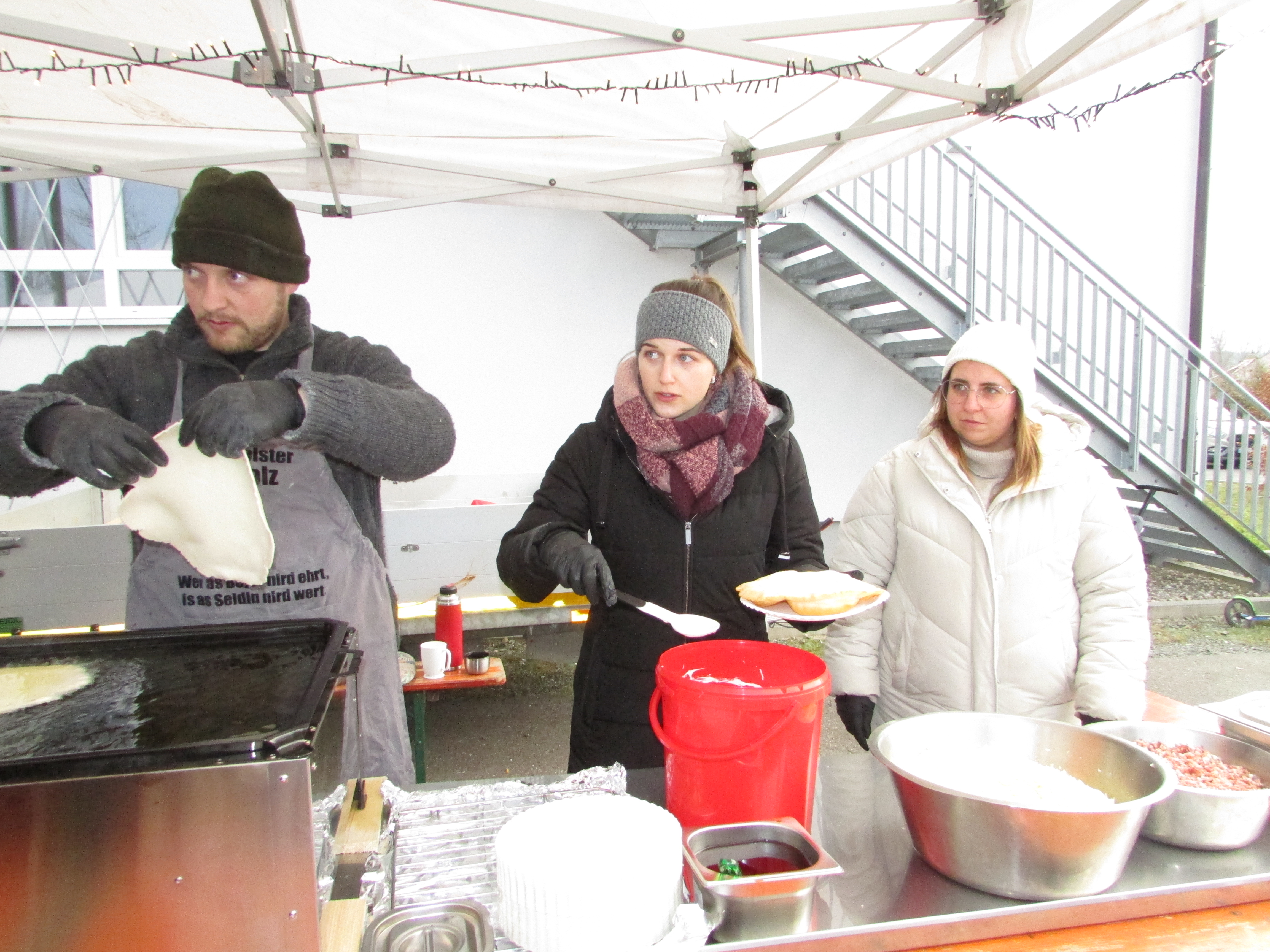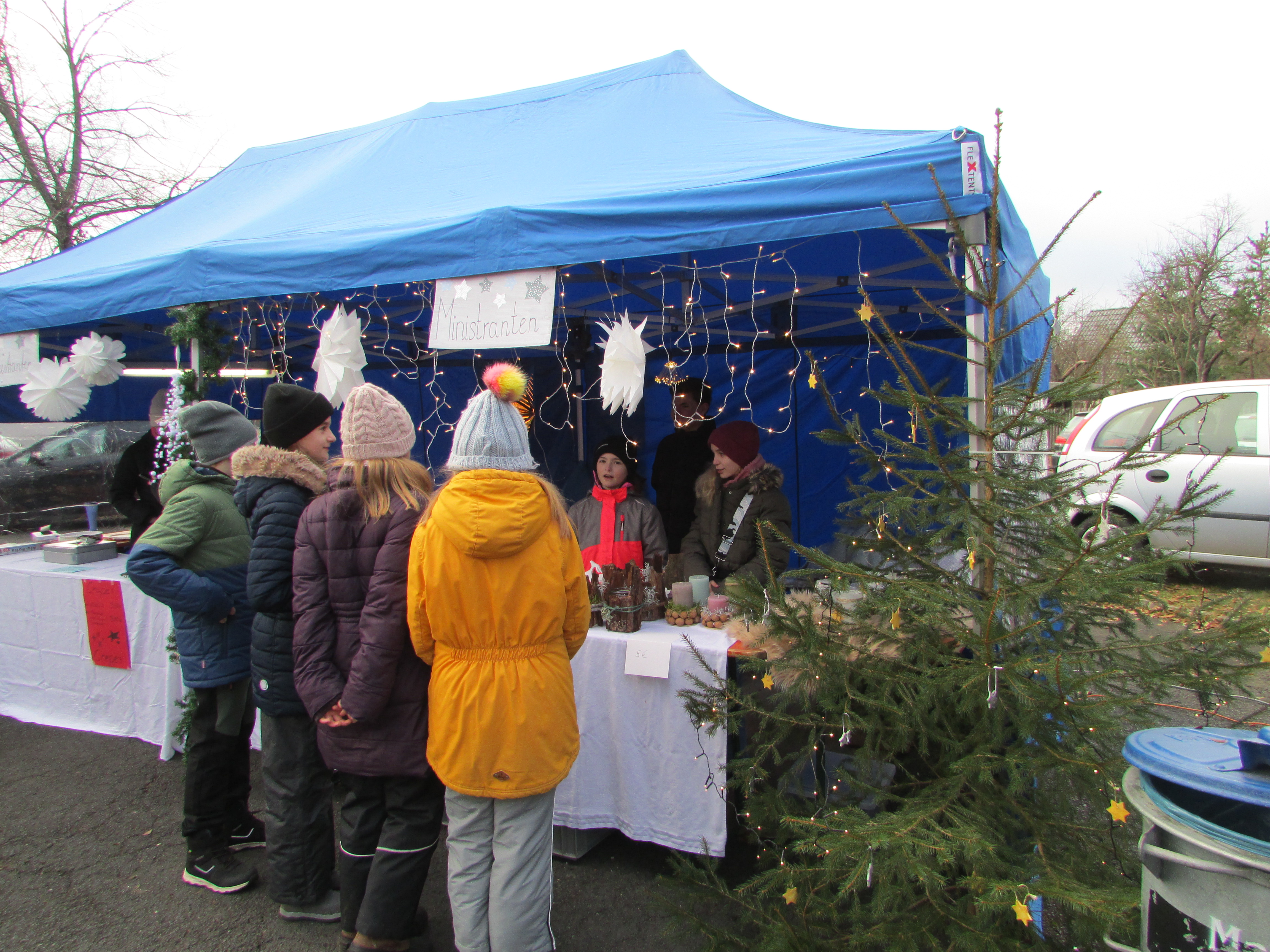 Gleich beim Start um 14 Uhr war der Weihnachtsmarkt in Mantel, der unter Regie der CSU auf dem Mehrzweckhallenparkplatz stattfand ,bestens besucht. Die Ministranten, Elternbeiräte von Schule und Kindergarten, Rote Legion, Junge Union Mantel, Manteler Stammtisch, CSU und Mitbürger aus der Ukraine betrieben Stände. Geboten war alles, was auf einem richtigen Weihnachtsmarkt nicht fehlen darf. Glühwein in verschiedenen Sorten, Bombardino, Feuerzangenbowle oder heißer Apfelsaft mit Zimt oder Amaretto und Kaffee wärmten. Es gab aber auch Bier und kalte Erfrischungsgetränke. Immer eine lange Schlange stand am Bratwurststand an. Auch Pommes und Langos waren im Angebot. Mitbürger aus der Ukraine, die im Pfarrhaus untergebracht sind, servierten Gulaschsuppe und Bortsch. Waffeln oder Crepes und Plätzchen und Lebkuchen waren für die Liebhaber von Süßem im Angebot. Reichhaltig war die Tombola des VfB bestückt, ein weithin sichtbares Maskottchen verkaufte die Lose. Der Kinderchor unter Leitung von Susanne Hausmann bezauberte mit „Schneeflöckchen“ und weiteren Liedern und musste als Zugabe noch die Weihnachtsbäckerei singen. Die Damen vom Singkreis unter Leitung von Susanne Stark beschworen : „Frieden in der Welt „und ließen die „‘Jingle Bells“ läuten. Später trat noch der Posaunenchor unter Leitung von Veronika Weber auf. Die Bläser hatten neben üblichen Weihnachtsliedern auch noch das Lied vom „Kleinen Trommler“ im Repertoire. Alle Gruppen erhielten verdienten Beifall. Der Nikolaus der Kolpingsfamilie beschenkte die Kinder. Ausreichend Feuerstellen sorgten für Wärme und die Besucher standen in Gruppen gemütlich beisammen und genossen den ersten Adventssonntag bis in die Abenstunden. Es gab auch noch Bastelarbeiten zu kaufen und ein gewerblicher Anbiete hatte ebenfalls weihnachtliche Holzarbeiten dabei.