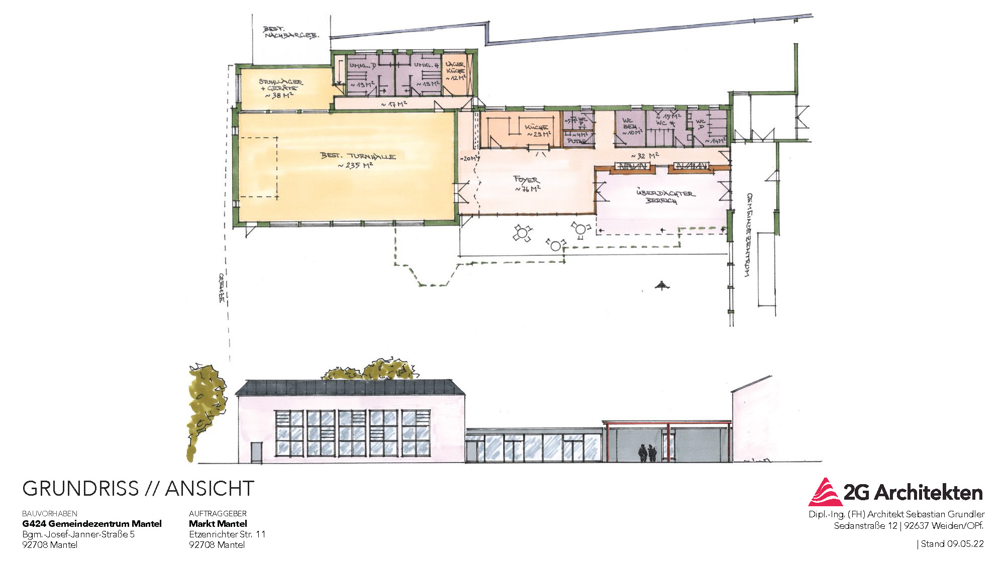In der letzten Sitzung des Marktgemeinderates stellten Architekt Sebastian Grundler und Marion Braun von den 2G-Architekten das Sanierungskonzept für die Mehrzweckhalle vor. Eine Machbarkeitsstudie hatte vier Möglichkeiten aufgezeigt von Sanierung bis Neubau. Es gab dann einige Besprechungen mit der Regierung der Oberpfalz hinsichtlich möglicher Fördermittel wie Sportstättenförderprogramm und Städtebauförderung. Das Architekturbüro erarbeitete weitere Varianten und es gab nochmal Rücksprache mit der Regierung. Die letzte nun vorgestellte Möglichkeit hat das Ziel, alle Kriterien, die für die Förderungen erforderlich sind, zu erfüllen. Wie die Fachleute erklärten ,muss das Bestandsgebäude erhalten werden, soweit dies möglich ist, also die Mehrzweckhalle und ein großer Teil der Nebenräume. Das weitere Raumprogramm ist auf ein Minimum zu reduzieren und es müssen flexible Nutzflächen geschaffen werden. „Durch den Umbau und die Sanierung ist ein gestalterischer Mehrwert zu erzielen“, so de Architekten. Geplant ist nun, dass Halle und Nebenräume bestehen bleiben mit Geräteraum und Umkleiden und diese werden saniert und geringfügig umgebaut. Die bestehende Fläche zwischen Halle und dem bereits sanierten Gemeindezentrum wird rückgebaut, umgebaut und saniert. Sowohl das Gemeindezentrum als auch der neue Mehrzweckhallenbereich wird über eine überdachte Eingangszone erschlossen. Der Mehrzweckhalle ist ein großzügiges Foyer mit Küche vorgeschaltet. Dieser Foyerbereich ist im Bedarfsfall als kleiner Veranstaltungsraum nutzbar, zeitgleich mit einer Belegung der Mehrzweckhalle. Die Küche ist lediglich für Anlieferungen (Catering) bzw. zur Nutzung von Vereinen ausgelegt und nicht für eine gewerbliche Bewirtschaftung. Eine Förderung würde bei einer Bewirtschaftung der Küche entfallen. Die bereits bestehenden Toiletten im rückwärtigen Bereich des Zwischenbaus bleiben erhalten und sind für beide Gebäudeteile nutzbar (Doppelnutzung). Weitere kleine Nebenräume schließen sich dieser Spange an, der vorgelagerte Erschließungsflur verbindet den Mehrzweckhallenbereich mit dem Gemeinschaftszentrum. Vor dem Foyer soll sich ein kleiner Terrassenbereich befinden, der bei Veranstaltungen mit eingezogen werden kann. Möglich sein sollen flexible Nutzungen des bereits sanierten Gemeindezentrums in Kombination mit dem neu geplanten Mehrzweckhallenbereich. Bei Bedarf ist der Foyerbereich als kleiner Veranstaltungrsraum nutzbar zum Beispiel für Sitzungen oder Vereinsversammlungen, auch zeitgleich mit einer Belegung der Sporthalle und auch Veranstaltungen im Gemeindezentrum. Das Foyer steht auch dem Gemeindezentrum zur Verfügung zum Beispiel bei Trauungen, es kann aber auch bei größeren Veranstaltungen der Mehrzweckhalle zugeschaltet werden. Der Markt Mantel hofft, wenn alles gut läuft, dass die Sanierung der Halle als Sportstätte zu 90 Prozent gefördert wird und der andere Teil zu 60 Prozent über die Städtebauförderung. Teilweise wurde bedauert, dass kein Gaststättenbetrieb möglich sein darf, denn das würde es keine staatliche Förderung geben. Auf Nachfrage erklärte Bürgermeister Richard Kammerer, dass die Schulturnhalle total ausgebucht ist und sehr wohl noch Bedarf für sportliche Nutzung besteht. Die Halle steht ja auch den Vereinen für Veranstaltungen zur Verfügung ebenso für den Markt Mantel. „Wir werden und dürfen ganz bestimmt keine „Hochzeitshalle“ bauen“, so Kammerer. Wichtig ist für die Marktgemeinderäte, dass die Unterhaltskosten so gering wie möglich sind. Durch die Diskussion stellte sich heraus, dass doch noch viele Fragen offen sind, außerdem wurde ein Bürgerantrag angekündigt und so erging gegen die drei Stimmen der Freien Wähler der Beschluss, dass der Vorentwurf bei der Bürgerversammlung Ende Juni der Bevölkerung nochmal genauso vorgestellt wird, wie dem Marktgemeinderat und dann die Entscheidung in einer späteren Sitzung des Gremiums fällt.