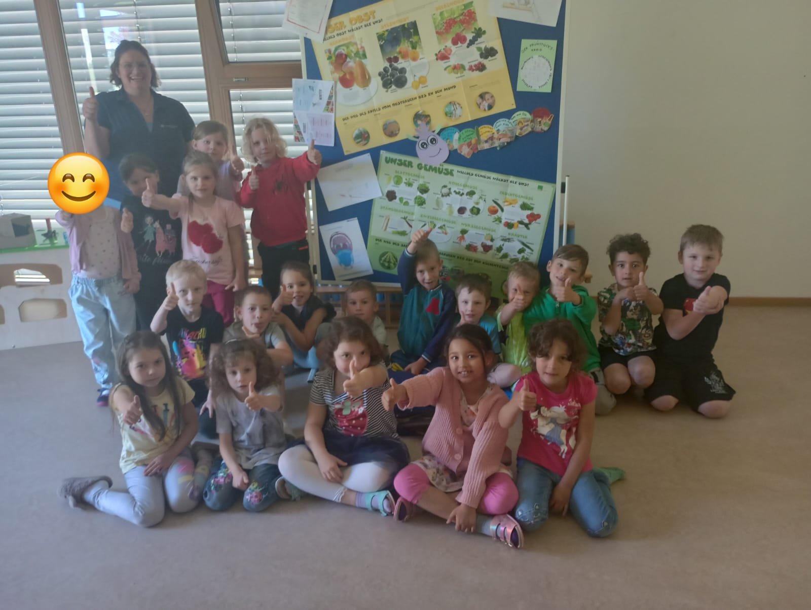 Am Montag den 13.05.2024 durften die Schlaufüchse des Kindergarten Sankt Elisabeth ein gesundes Pausenbrot mit bayerischen Milchprodukten durchführen. Hierfür besuchte Kathi Ziegler von den Landfrauen, in Zusammenarbeit mit dem Verband der Milcherzeuger Bayern e.V., durch die das Projekt gefördert wurde den Kindergarten. Kathi vermittelte den Kindern Wissen über die verschiedenen Schneidtechniken wie den Krallengriff oder den Tunnelgriff. So konnten die Kinder dieses beim Schneiden ihres Obstes oder Gemüses gleich mit anwenden. Gemeinsam bastelten die Kinder mit Kathi und Erziehern eine Raupe friss dich satt. Hierfür hatten die Kinder vorab kleine Hausaufgaben auf, die Sie zuvor erledigt hatten. So wurde den Kindern Wissen über die Herkunft unserer Lebensmittel, insbesondere der Milch vermittelt. Zum Schluss ließ sich jedes Kind sein selbst hergestelltes Pausenbrot schmecken. Zum Schluss bekamen die Kinder noch ein Bauernhofmalbuch und Malstifte von Kathi überreicht.