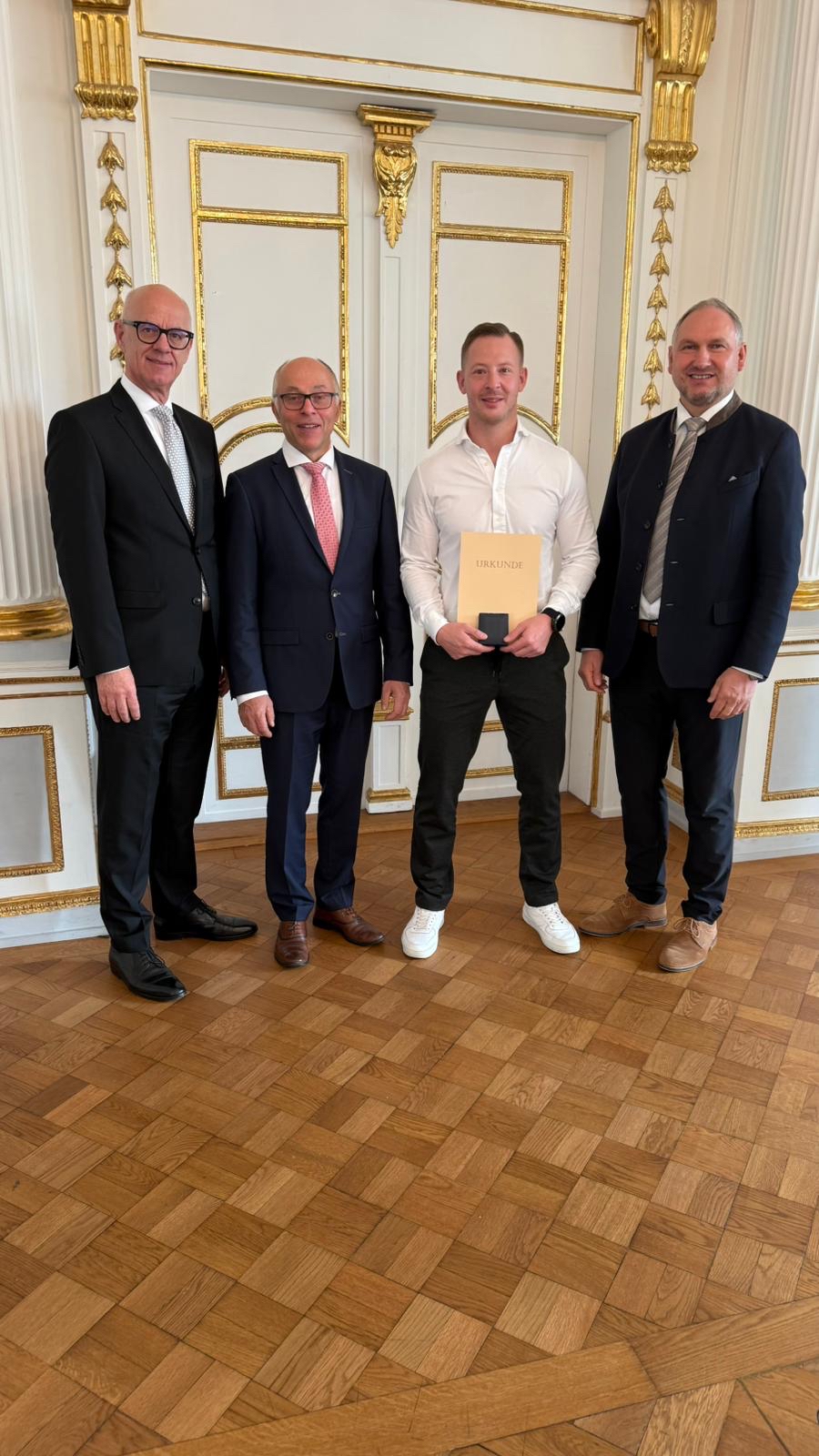 Eine öffentliche Anerkennung erhielt Lukas Reil von Regierungspräsident Walter Jonas. Er hatte zusammen mit Christian von der Heiden einem Unfallopfer das Leben gerettet. Im November 2024 waren beide zufällig auf der B 299 unterwegs. Ein LKW-Fahrer verlor durch einen Herzinfarkt die Kontrolle über sein Fahrzeug und kam schließlich im Graben und einer angrenzenden Wiese zum Stehen. Die Helfer bemerkten das Unglück und eilten ohne zu Zögern zum Unfallopfer. Dieser war nicht ansprechbar im Fußraum seines Fahrzeuges. Beide begannen unverzüglich mit der Reanimation, fast zehn Minuten bis zum Eintreffen des Rettungsdienstes. Sie haben unter schwersten Bedingungen alles getan, um ein Leben zu retten. Durch das besonnene Handeln hat der LKW-Fahrer überlebt, deshalb wurden beide kürzlich vom Regierungspräsidenten im Beisein von Bürgermeister Richard Kammerer ausgezeichnet.