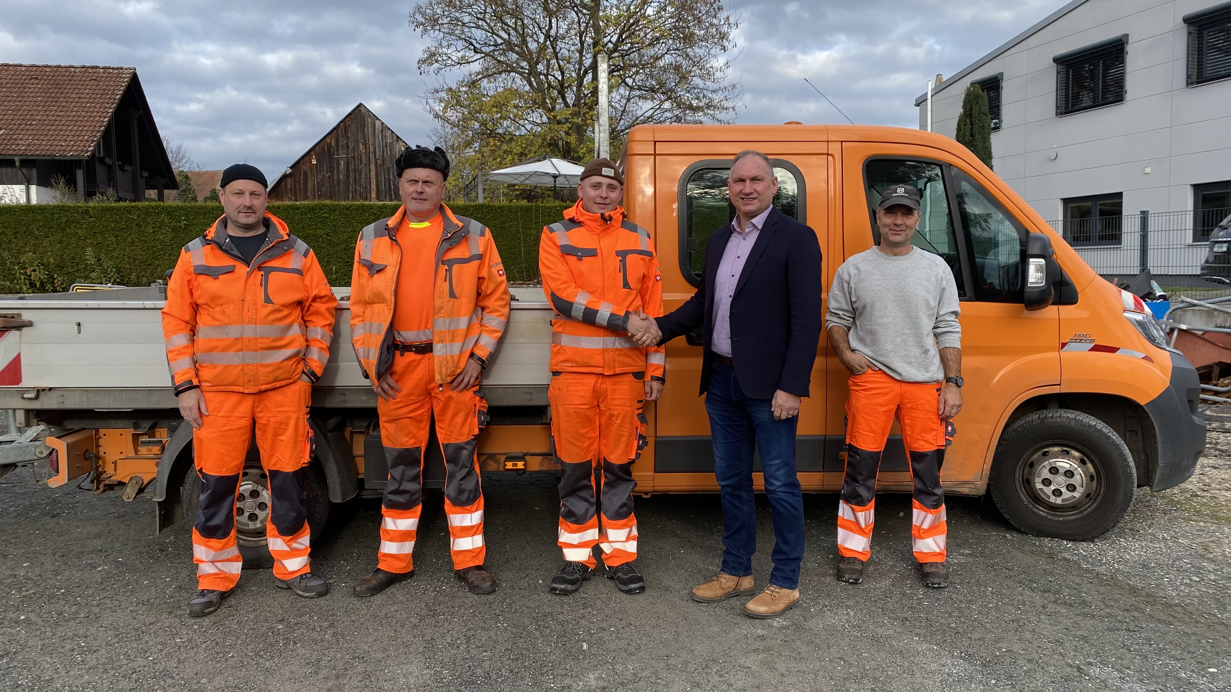 Über Verstärkung freuen sich die Mitarbeiter des Manteler Bauhofs. Per Handschlag begrüßte Bürgermeister Richard Kammerer Philipp Würdinger im Bauhofteam. Er stammt aus Mantel und hat eine Berufsausbildung als Schreiner, ist 29 Jahre alt und war auch als Fachkraft im Fahrbetrieb tätig.