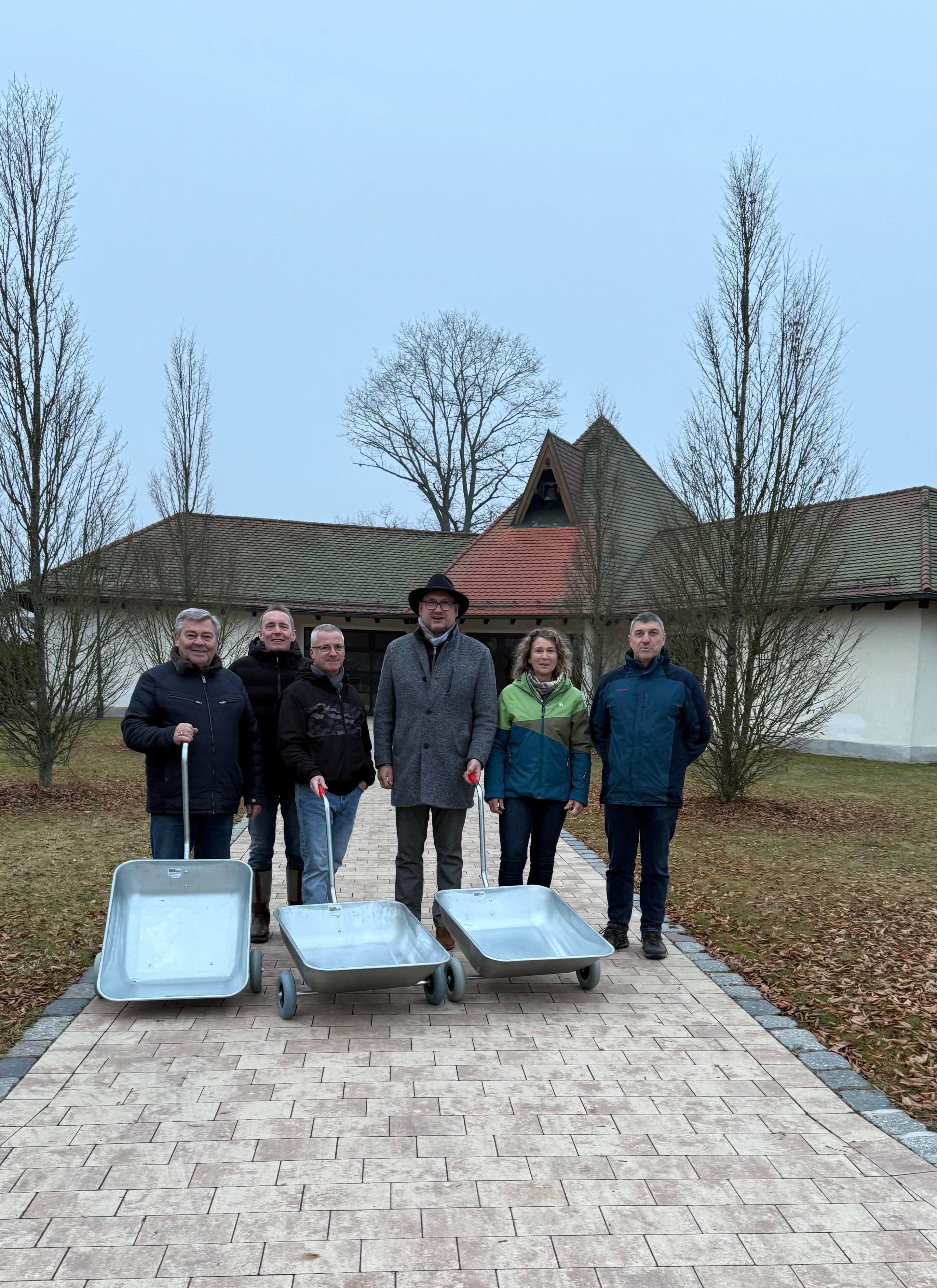 Eine hilfreiche Erleichterung im Alltag am Friedhof: Die Freien Wähler Mantel haben drei Gartenkarren gespendet, die ab sofort am Mantler Friedhof genutzt werden können.