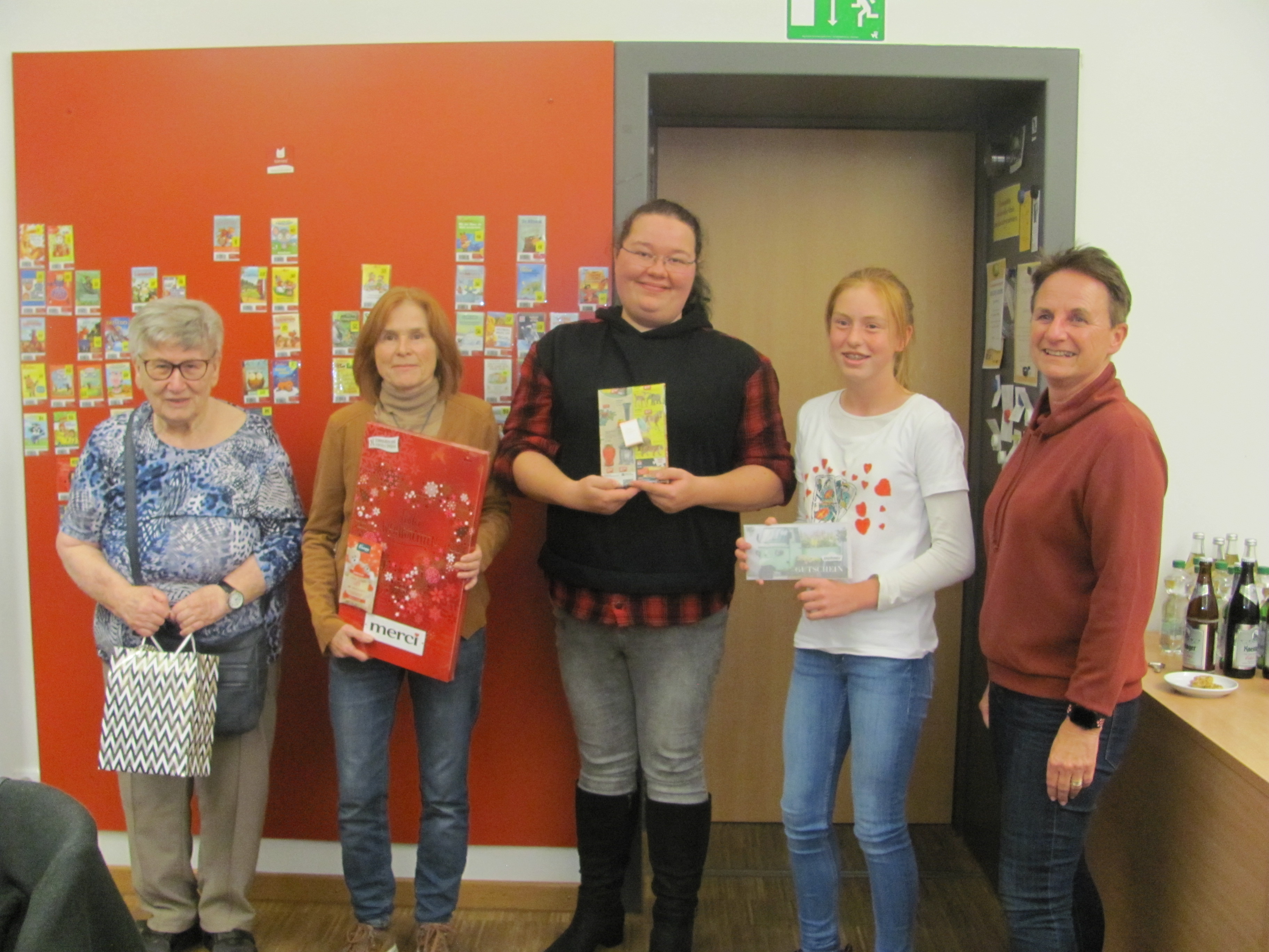 Wie schon seit vielen Jahren, nur mit einer Corona-Pause kartelten auch in diesem Jahr nur Frauen in der Marktbibliothek beim Preisschafkopf um Punkte. Jede Dame bringt als Startgeld ein Geschenk im Wert von zehn Euro mit und in der Reihenfolge der Gewinner werden dann die Geschenke ausgesucht. Die Aufsicht führten Petra Ferazin-Grundler, Liane Schmid und Dagmar Miedl. Liane Schmid spielt selbst mit damit auch der letzte Tisch zu viert spielen konnte und nach früheren Misserfolgen konnte sie diesmal mit 62 Punkten den ersten Platz erobern, gefolgt von Rebecca Friedrich mit 52 Punkten und Gerlinde Adam mit 52 Punkten. Schlusslicht war Linda Kraus mit 23 Punkten. Es wurden zwei Runden mit je 20 Spielen gemacht. Stammgäste sind schon die Familien Kuschidlo-Friedrich. Hier sind mit Oma Erika Kuschidlo, Dorotheka Friedrich (Tochter) und Rebecca und Fransiska Friedrich drei Generationen am Start. Es gab noch eine weitere Konstellation mit Oma und Enkelinnen. Die Enkel hatten für die Oma ein T-Shirt mit Spielkarten bemalt und auf der Rückseite stand: „Zocker-Oma“. Die Enkelinnen trugen das gleiche Shirt mit „Zocker-Enkel“ Petra Ferazin-Grundler gab die Gewinner und die Punkte bekannt.