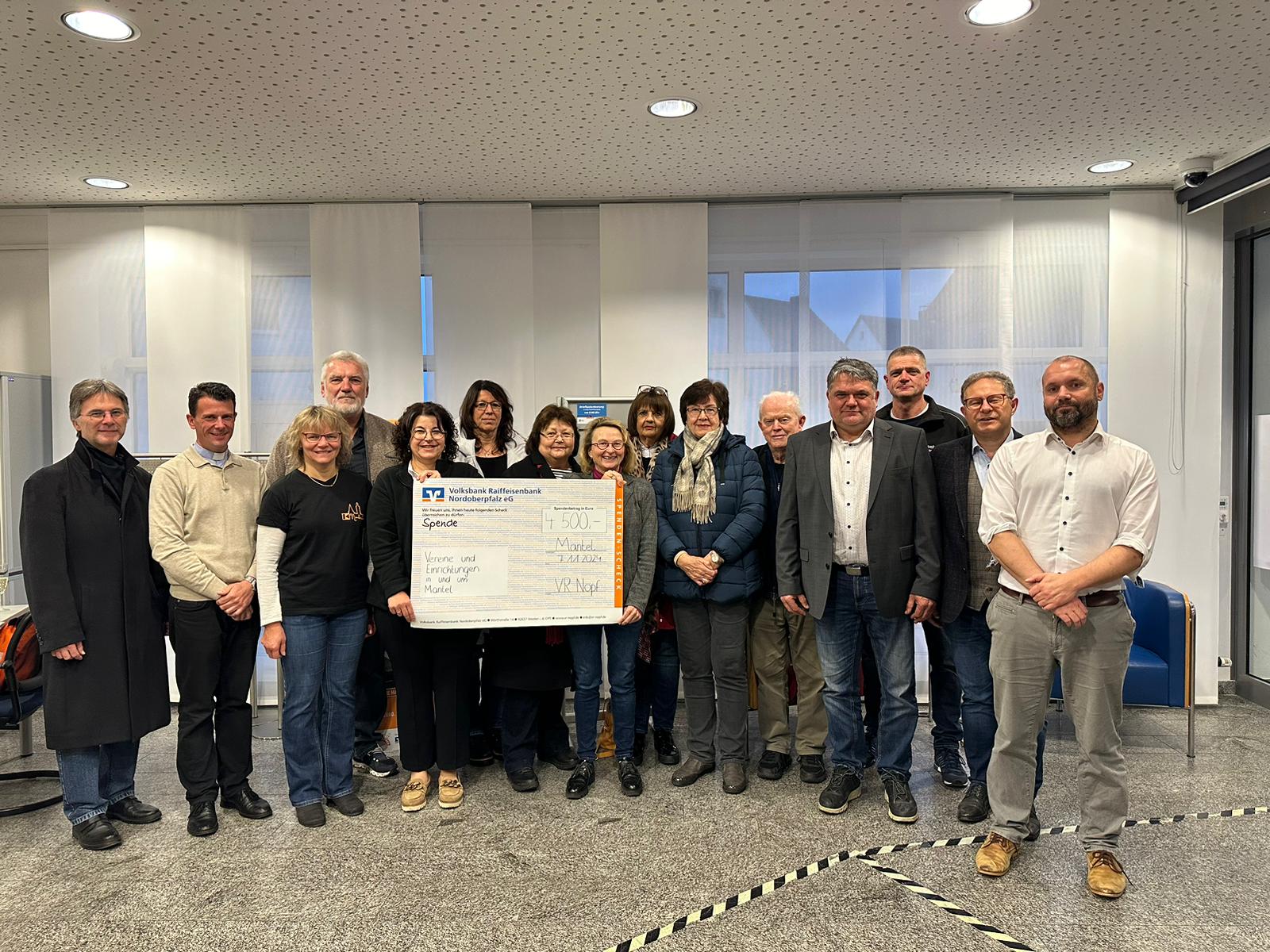Auch in diesem Herbst spendete die Manteler Filiale der Volksbank-Raiffeisenbank wieder an 12 Vereine und Organisationen die Summe von 4.500 Euro aus dem Gewinnsparen. Daniel Dörfler übergab mit Kolleginnen Nina Trenz und Marion Radlbeck die Schecks. Unter anderem freuten sich die Marktbibliothek, der Förderverein St. Moritz, der VdK über die Zuwendung. Mit dieser Spende möchte die örtliche Bank die gemeinnützigen Institutionen und das Ehrenamt am Ortfördern. Die „Beschenkten“ waren sichtlich erfreut und haben immer Bedarf an Fördergeldern für ihre wertvolle Arbeit.