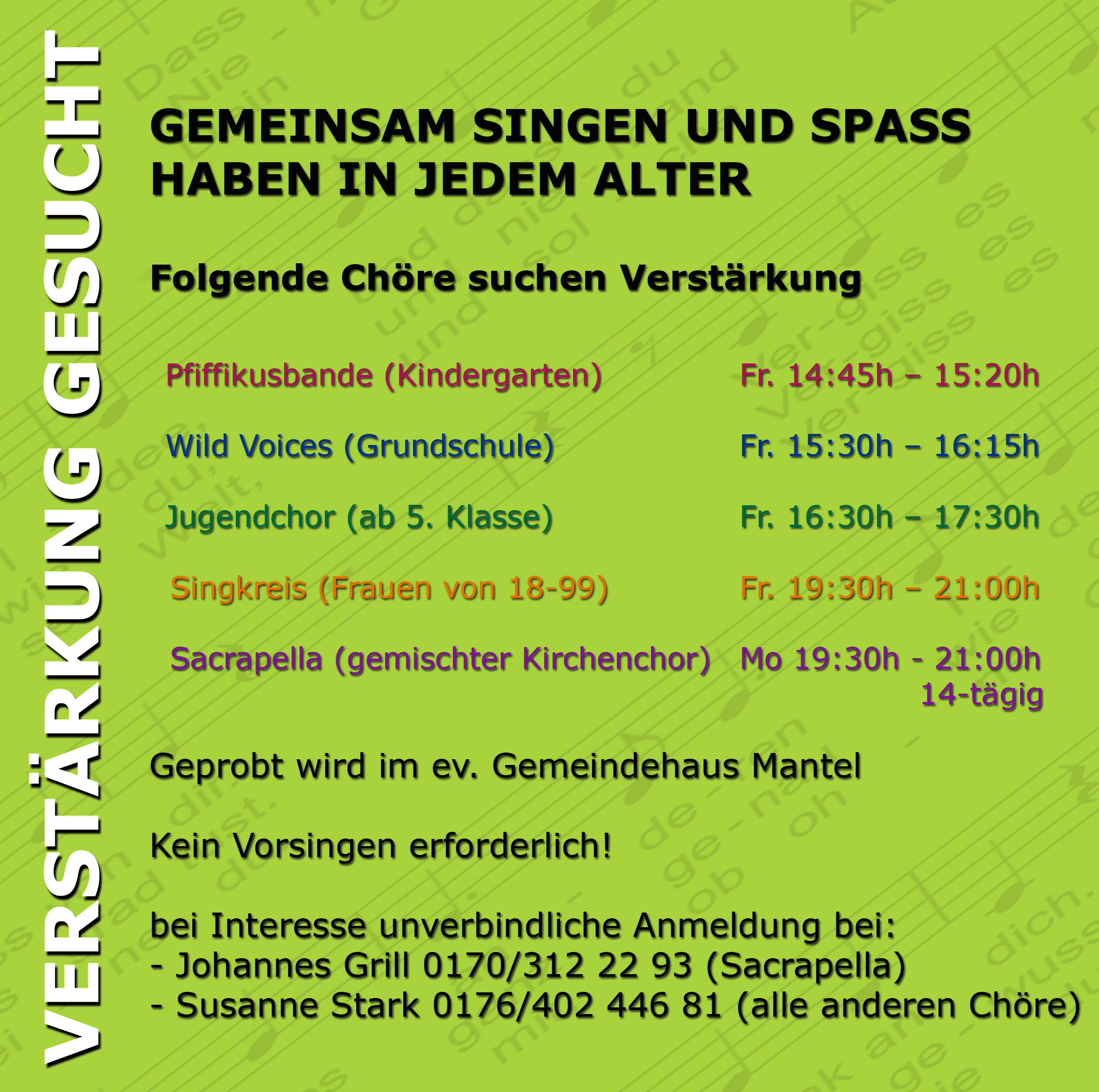 (Kirchenchor, Kontakt 0170/312 22 93) und Susanne Stark (Kinderchöre und Singkreis,