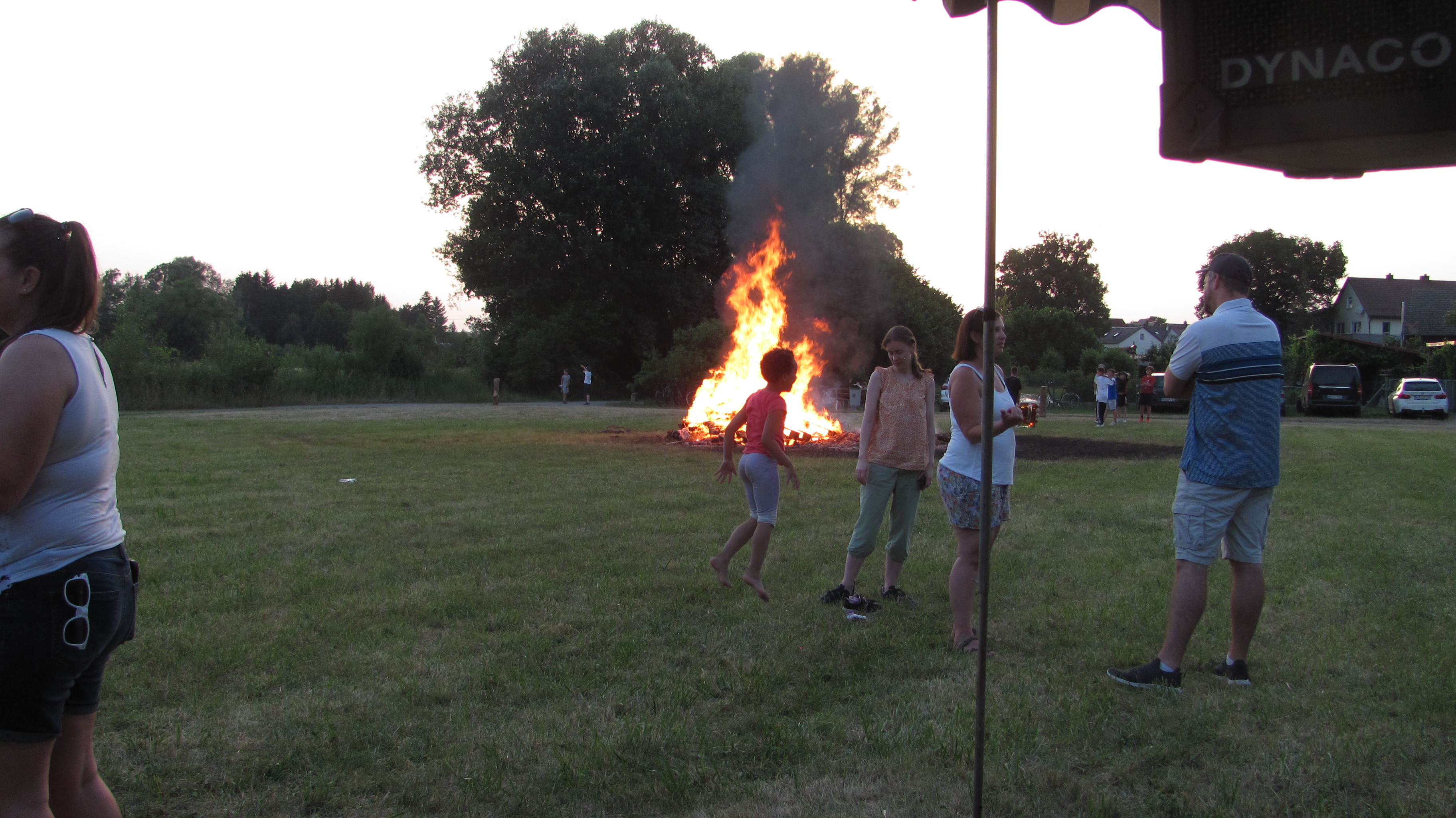 Bereits am Samstag vor dem Johannistag hatte der Manteler Stammtisch an den alten Festplatz an der Naab zum Johannisfeuer eingeladen. Kaffee und Kuchen am Nachmittag genossen wegen der Hitze nur sehr wenige Gäste aber gegen Abend strömten dann viele Familien mit Kindern, Jugendliche aber auch die ältere Generation zum Festplatz. Gegen 19 Uhr wurde das Feuer entzündet. Feuerwehr und die „Helfer vor Ort Haidenaabtal“ standen bereit für Notfälle. Die Kinder amüsierten sich bei Wurfspielen oder beim Backen von Stockbrot. Die Stammtischmitglieder sorgte an der Bar für Hochprozentiges schenken aber auch noch kühles Bier oder Erfrischungsgetränke aus. Gestärkt werden konnte sich mit Steaks oder Bratwürsten vom Rost. Musiker Hans Schneeberger sorgte für Stimmung und hatte für jeden Geschmack Songs auf Lager auch die Hits von Andreas Gabalier. Als das Feuer schon längst heruntergebrannt war wurde an der Bar bei der „After-Party“ noch bis in die Morgenstunden gefeiert. Flotte Tänzerinnen hielt es nicht an ihrem Platz und sie schwangen das Tanzbein.