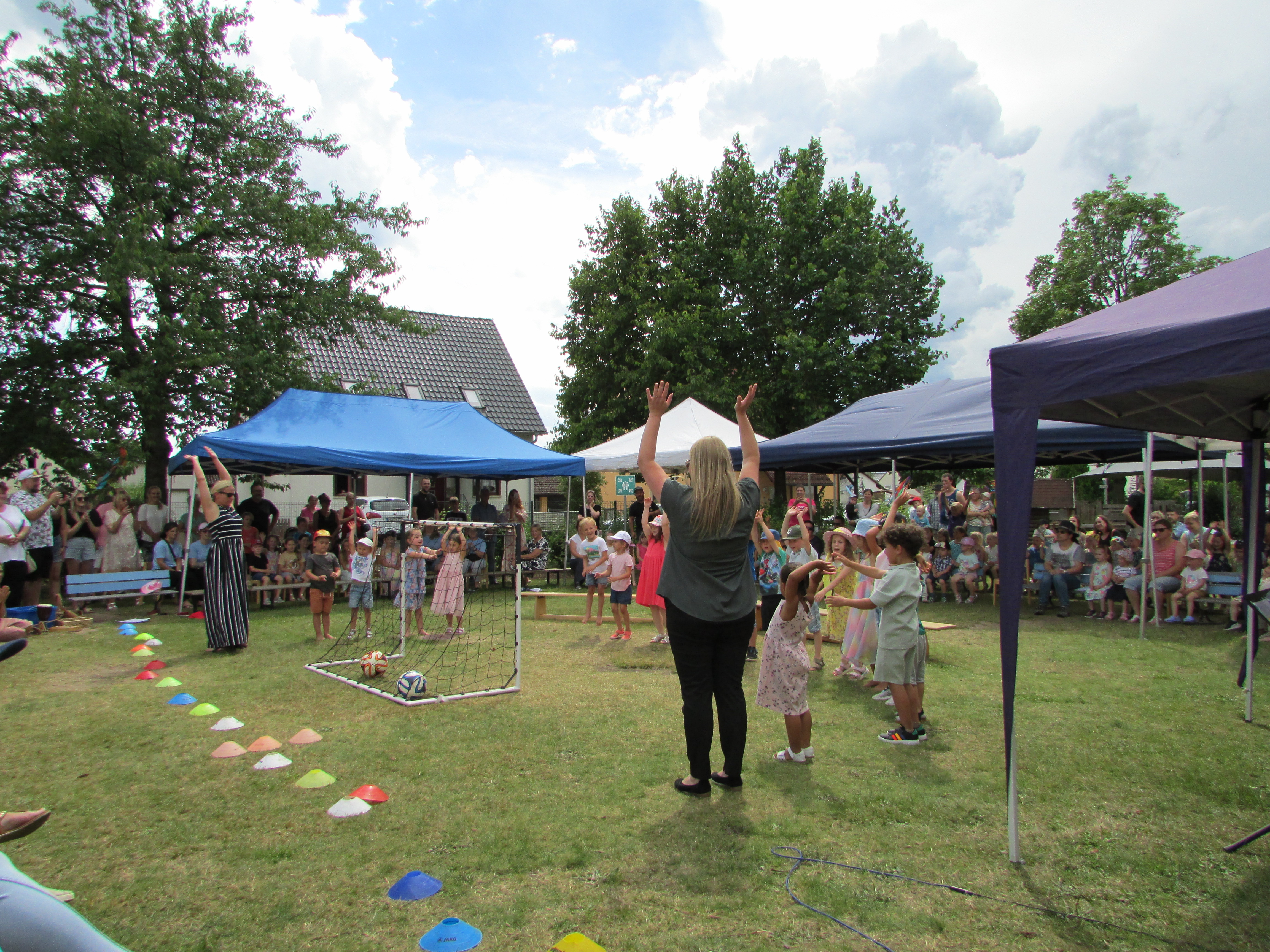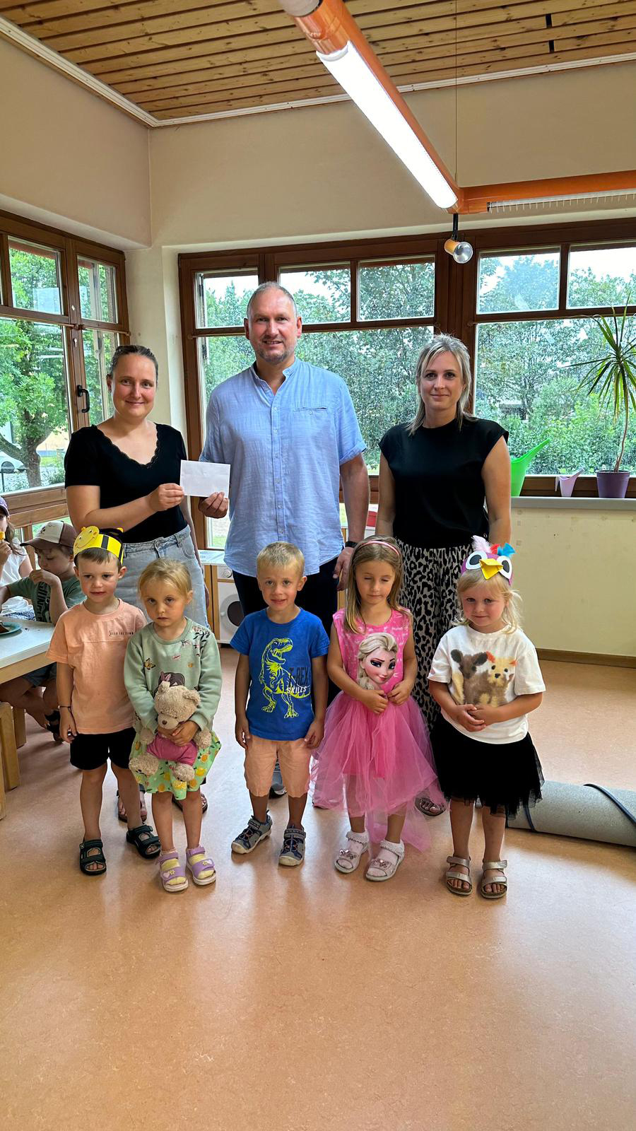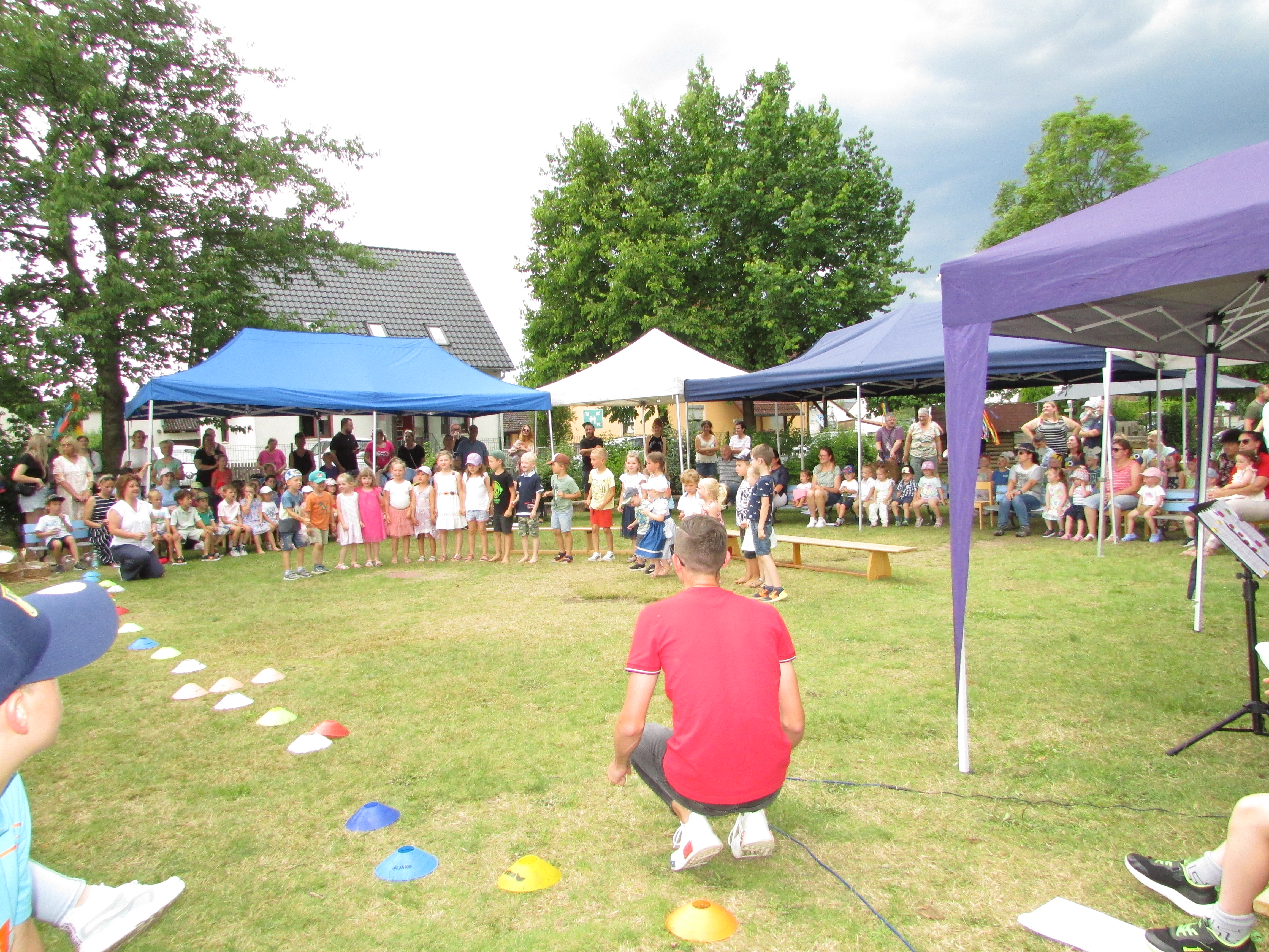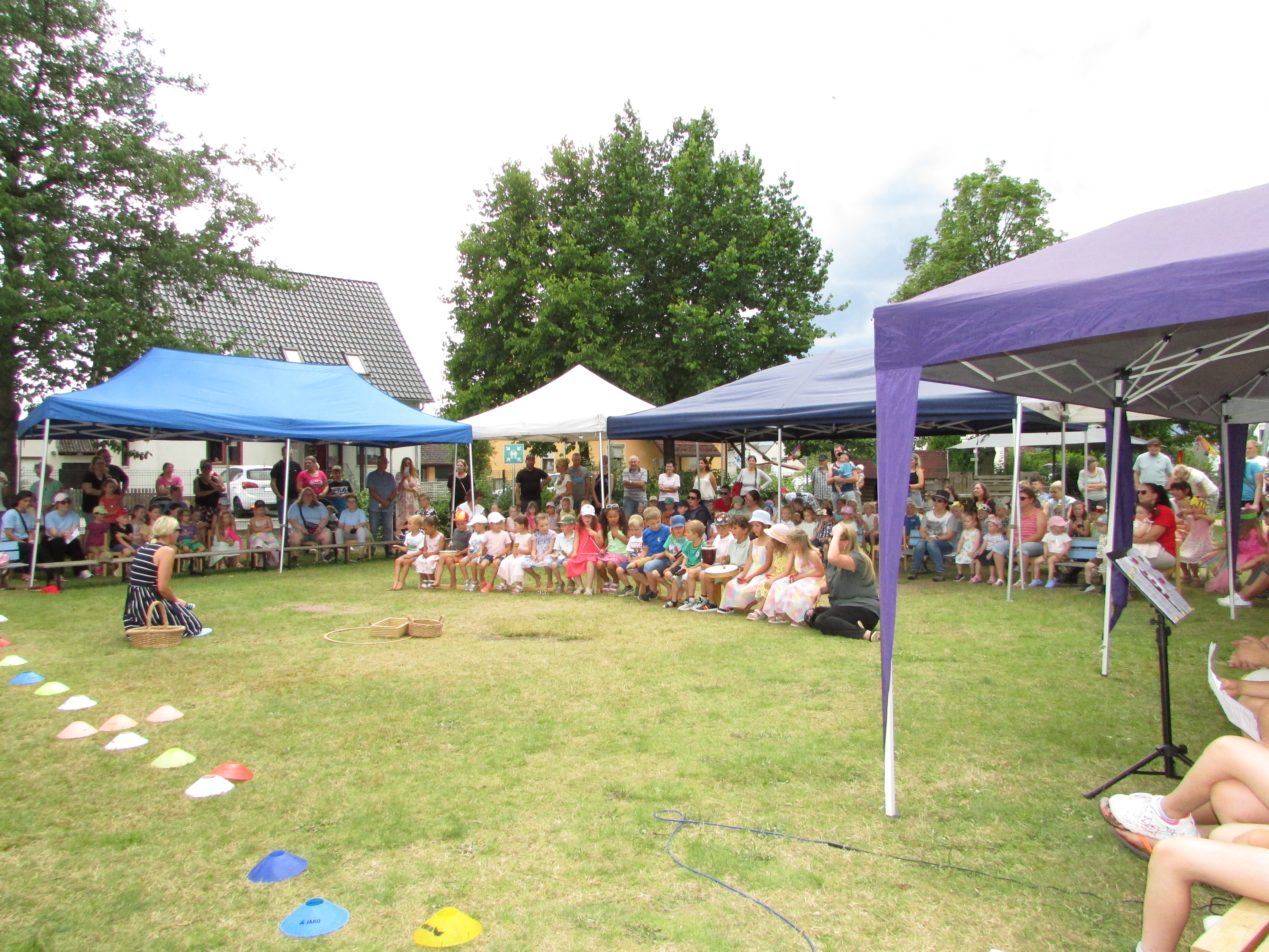 In diesem Jahr hatte das Kinderhaus St. Elisabeth in Mantel zu einer Sommerserenade in den Garten des Kinderhauses eingeladen. Monatelang wurde geprobt und vorbereitet. Vorerst meinte es der Wettergott auch noch gut mit den Kindern. Um 14 Uhr stürmten die Kinder in Begleitung von Eltern, Geschwistern und Großeltern den Garten des Kinderhauses und vergnügten sich an den Spielgeräten. Der Elternbeirat bot in der Halle im Garten Getränke und pikante Brotzeiten an. Das Tortenbüfett, das keine Wünsche offen ließ war in der Aula des Kinderhauses aufgebaut. Es gab Kaffee und natürlich auch erfrischendes Eis gegen die Hitze. Die meisten Besucher waren der Anregung in Sachen Umweltschutz gefolgt und hatten ihr eigenes Geschirr mitgebracht. Um 15 Uhr startete dann die Serenade. Kinderhausleiterin Doris Weigl begrüßte die Gäste und die Moderation übernahmen dann die Mädchen und Jungs selbst. Alle Gruppen hatten sich was Besonderes ausgedacht. Gestartet wurde nach der Melodie von „We will rock you“. Fußball war natürlich auch ein Thema und auch die allerjüngsten bezauberten mit Liedern und Texten, die von lebhaften Bewegungen begleitet wurden. Musik kam von der Konserve oder Doris Weigl begleitete mit Gitarre. Es wurde getanzt, geklatscht und gehüpft. Leider zog dann ein Gewitter heran und die letzten Gruppen mussten ihr Programm abkürzen. Pfarrer Thomas Kohlhepp erfreute sich auch an den Darbietungen und Bürgermeister Ricard Kammerer überreichte eine Spende. Leider musste dann nach 45 Minuten wegen einem Gewitter mit Sturmböen die Serenade etwas vorzeitig abgebrochen werden. Die Zuhörer stellten sich in der Halle im Garten unter oder flüchteten in die Räume des Kinderhauses. Viele Eltern packen mit an und brachten dann die Elektronik sowie Stühle und Bänke in Sicherheit. Die Kinder ließen sich die gute Laune nicht verderben und feierten dann ihr Sommerfest einfach in den Gruppenräumen weiter.