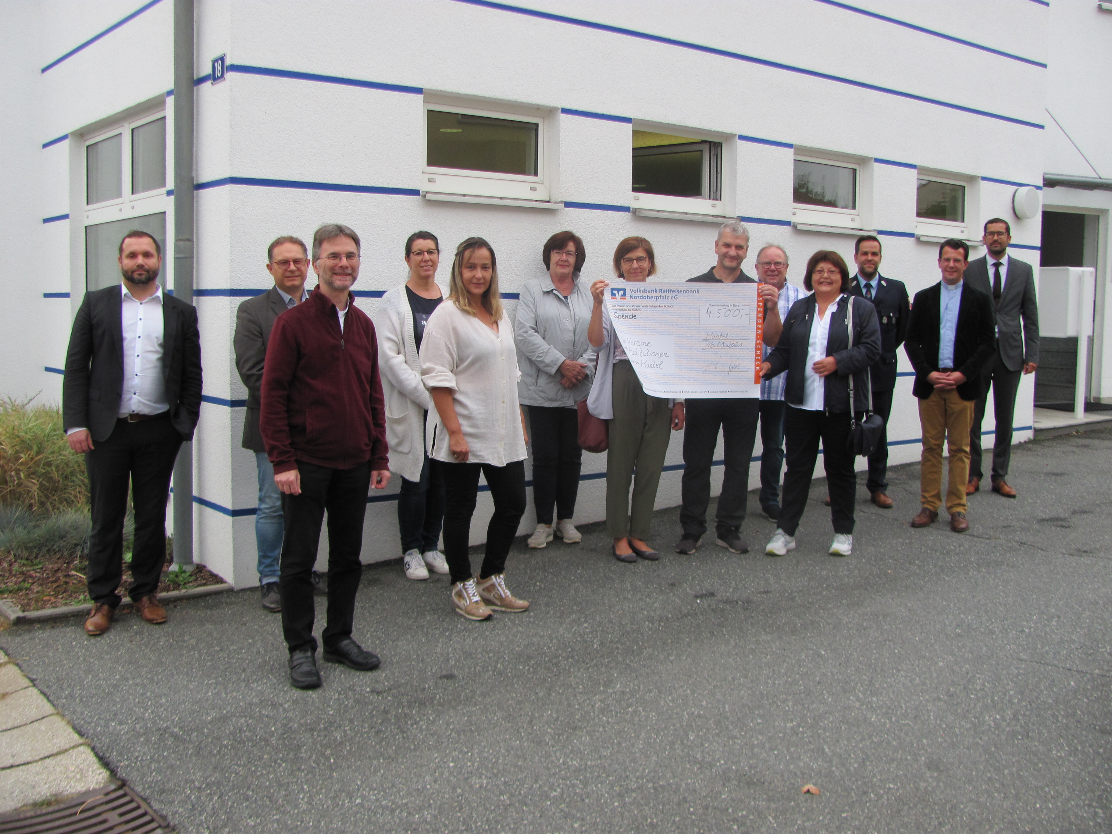 Die Geschäftsstelle Mantel der Volks- und Raiffeisenbank Nordoberpfalz mit Leiter Daniel Dörfler und den Angestellten Nina Trenz, Marion Radlbeck, Ingeborg Mägerl und Sarah Lucke hatte kürzlich Vereinsvertreter eingeladen, um insgesamt 4.500 Euro Spende aus dem Gewinnsparen zu übergeben.