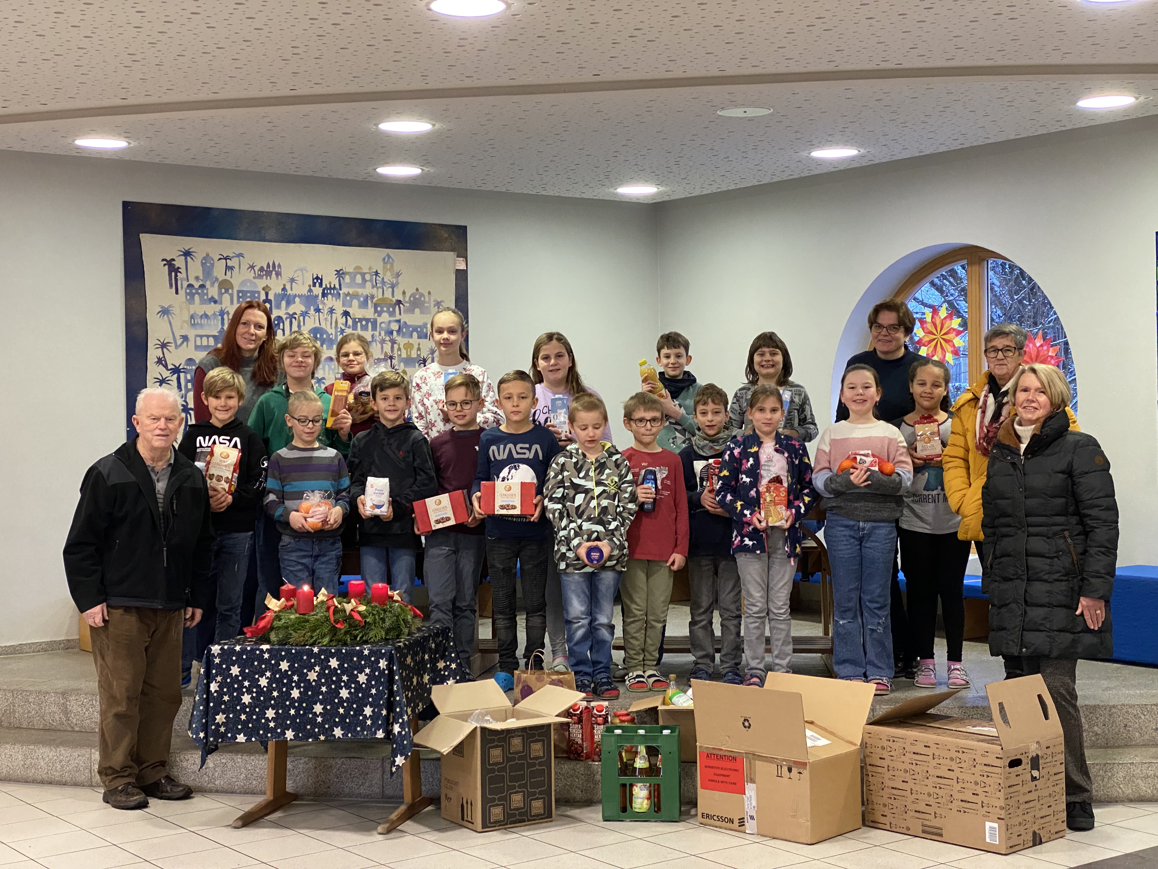 Jedes Jahr spenden die Kinder der Grundschule Mantel in der Vorweihnachtszeit für einen guten Zweck. Dieses Jahr haben sie Lebensmittel gesammelt für hilfsbedürftige Familien in Mantel. Jedes Kind hat von zu Hause etwas mitgebracht. So konnten vor Weihnachten vier Kisten mit Lebensmitteln an Ulrike Schiller und die Mitarbeiter der Tafel übergeben werden. Einmal pro Woche werden diese in Mantel Lebensmittel an bedürftige Familien ausgegeben, jeden Donnerstag.