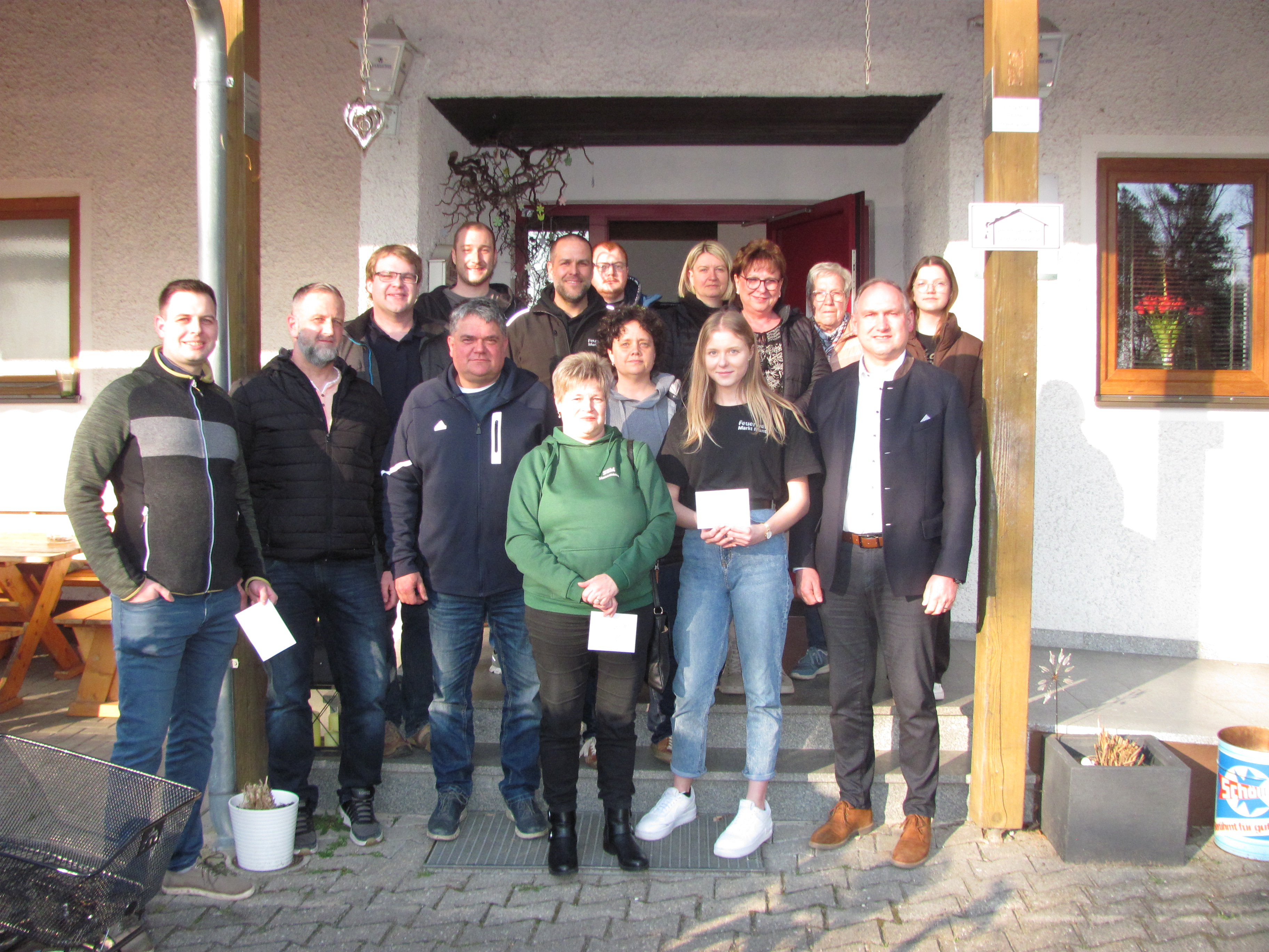 Beim Gaudiwurm am Faschingssonntag machen sieben Gruppen mit dekorierten Wägen mit und Vorstandsmitglieder des Kartells sammelten am Wegrand noch Spenden ein. Da die Metzgerei Pöll die Bratwürste für den Verkauf beim Sportheim gespendet hatte und auch die Bevölkerung großzügig war, konnten am Donnerstag vor Ostern dann die Spenden verteilt werden. Kartellvorsitzender Richard Kammerer übergab je 300 Euro an die Jugendfeuerwehr und die VfB-Jugend. Je 60 Euro bekamen dann die beteiligten Gruppen, der Kloidaffl-Express, der Mantler Stammtisch, die VfB-Frauen, die CSU, der Zapfwellenstammtisch, die Jugendfeuerwehr und die Clubfreunde. Wie Kartellvorsitzender Kammerer erklärte, sind eigentlich die VfB-Frauen die Urheber der Veranstaltung. Vor einigen Jahren haben am Faschingssonntag immer die VfB-Damen gegen die Feuerwehr ein Gaudifußballturnier veranstaltet, die Feuerwehrmänner in Damenkleidung und die VfB-Damen als Männer kostümiert. Vorher sind die Mannschaften mit geschmückten Wägen durch den Ort gefahren um für die Gaudi zu werden, da kam dann die Idee auf, doch gleich einen Gaudiwurm aufzustellen da andere Gruppen anfragten ob sie auch mitmachen dürften. „Wir wollen keine Konkurrenz zum Faschingszug in Neustadt sein, so Kammerer, sondern ein überschauliches Vergnügen für die Manteler Bevölkerung bieten.“