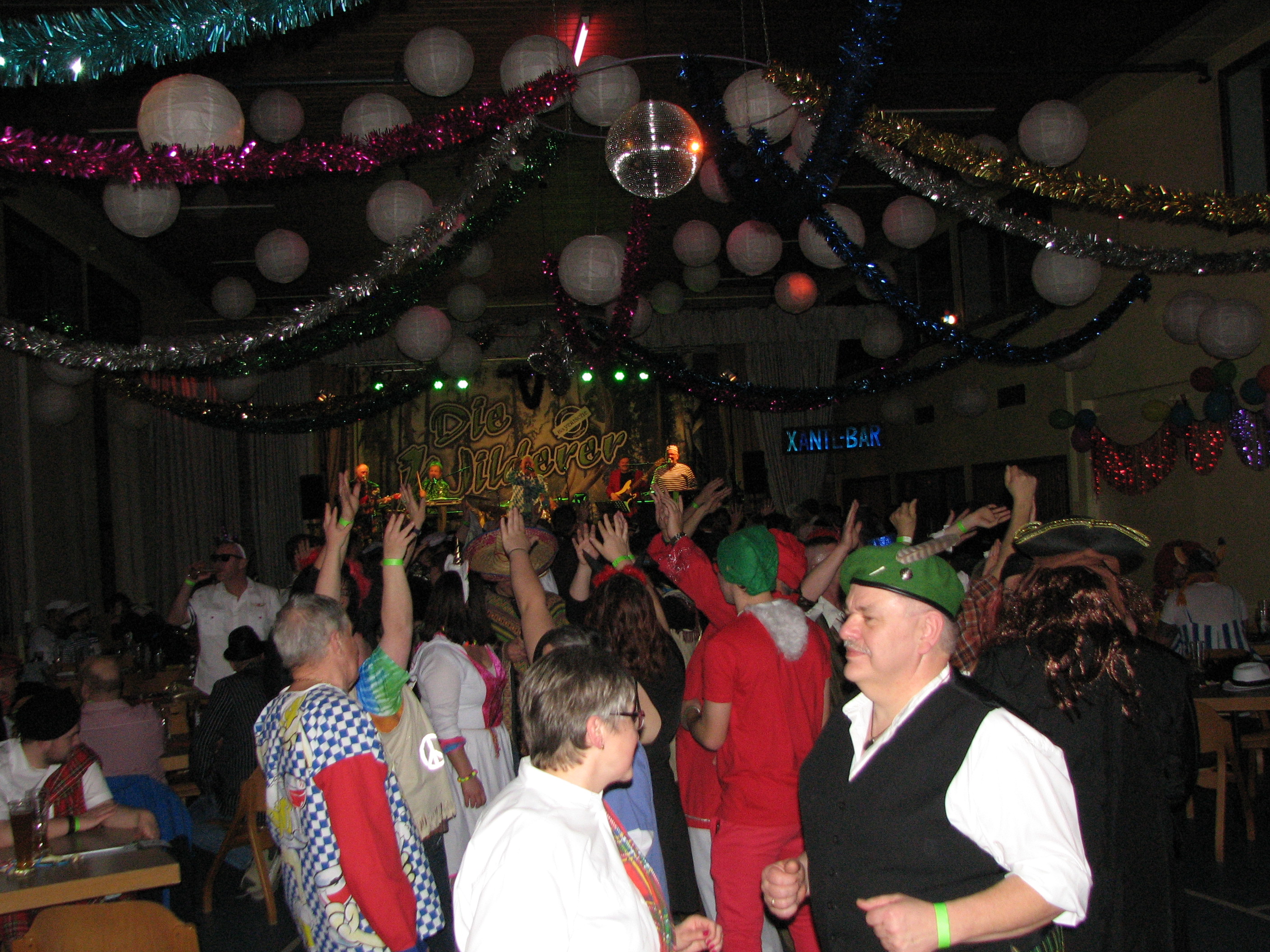 Mönche und Nonnen, Engel und Teufel,, ein „waschechter“ Schotte, Captain Kirk mit Mannschaft, Pirat Jack Sparrow mit Elisabeth, Hippies, Robin Hood mit Bogen, Zauberer, Hexen, Jäger, Scheichs, Cowboys und Indianer, und selbst Totengräber waren Farbtupfer in der Mehrzweckhalle. Mit ihrem „Sunshine Mix“ holten die Wilderer den Sommer zurück und steuerten mit Kulthits wie „Sternenhimmel“, „Macarena“, „Walking on sunshine“ auf den Höhepunkt zu.