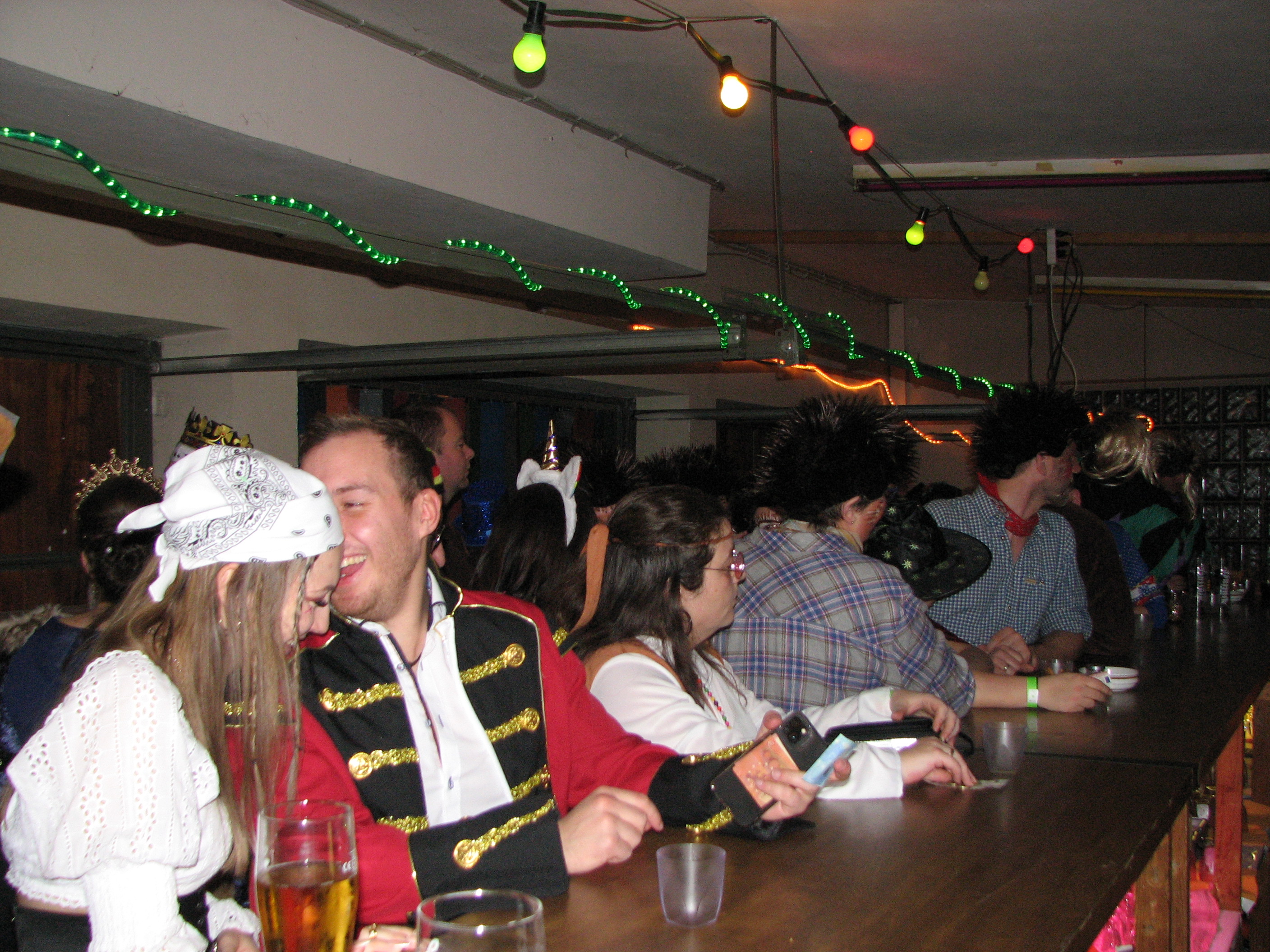Dann legten "Die Wilderer" wieder los und ließen die Tanzwütigen noch einmal zu Hits wie „TNT“ oder „Highway to hell“ ordentlich das Tanzbein schwingen. Vom Tanzen abgekämpft fand sich manch fleißiger Tänzer wieder in der Xantl-Bar, wo Spirituosen vom Korn bis zum Whisky, vom Bacardy bis zum Jägermeister reißenden Absatz fanden. Als "Unterlage" für Alkoholisches servierten die fleißigen Bedienungen Wiener Schnitzel mit Kartoffelsalat und Bratwürste mit Brot. Sie liefen in der Nacht wohl einige Kilometer, damit niemand von den Feierwütigen Durst oder Hunger leiden musste.
