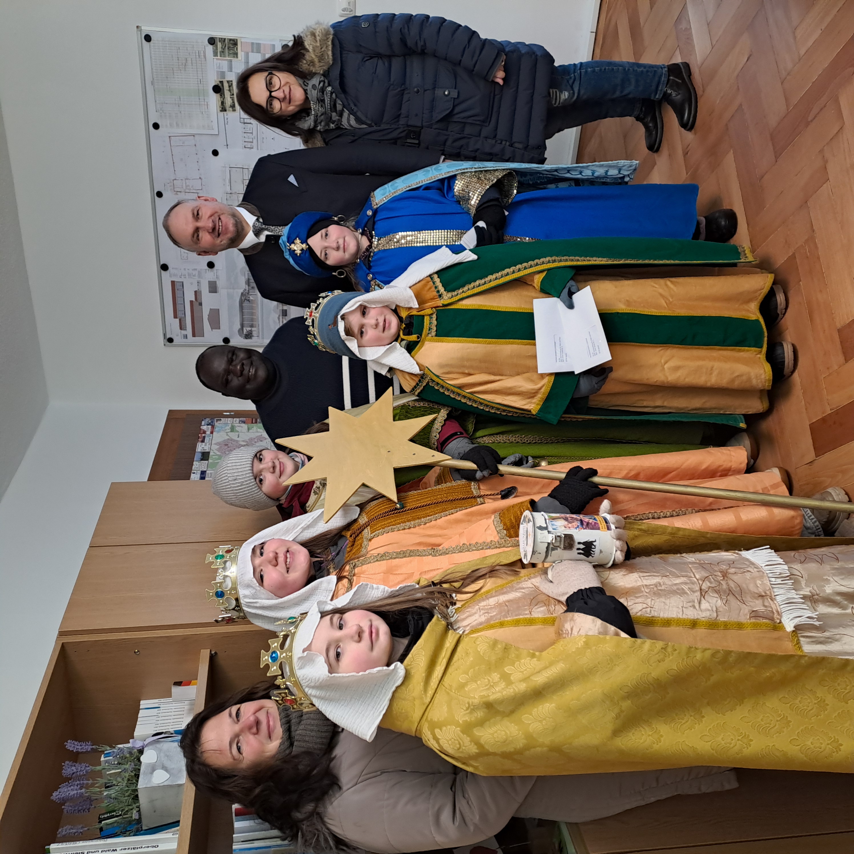 „Wir beginnen das Jahr im Glauben daran, dass wir uns der Fürsprache der Gottesmutter anvertrauen dürfen. Heute, am Oktavtag von Weihnachten, ist ihr Fest. Sie hat uns den Erlöser geboren, den Sohn Gottes.“ Weiter konnten die Gottesdienstbesucher hören, wie gut es sei, dass unsere Sternsinger in diesem Gottesdienst ausgesendet werden, um Segen zu bringen - für uns, unsere Familien, in unsere Wohnungen und Häuser. „Liebe Sternsinger, ich darf euch herzlich willkommen heißen.“, so der Geistliche. Das Motto sei eine wichtige Botschaft, mit der die Sternsinger unterwegs sind: Schule statt Fabrik - Sternsinger gegen Kinderarbeit. So konnte man im Predigtspiel hören, wie sich Tazim, Nour und ein Sternsinger unterhielten. Die Kinder erzählten von ihrer Arbeit als 6 und 10 jährige in einer Fabrik oder als Snackverkäufer. Schule muss warten. Doch durch die Sternsingeraktion kann ihnen und ihren Eltern geholfen werden, das die Armut gelindert, verschiedene Projekte gefördert werden und Kinder wieder die Schule besuchen können, in Bangladesch und anderen Ländern der Welt. Auch die Fürbitten, gesprochen von den kleinen Sternsingern ging auf die Thematik ein, dass sie Hoffnung, Schutz und Zukunft finden. Pfarrgemeinderatssprecher Josef Grasser und seine Stellvertreterin Renate Puckschamel erklärten es den Sternsingerkindern und den Anwesenden Gottesdienstbesuchern so: „Es ist soweit. Unsere Sternsinger werden ausgesandt. Es ist gut, dass wir beim Sternsingen besonders auf die Kinder in der Welt schauen. Und es könnte wohl keinen besseren Anlass geben, als die Tage der Weihnachtszeit und die ersten Tage des neuen Jahres. Denn in dieser Zeit steht ein kleines Kind in Armut geboren, im Mittelpunkt. Ein kleines Kinder, das die ganze Welt verändert hat. Nach dem Segen des Weihwassers, Weihrauchs und Kreide/ Aufkleber bedankte sich der Geistliche am Ende des Gottesdienstes bei den 23 Königinnen und Königen für das dabei sein und bei den Verantwortlichen des Pfarrgemeinderates und des Teams für die Organisation. Erster Bürgermeister Richard Kammerer, der den Festgottesdienst mitfeierte, bedankte sich ebenfalls bei den Kindern mit einer Spende, die für die Verpflegung an diesem Tag verwendet wird. Die Heiligen Drei Könige besuchten im Manteler Gemeindegebiet das Rathaus, dort erhielten die Sternsinger nochmals eine Spende des Bürgermeisters für ihre Aktion, und die angemeldeten Gläubigen um den Segen mit „Christus mansionem bendicat“ dort an die Eingangstüre zu schreiben.