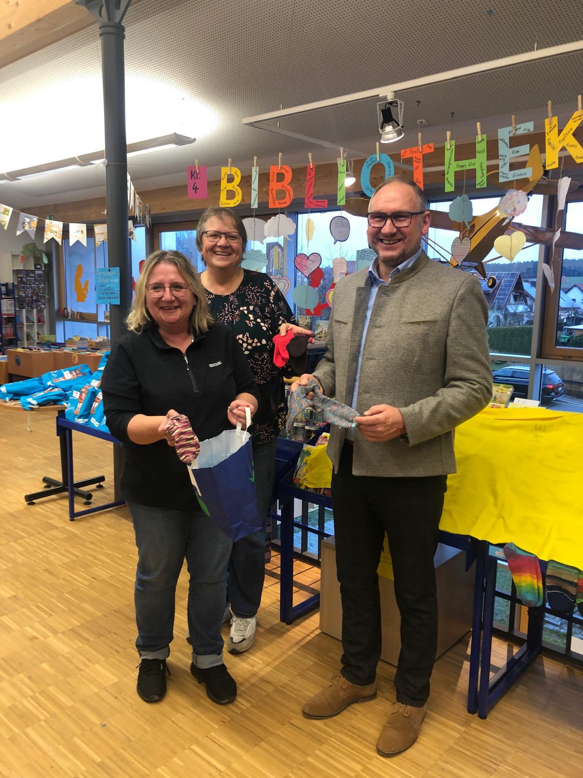 Im Namen der Strickrunde der Marktbibliothek überreichten Kerstin Janner und Jutta Lippik dem Bürgermeister von Mantel Richard Kammerer einen ganzen Korb voller winziger Stricksöckchen. Sie sind als Geschenk für alle neugeborenen Kinder aus Mantel gedacht. Das Gemeindeoberhaupt zeigte sich sehr erfreut, weil die jungen Eltern die handgestrickten Söckchen als Willkommensgeschenk sehr zu schätzen wissen.