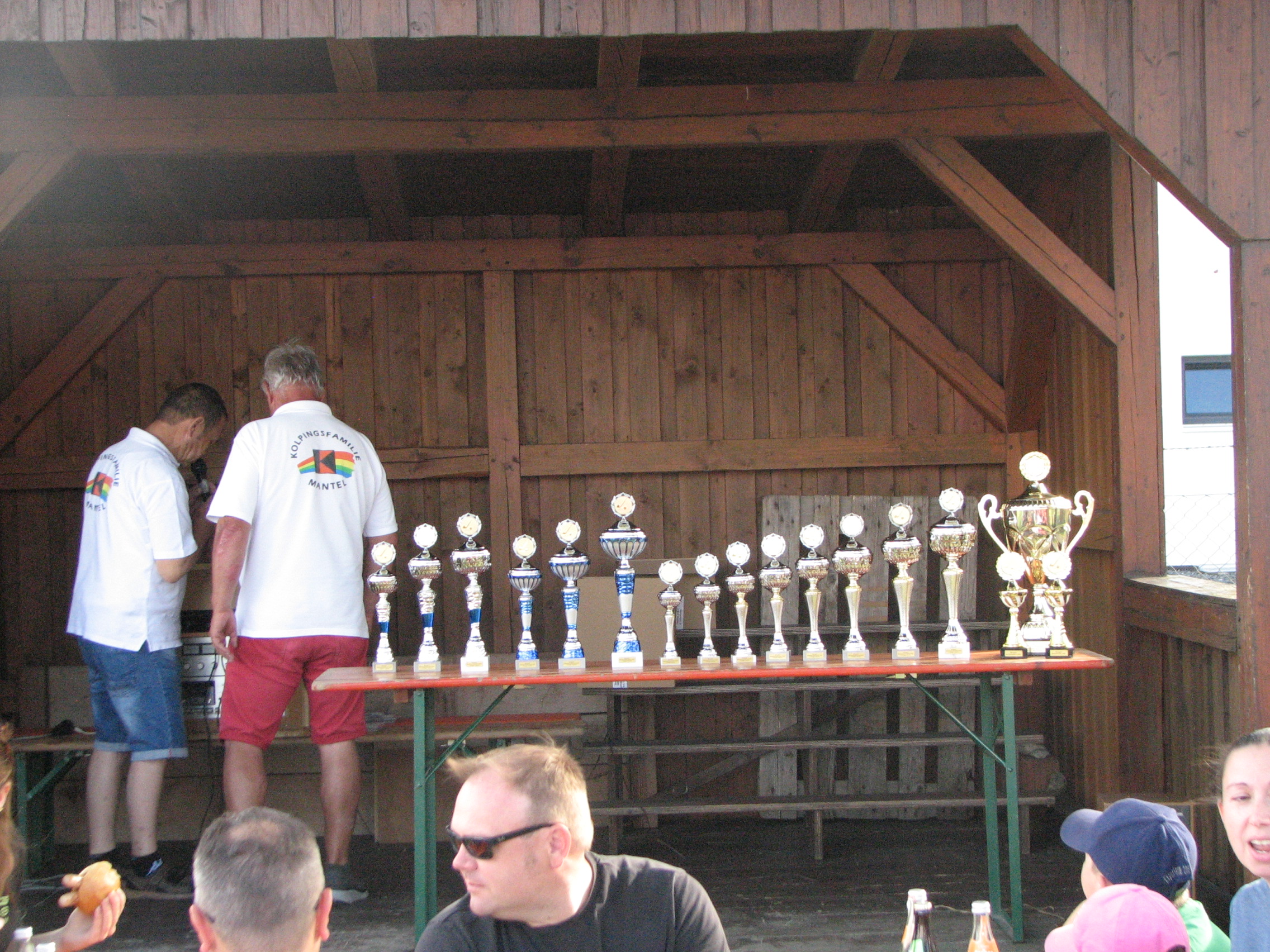 Acht Pokale wurden in der Herrenkonkurrenz, zu der auch die Mixed-Teams zählen, ausgespielt. Unangefochten wurde die Mannschaft von „Kolping 1“ (138) Marktmeister. Im Kreis der Verfolger setzten sich die „Lochrebellen“(150) durch gegen den VfB Förderverein (159), der sich gegen „Kolping 2“ (166) und den „Männergesangverein“ (169) behaupten konnte. Noch in die Pokalränge drängten sich die Teams von, der „Roten Legion“ (173), die „Fischerfreunde“ (174) und die „Reservisten“ (176). Nicht auf die Siegerliste kamen der „Mantler Stammtisch 2“ (176) als Verlierer im Stechen, die „Don Promillos 2“ (177), der Kegelklub „Alle Neune“ (180), die „CSU“ (186), die „Don Promillos I“ (193), „Alt´s Glump 4“ (199), die „Eltern-Kind-Gruppe“ (199), die „Siedler 1“ (203), der „Mantler Stammtisch 1“ (204), der „FC Bayernstammtisch“ (210), „Alt´s Glump 2“ (211) und „Xantl“ (212). Stark mit dem olympischen Gedanken verbunden zierten die „Feuerwehr 1“ (219), die „KSRK“ (219), (224), und „Alt´s Glump 3“ (244) die hinteren Tabellenplätze. Der Wanderpokal bleibt nach dreimaligem Gewinn in den Händen der Kolpingsfamilie