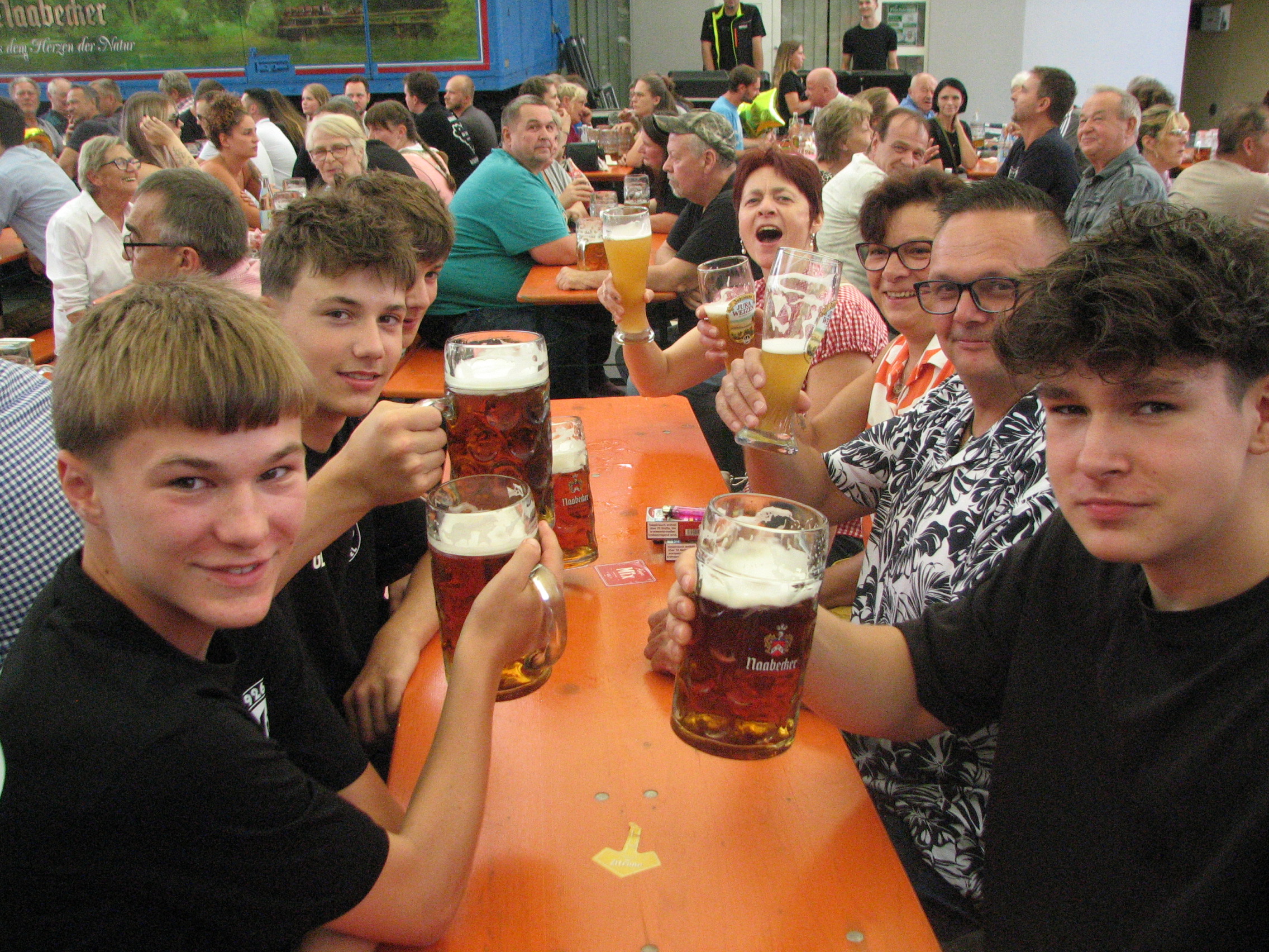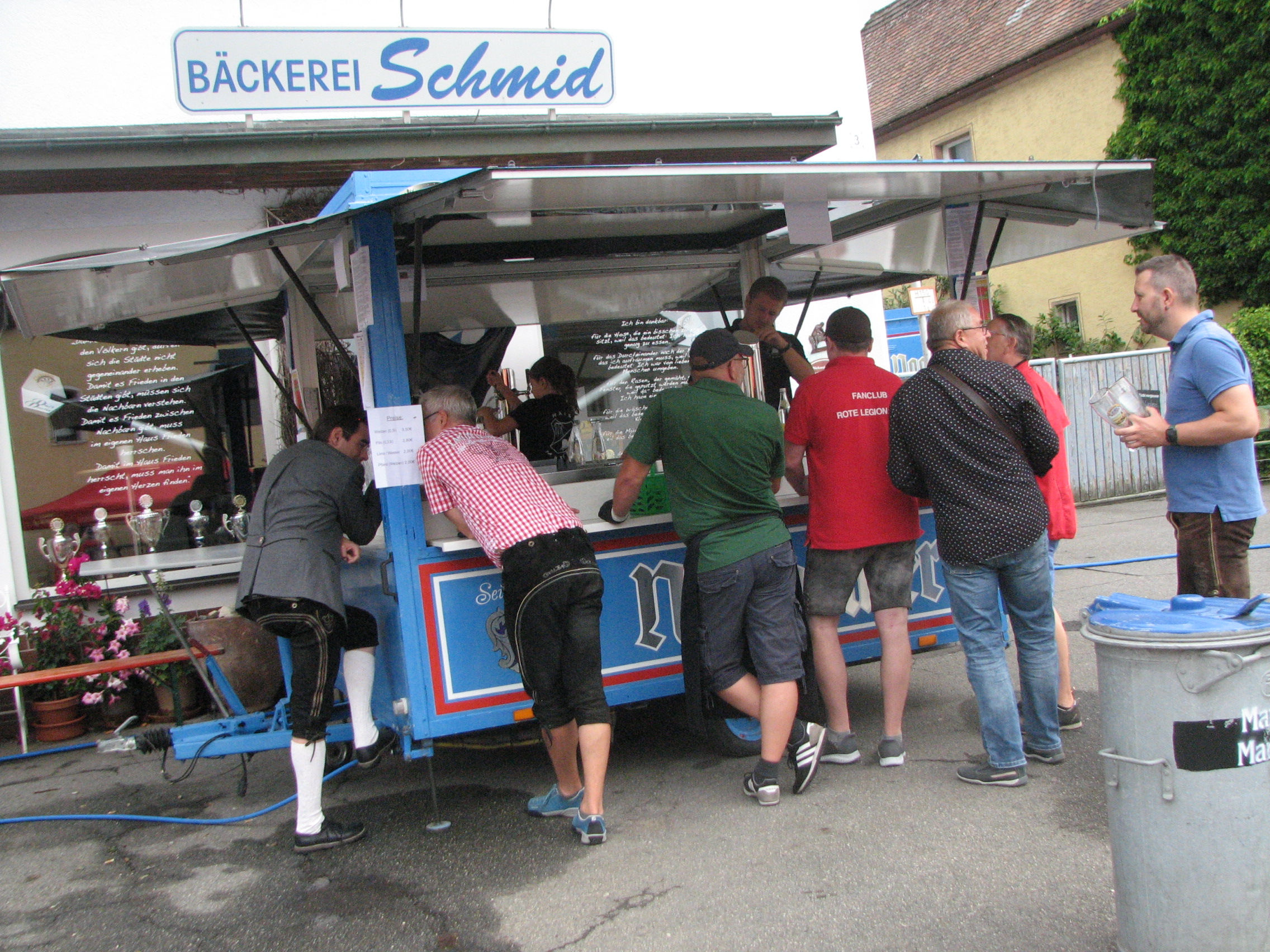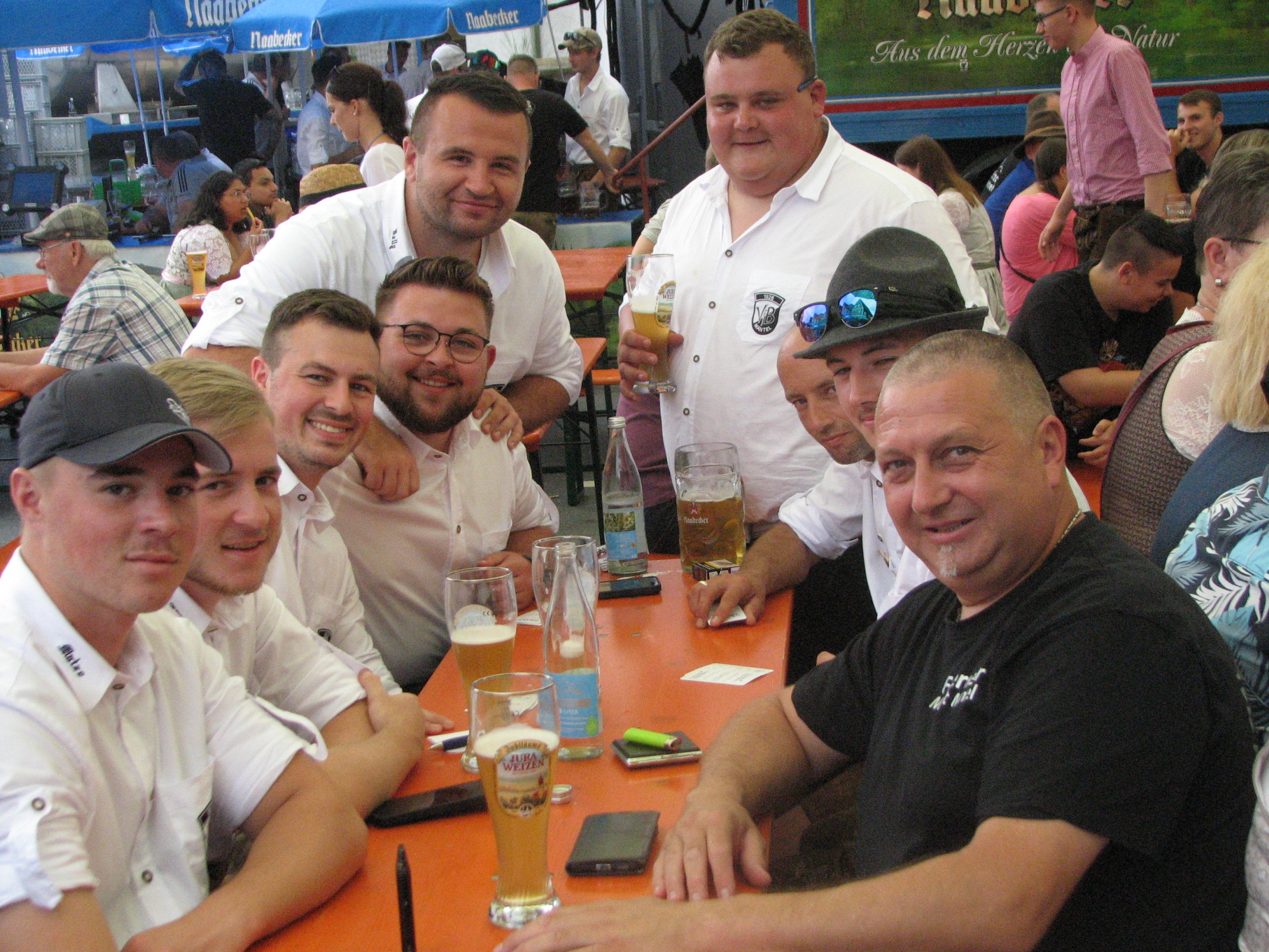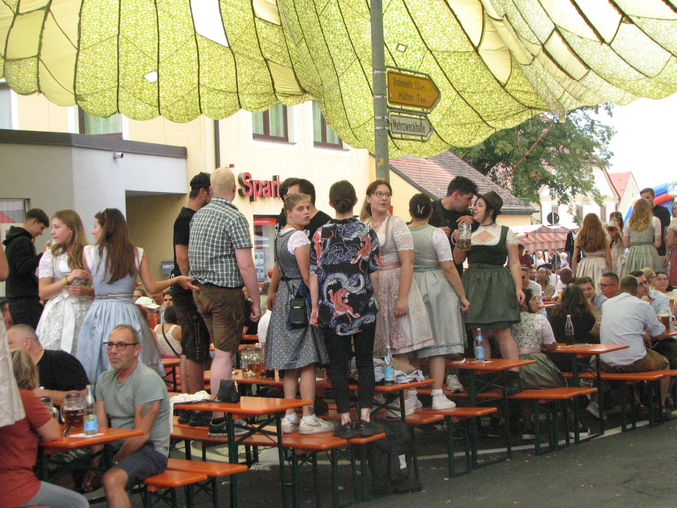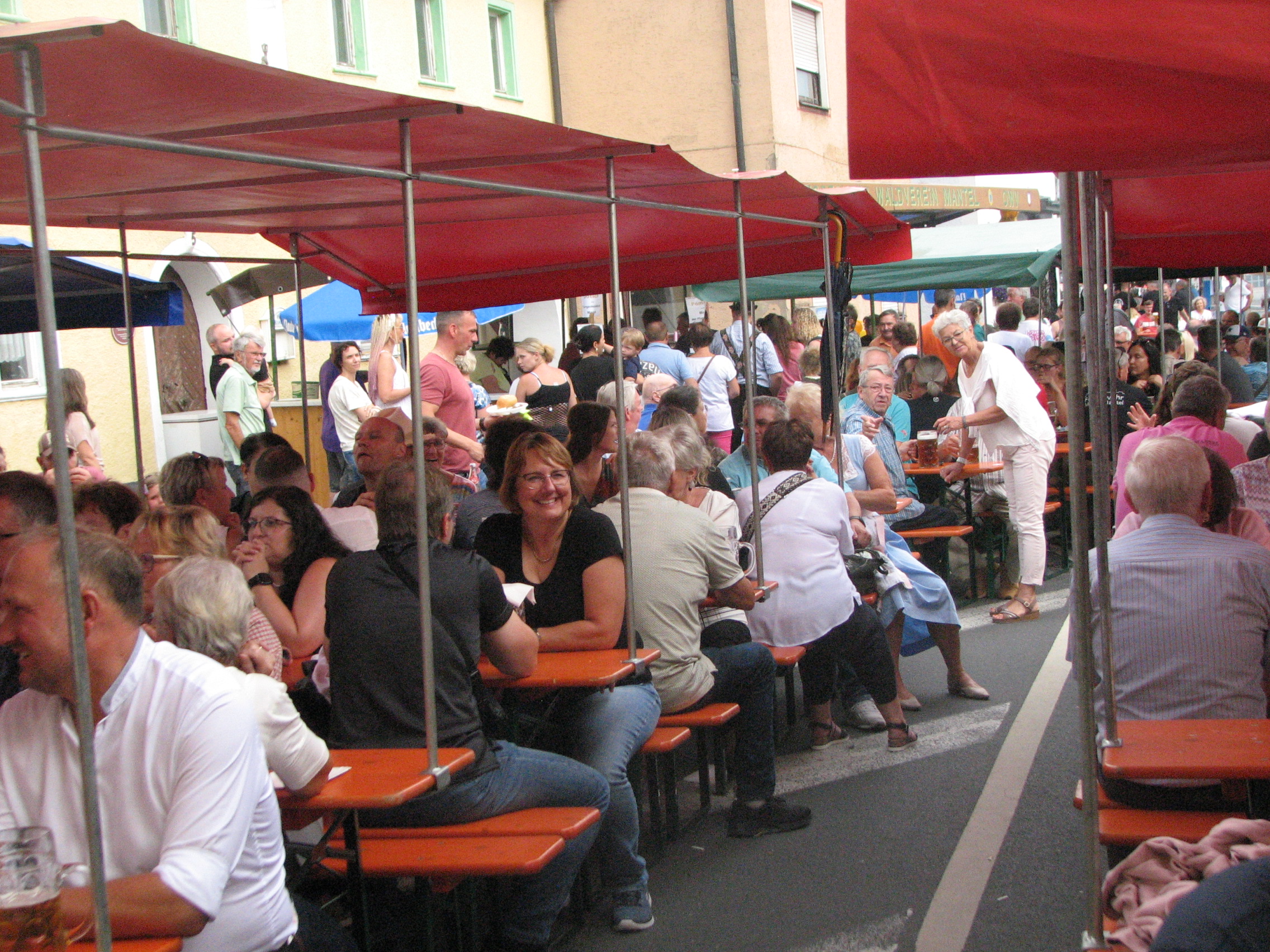 Gemeinsam mit den Vorstandsmitgliedern des Kartells stießen Kartellvorsitzender Richard Kammerer und Landtagsabgeordneter Dr. Stephan Oetzinger auf ein harmonisches Bürgerfest mit der ersten Maß an. Und schon fanden Weißwürste und Weizenbier unter den überdachten Sitzgarnituren ihre Abnehmer. Zehn flotte Bedienungen standen auch sofort in ihren Startlöchern und ließen keinen Gast lange auf seine Bestellung warten. Stets freundlich waren Mitglieder des VfB Mantel beim Ausschank. Kundenfreundlich war auch der Bierpreis pro Maß mit 6,80 €. Die CSU lud in die Schnaps- und Proseccobar ein und hatte auch Wein auf der Liste. Bei der Jungen Union gab es Cocktails und Gespritzte. Haisl- und Mantler Stammtisch boten süffiges Weizenbier an.