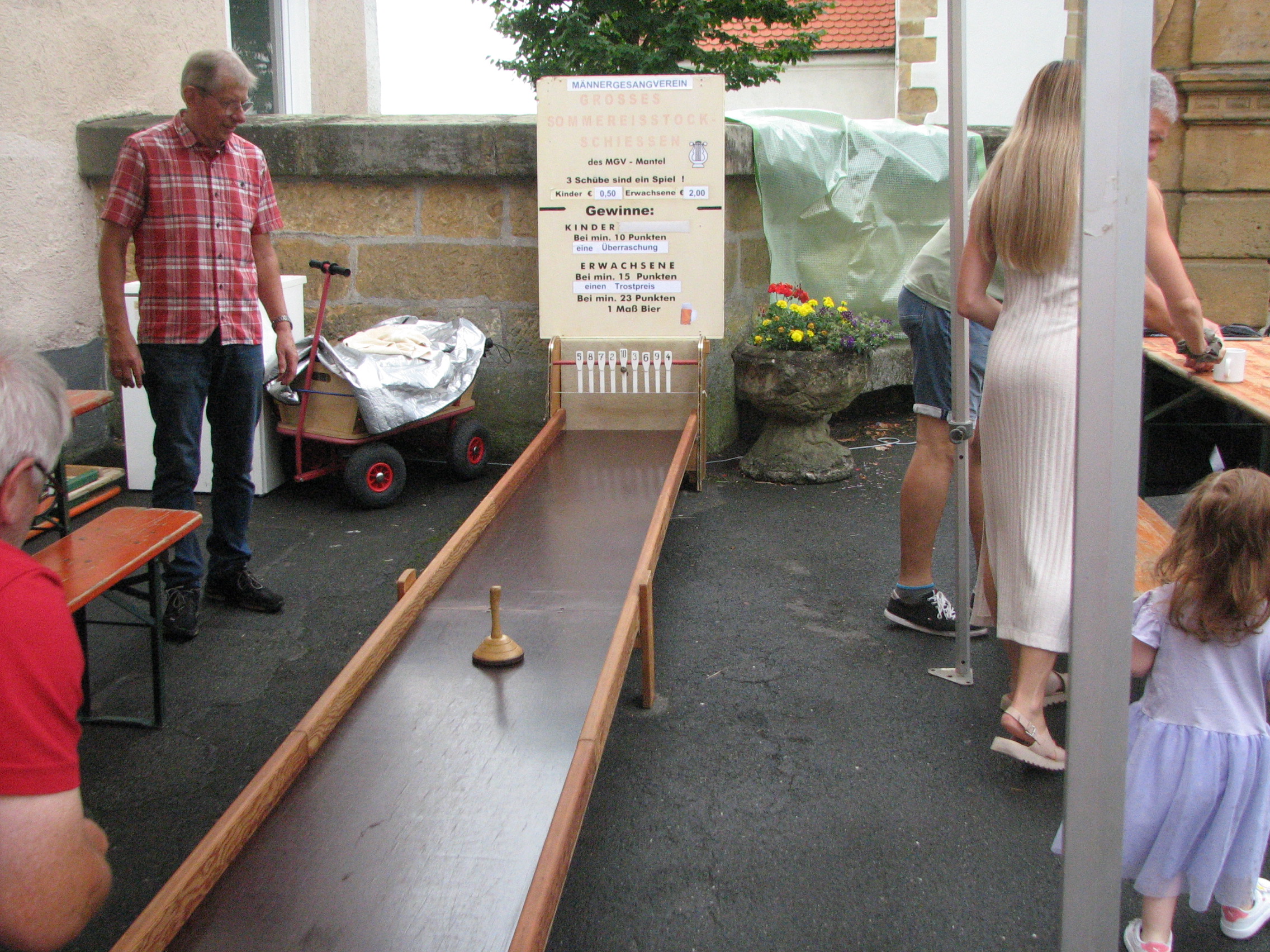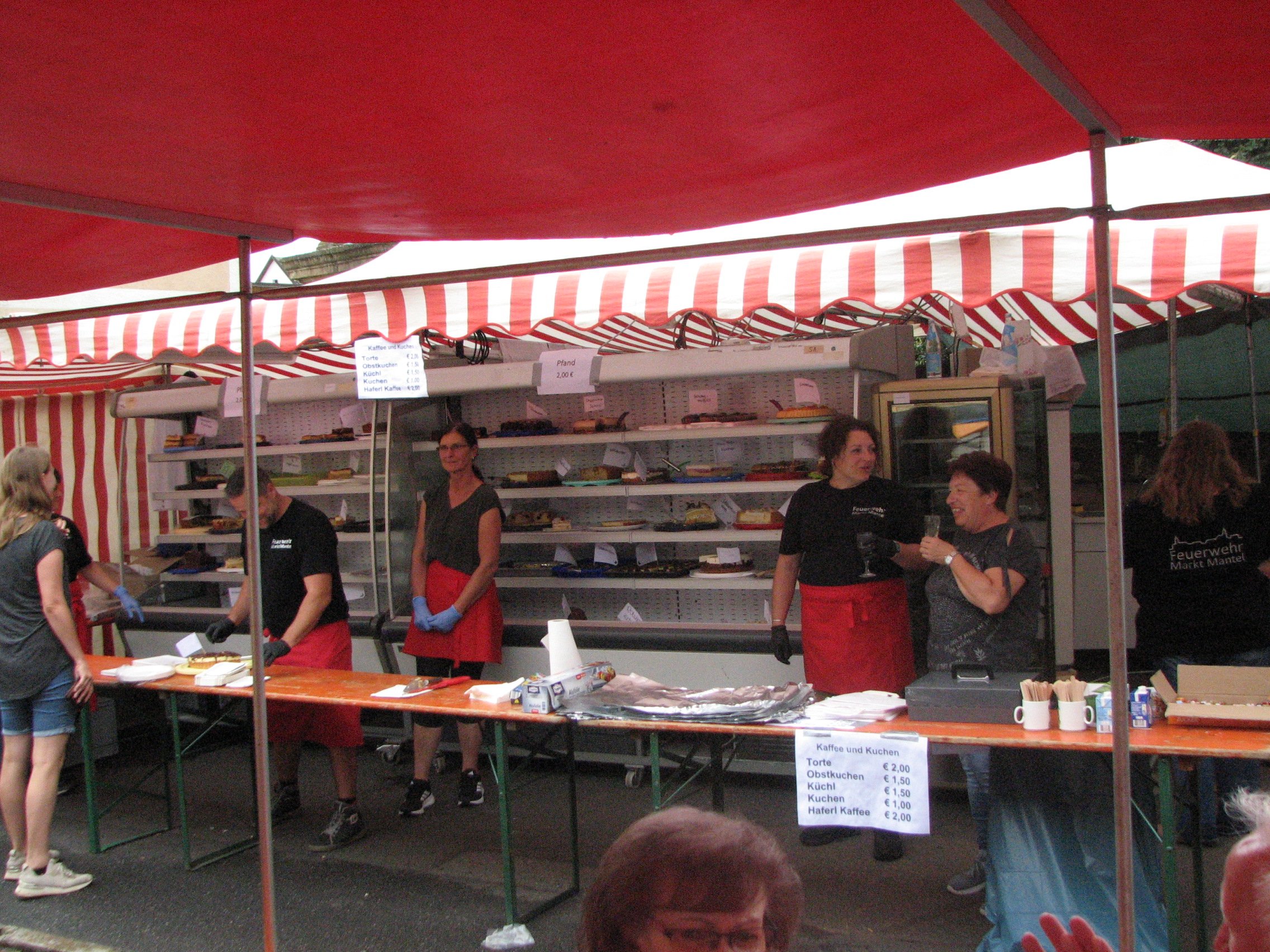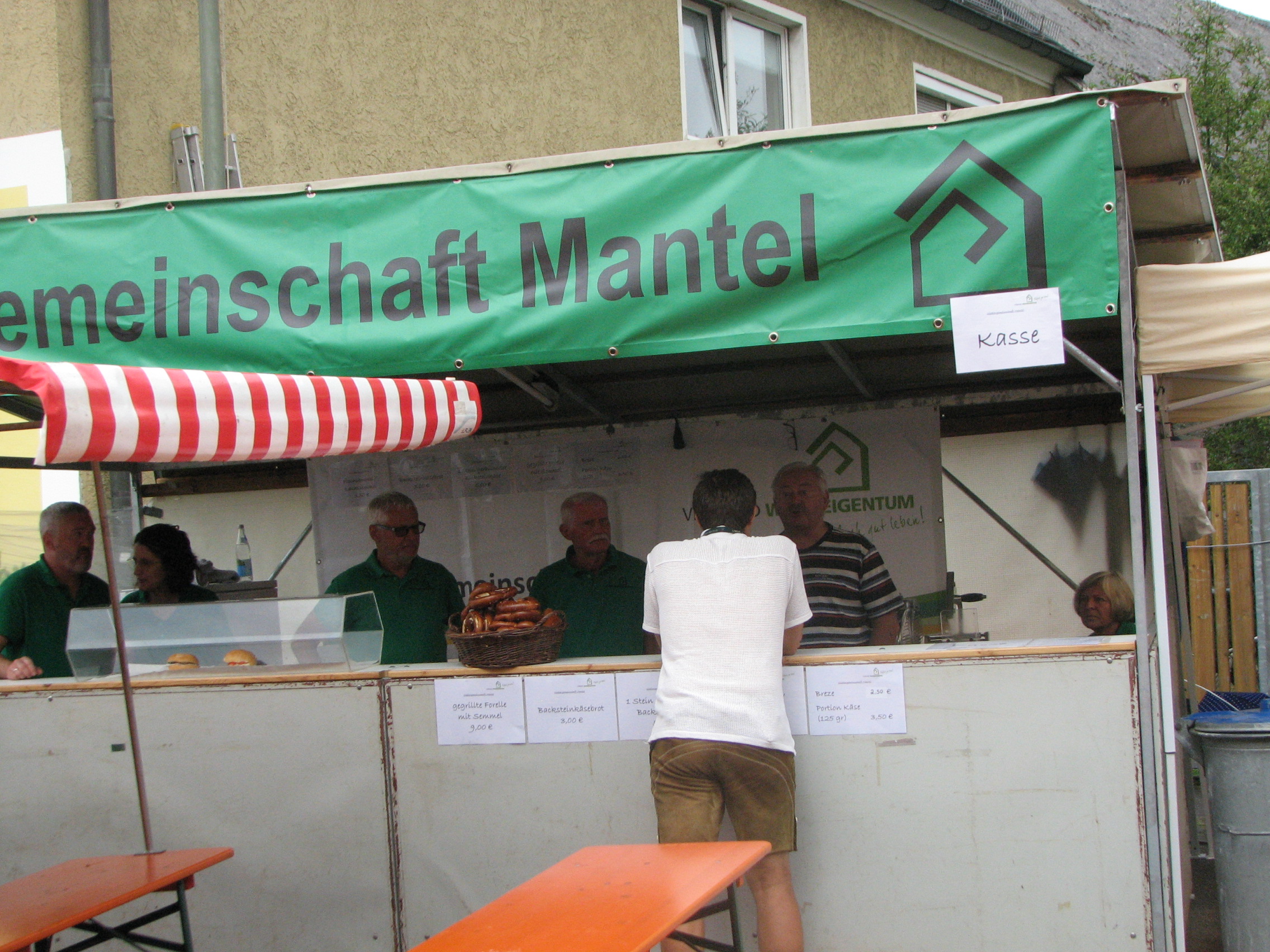Weil Regenschauer angekündigt waren, kam das Vereinskartell zu dem Entschluss, das Essensangebot auf dem Manteler Bürgerfest zu reduzieren. Trotzdem fand die Veranstaltung großen Anklang. Vor allem in der Trockenphase vom frühen Nachmittag bis zum Platzregen gegen Abend war der Ansturm groß.