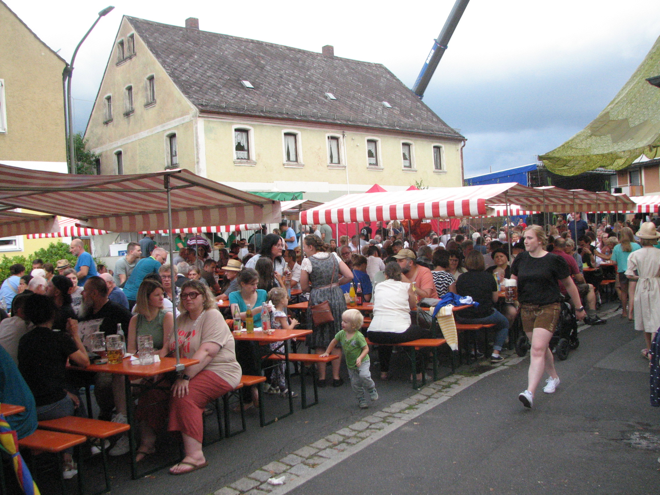 Gut angenommen wurde das Essensangebot mit Geschirrmobil. Die Kundschaft genoss gegen einen Pfandbetrag von 5,00 Euro das gewünschte Essen mit üblichem Besteck aus dem Porzellanteller. Es gab genügend Spezialitäten zur Auswahl, die von Rollbraten, Schnitzel, Grillfleisch, Bratwürsten, Gyros und Dotsch bis hin zu gebrutzelten Forellen, Käse und Brezen sowie Xantl-Burgern reichte. Die Rote Legion reichte süße Crepes mit Marmelade, aber auch mit Schinken, Salami und Käse über den Tresen. Die Feuerwehr hatte Kaffee und Kuchen im Angebot. Für die Musik war die große Bühne aus Weiherhammer aufgebaut worden. Hans Schneeberger spielte Schlager und Volksmusik. Am frühen Nachmittag lösten ihn die Hohlweglauerer ab und sorgten mit ihren musikalischen Einlagen für Gemütlichkeit und Stimmung.