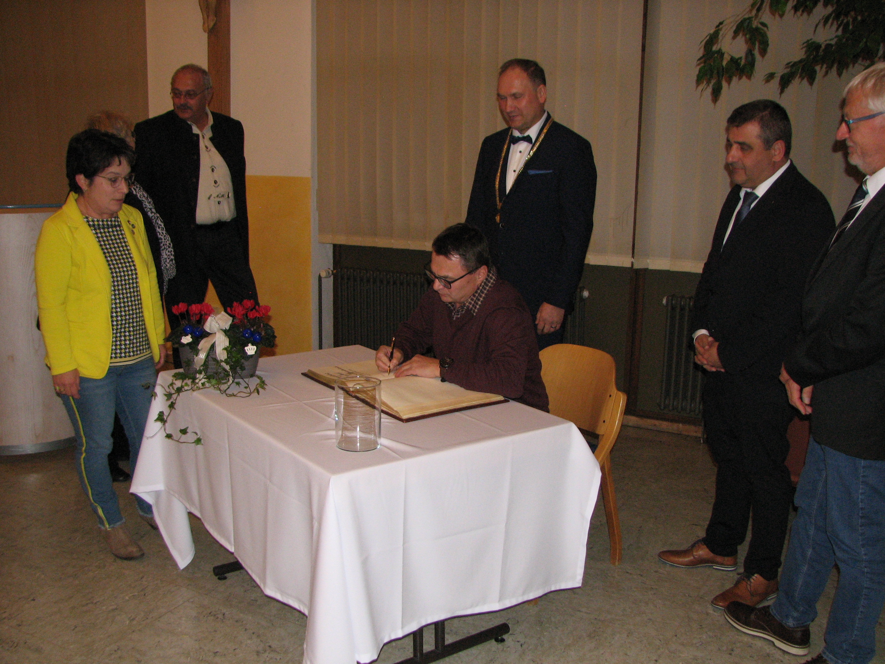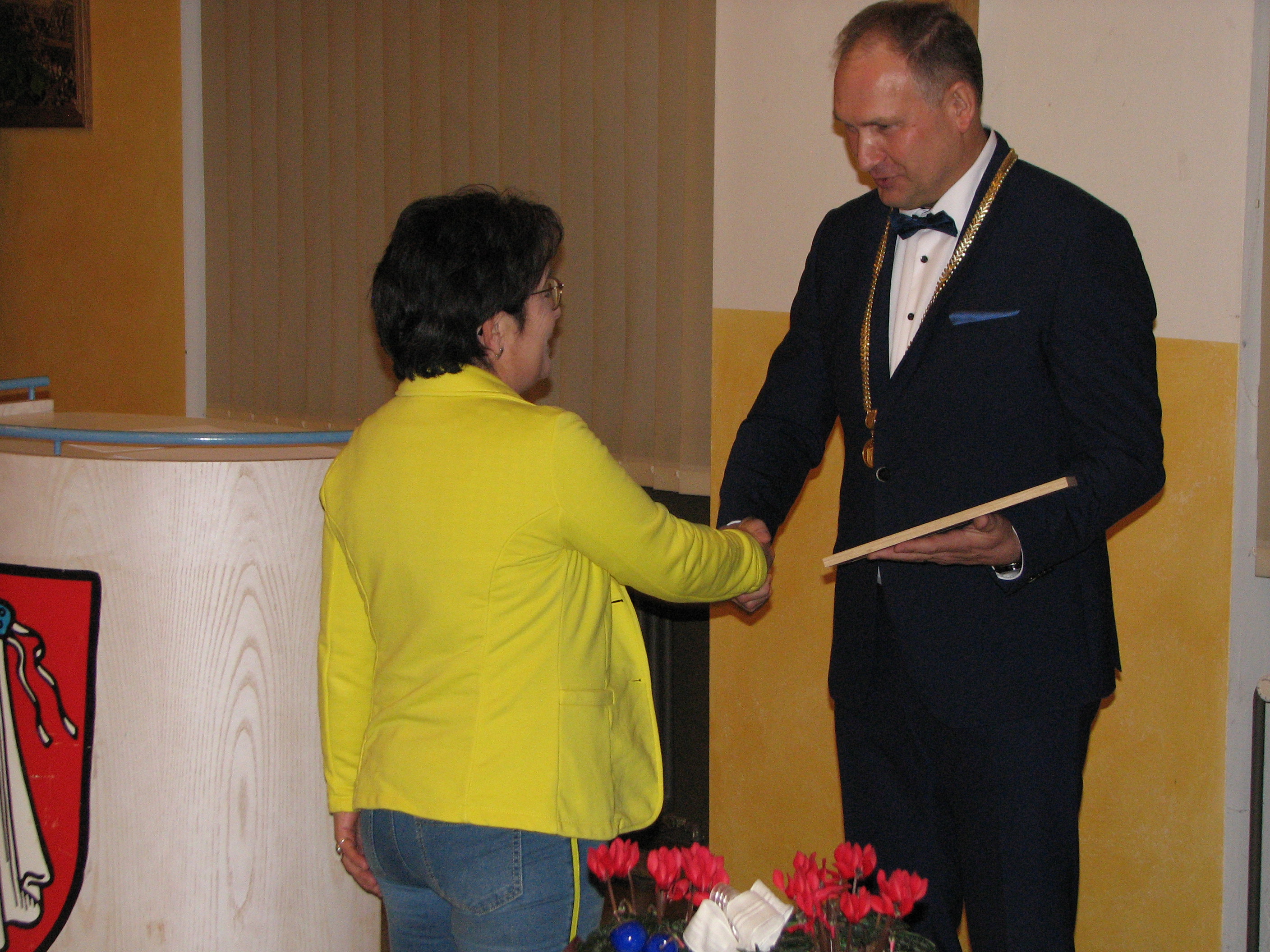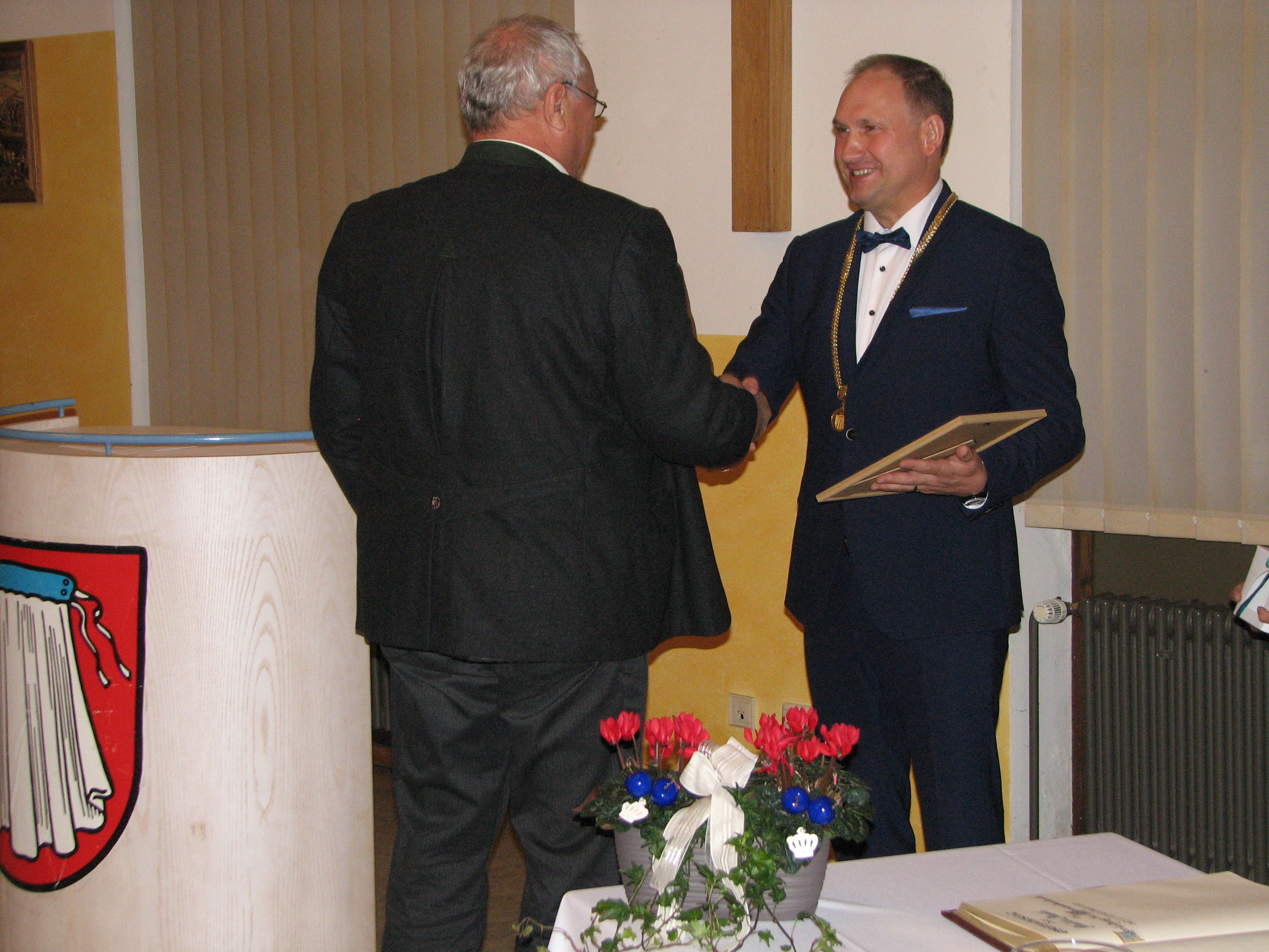Gemeinsam mit seinen Vertretern Siegfried Janner und Johann Gurdan überreichte er im Beisein von Pfarrer Thomas Kohlhepp und Pfarrer Andreas Ruhs sowie den Mitgliedern des Marktgemeinderates und der Marktverwaltung die Ehrenamtsurkunde an Elke Hackbarth, Norbert Magerer und Richard Paulus und bat um einen Eintrag ins Goldene Buch der Marktgemeinde. Die Veranstaltung wurde mit besinnlichen Liedern musikalisch umrahmt vom Duo Raureif Gisela Reil und Ulrike Rauch.