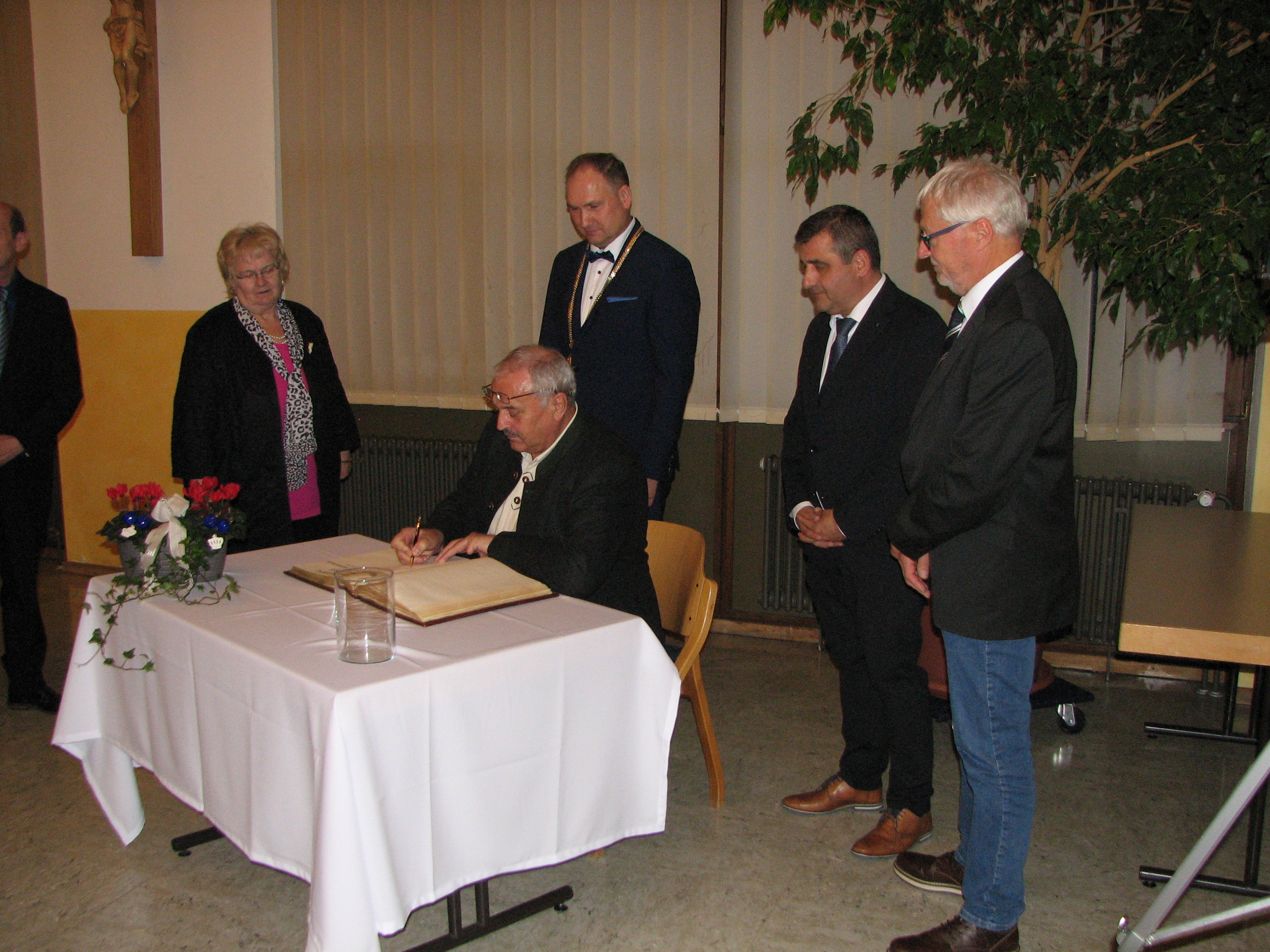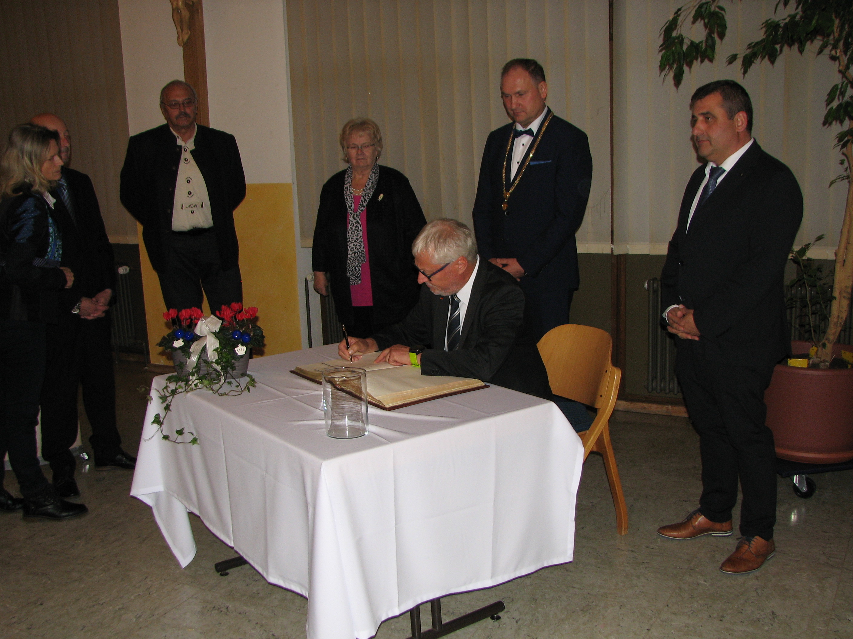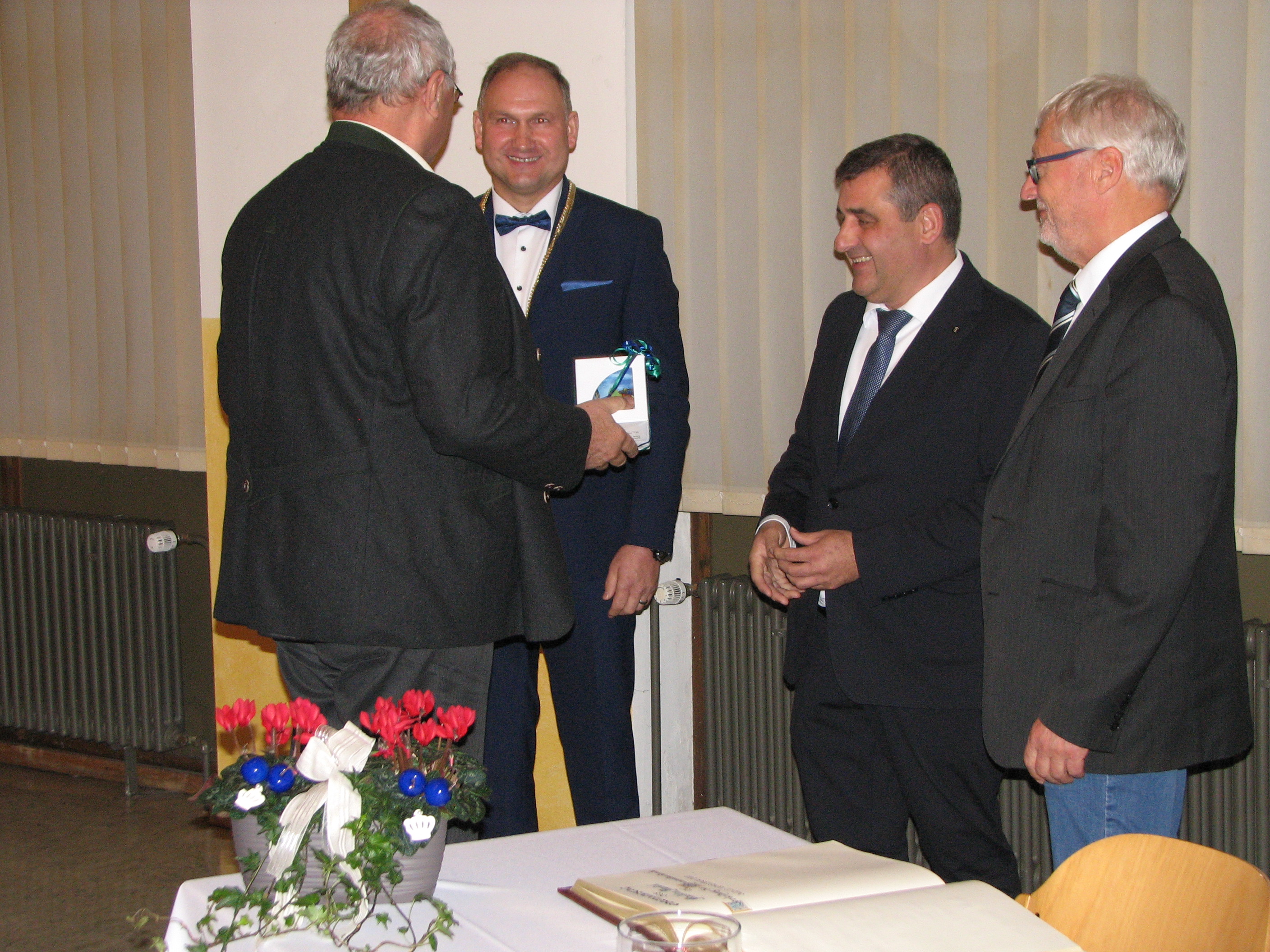Gemeinsam mit seinen Vertretern Siegfried Janner und Johann Gurdan überreichte er im Beisein von Pfarrer Thomas Kohlhepp und Pfarrer Andreas Ruhs sowie den Mitgliedern des Marktgemeinderates und der Marktverwaltung die Ehrenamtsurkunde an Elke Hackbarth, Norbert Magerer und Richard Paulus und bat um einen Eintrag ins Goldene Buch der Marktgemeinde. Die Veranstaltung wurde mit besinnlichen Liedern musikalisch umrahmt vom Duo Raureif Gisela Reil und Ulrike Rauch.