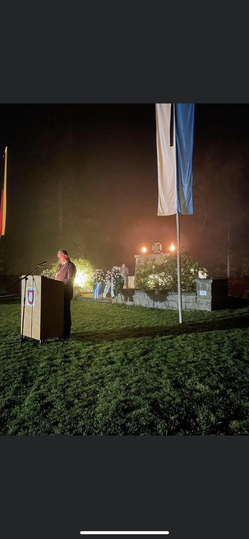Bürgermeister Richard Kammerer verwies mit Nachdruck darauf, dass dem Volkstrauertag gerade aufgrund des gegenwärtigen Krieges in der Ukraine als Mahner für den Frieden in der Welt eine große Bedeutung zukommt. „Die Menschen leiden aufgrund von Terror und Gewalt und fürchten um ihr Leben. Es ist unsere traurige Pflicht, auch der gefallenen Soldaten der Bundeswehr zu gedenken, die bei Auslandseinsätzen zur Sicherung und Bewahrung des Friedens fern ihrer Heimat ihr Leben lassen mussten.“