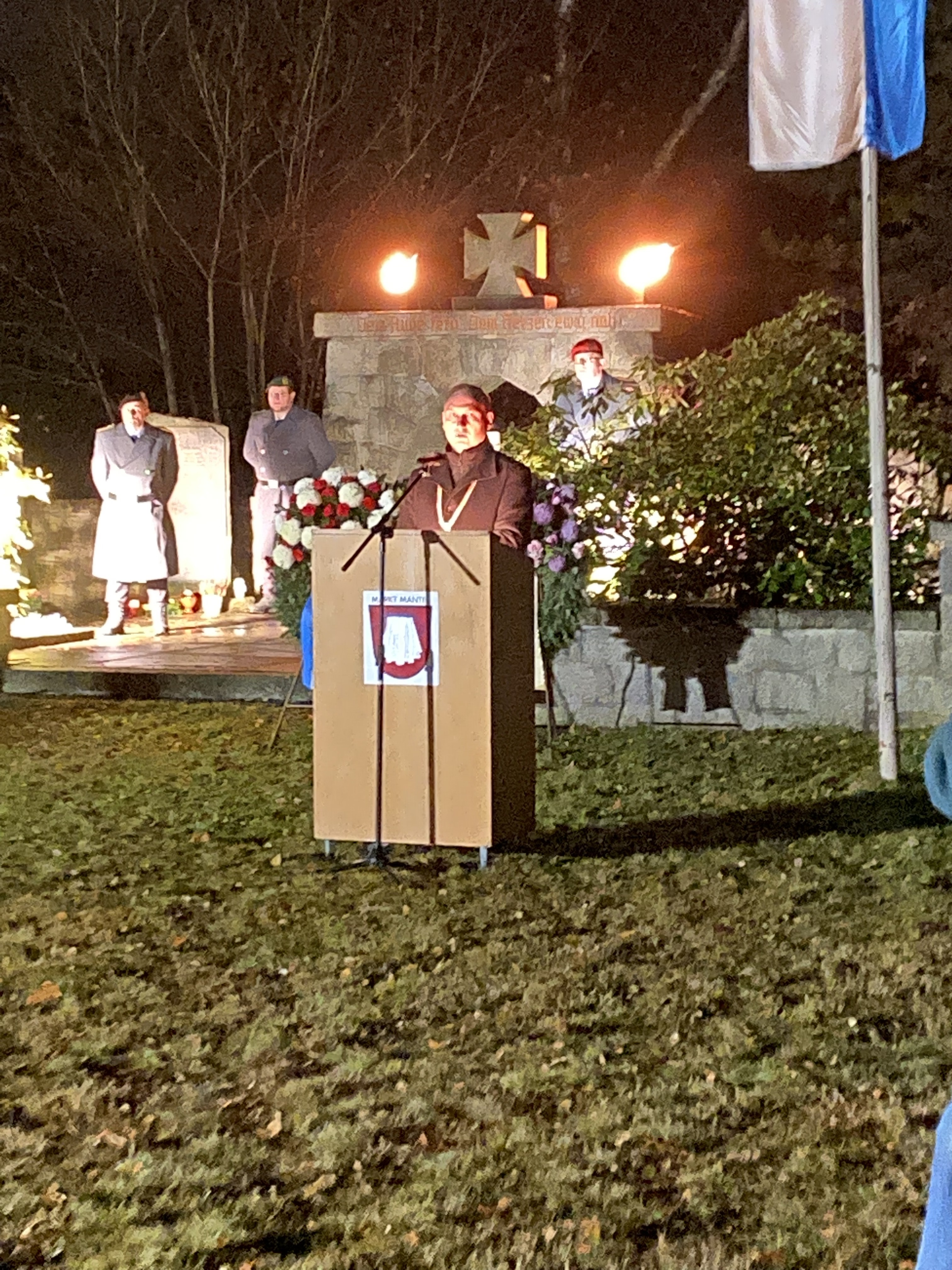 Nach dem ökumenischen Gottesdienst trafen sich Gläubige und Vereinsabordnungen vor dem Kriegerdenkmal. Bürgermeister Richard Kammerer gedachte der geschätzt 60 bis 70 Millionen Toten, die den beiden Weltkriegen zum Opfer gefallen seien. „Der Volkstrauertag steht als Mahnung für Versöhnung, Verständigung und Frieden unter den Völkern. Bei schonungslosen Angriffs- und Vernichtungskriegen gerieten nicht nur Soldaten, sondern auch völlig unbeteiligte Zivilisten und Flüchtlinge zwischen die Fronten und mussten ihr Leben lassen“, rief Kammerer ins Gedächtnis. Der Volkstrauertag sei ein stiller Gedenktag, dem in heutigen Zeiten von weltweit unzähligen Kriegen und hoher Gewaltbereitschaft auch im Alltag in Deutschland eine zentrale Bedeutung zukomme.