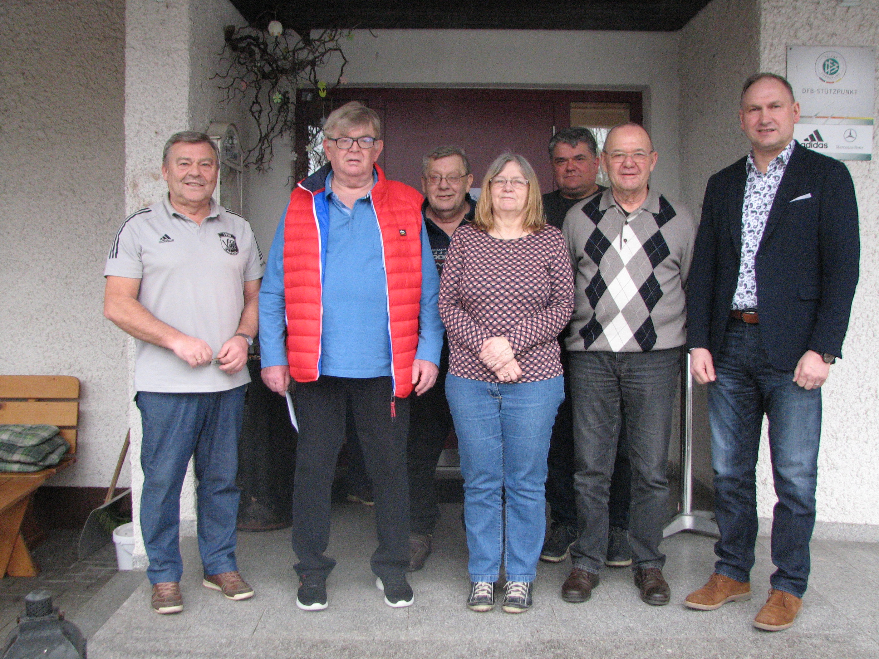 Herbert Steiner (links), Stefan Neumann (3. v. r.) und Bürgermeister Richard Kammerer (rechts) beglückwünschten die Sieger Gabi Messer (vorne Bildmitte), Konrad Wittmann (2. v. r.) und Manfred Schreier (2. v. l.) zu ihren Preisen. Siegfried Weber (3. v. l.) nahm mit Freuden den Trostpreis entgegen.
