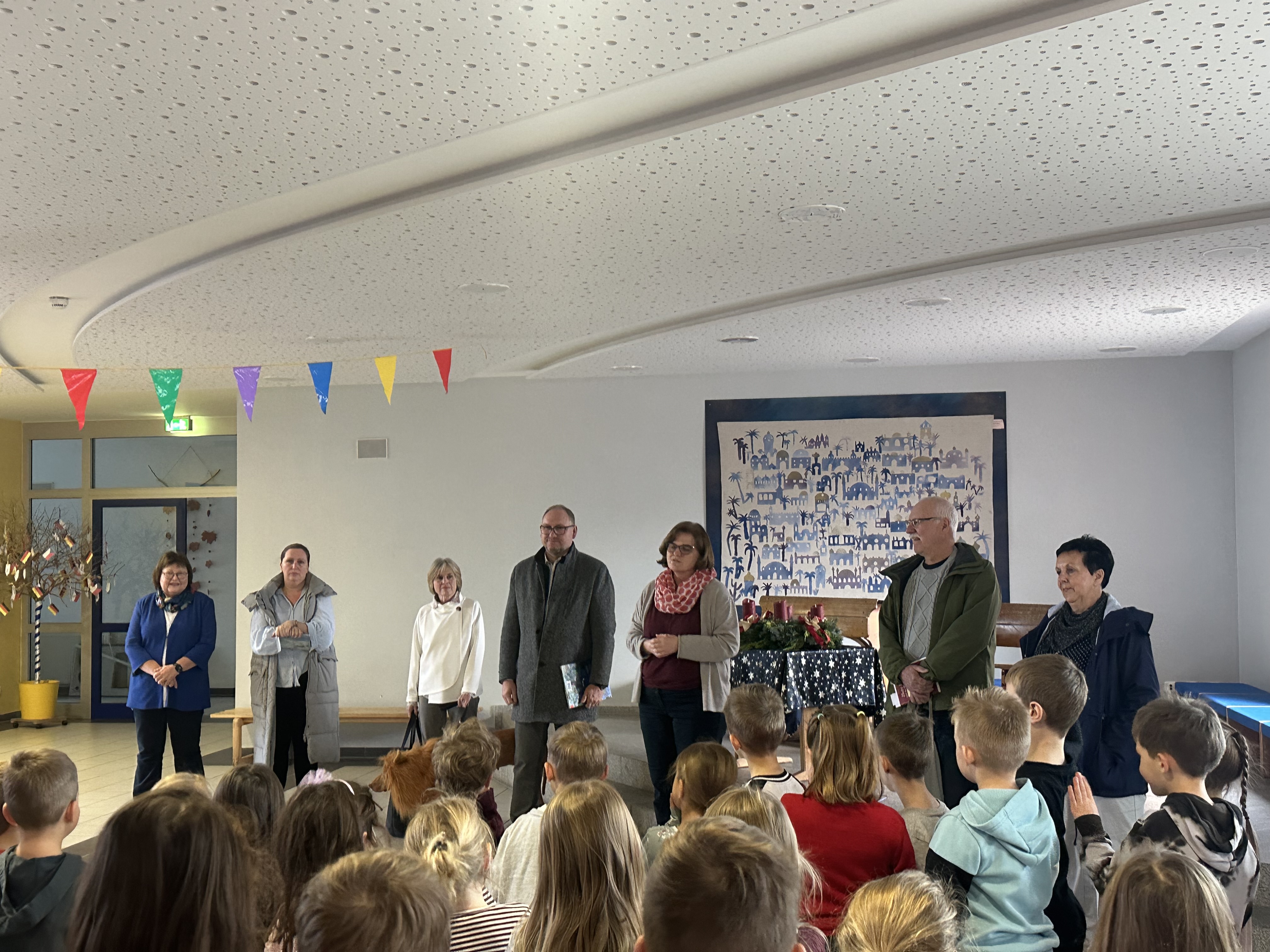 Am Freitag, den 28.11.2025, wurde auch an der Grundschule in Mantel der Vorlesetag durchgeführt. Nach der Pause schlüpften einige Mantler Bürger in die Rolle der Vorleser. Jeder hatte sich ein entsprechendes Buch ausgesucht und las einer Klasse oder den Vorschulkindern des Kindergartens daraus vor. So las Herr Kammerer in der vierten, Herr Kreß und Frau Kiendl in den beiden dritten, Frau Graßler in der zweiten und Frau Kraus zusammen mit Frau Gollwitzer den Vorschulkindern vor. Star des Mantler Vorlesetages war unumstritten der Hund von Frau Schmidt, der mit seiner Perücke wie ein Löwe aussah und zusammen mit seinem Frauchen den Kindern der ersten Klasse vorlas.