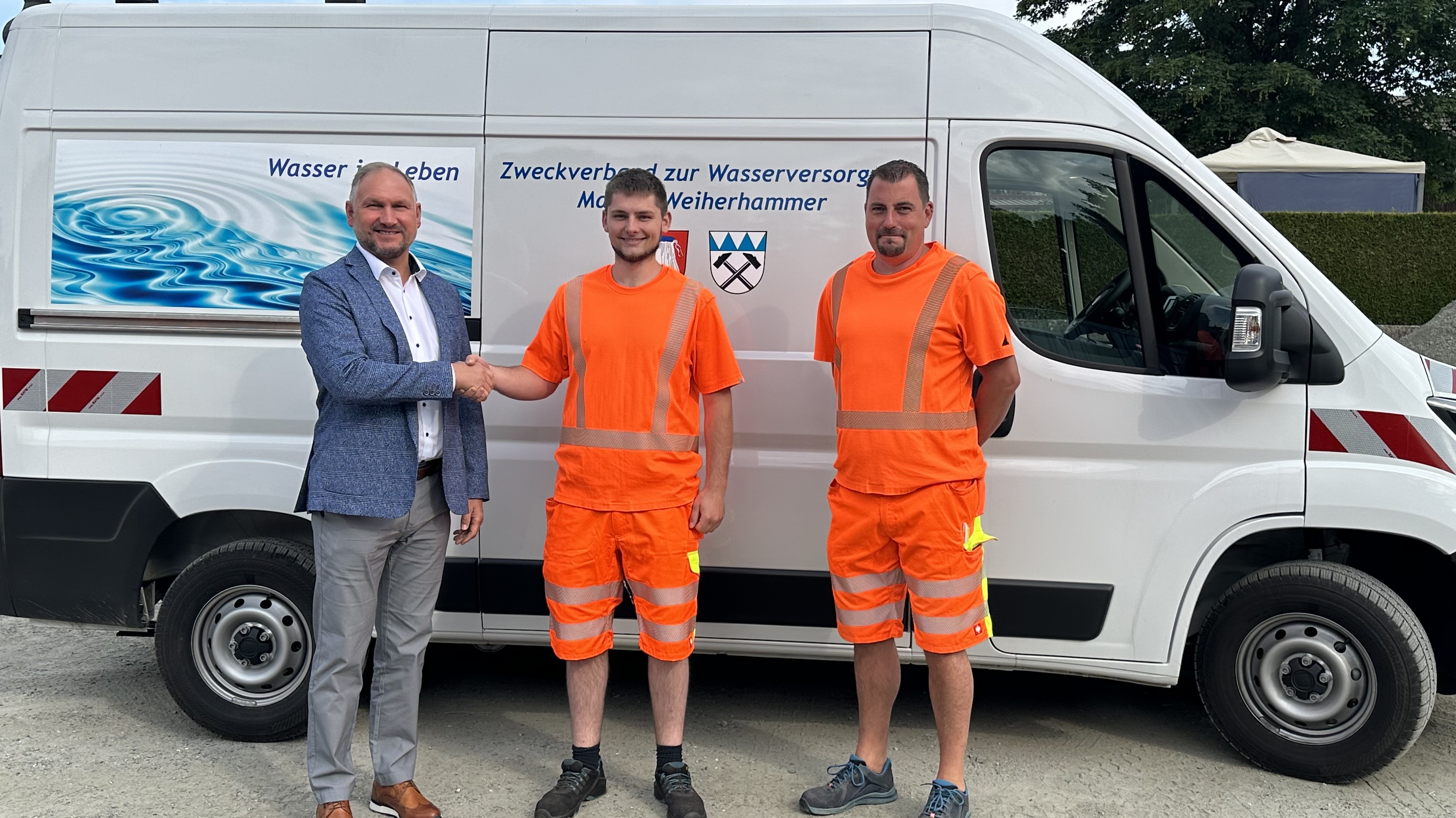 Wie Zweckverbandsvorsitzender Richard Kammerer erklärte fallen beim Zweckverband immer mehr elektrische Arbeiten an und so ergänzt der neue Mann das Team in einem wichtigen Bereich. Er ergänzt die Kollegen Tobias Rohrbeck und Florian Kiener. Durch die Übernahme der technischen Betriebsführung für die Wasserversorgung Kaltenbrunn sind die Aufgaben in den letzten Jahren erheblich gestiegen und so musste das Team erweitert werden. Zugleich konnte der Zweckverband das neue Dienstfahrzeug, einen Fiat Ducato von der Firma Bergler aus Weiherhammer in Empfang nehmen.