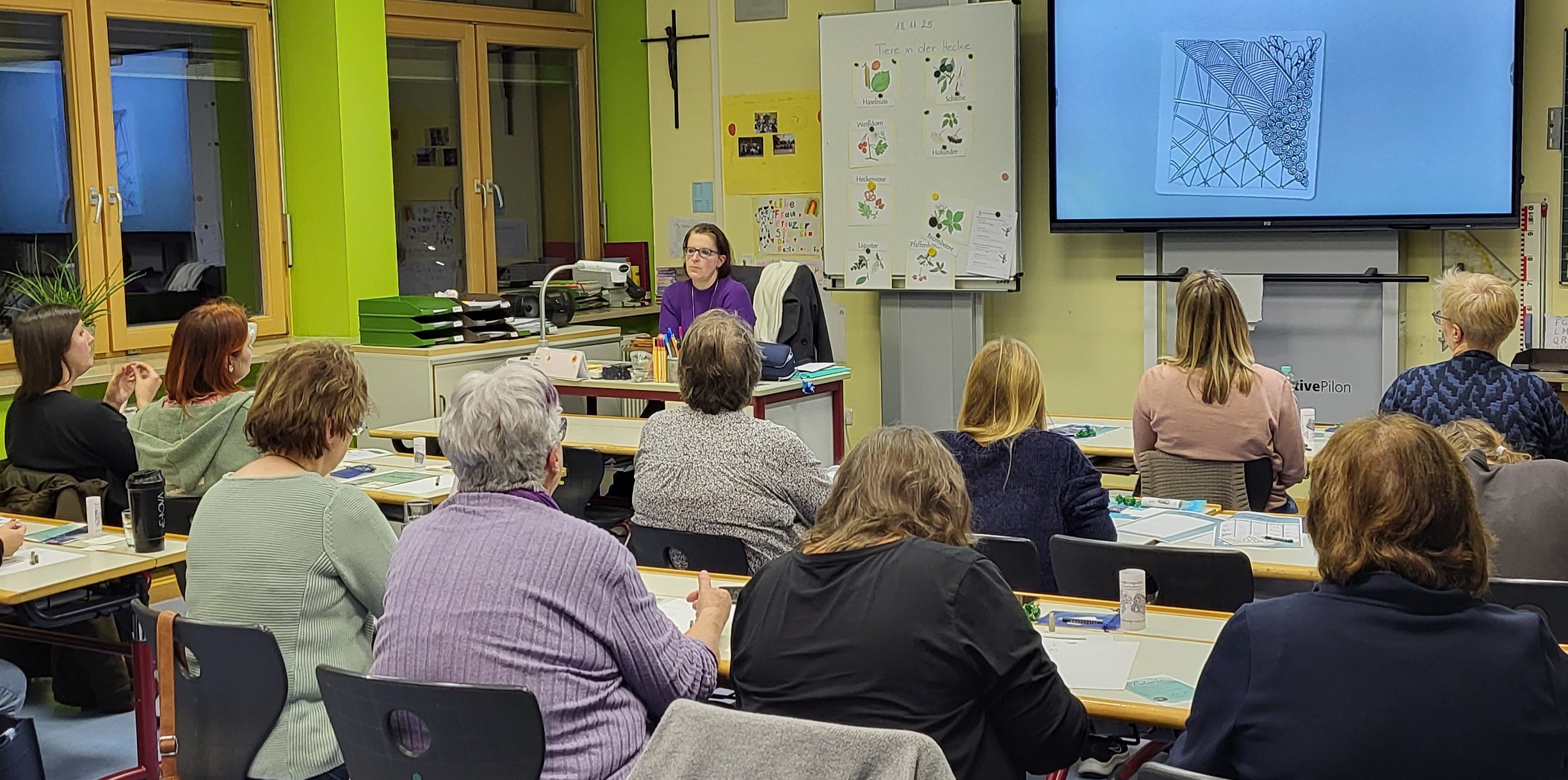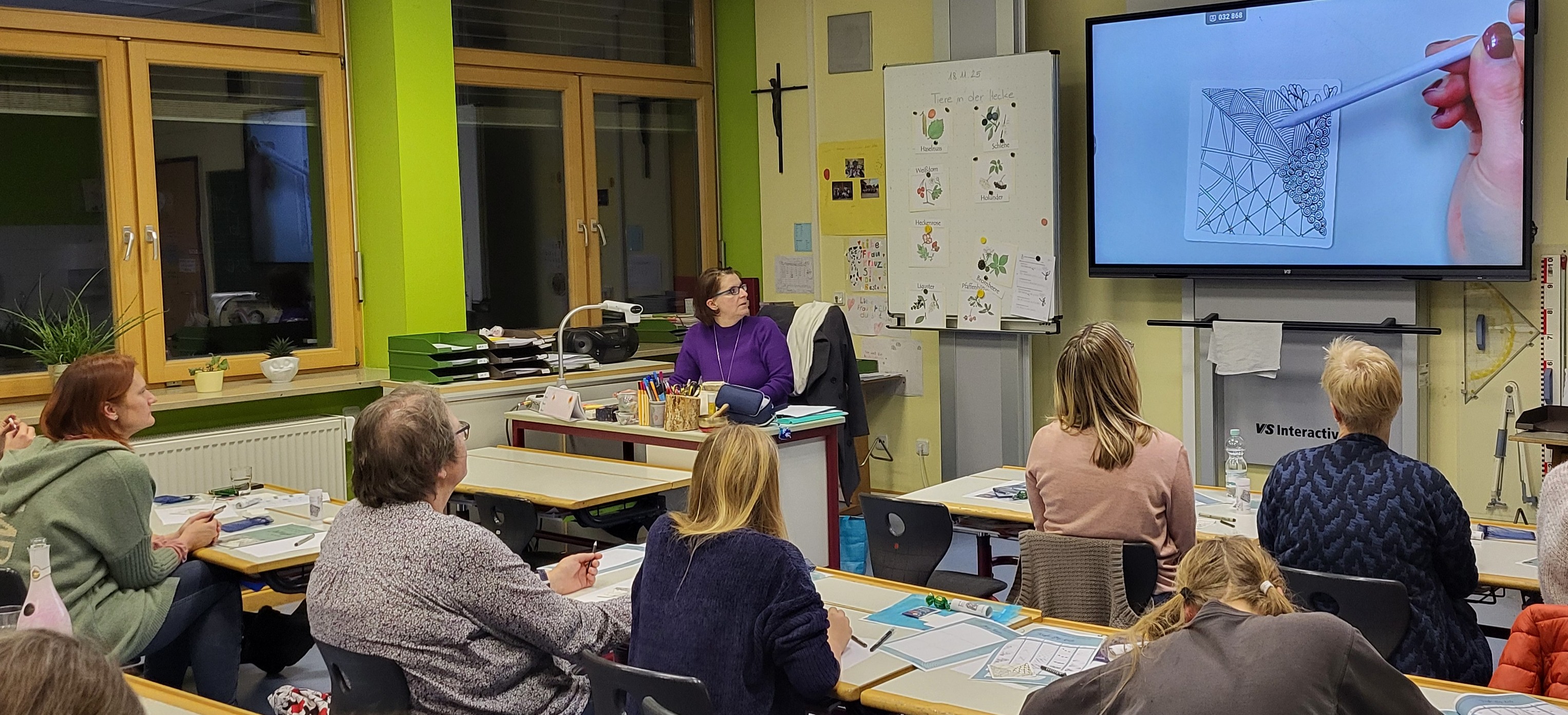 15 Teilnehmerinnen folgten am 20.November 2025 der Einladung zu einem Schnupperkurs in die faszinierende Welt des Zentangle®. Dabei ließen sie sich unter der Leitung von Andrea Hetschger, zertifizierte Zentangle®-Lehrerin auf diese besondere Zeichenmethode ein, die künstlerischen Ausdruck mit meditativer Ruhe verbindet.