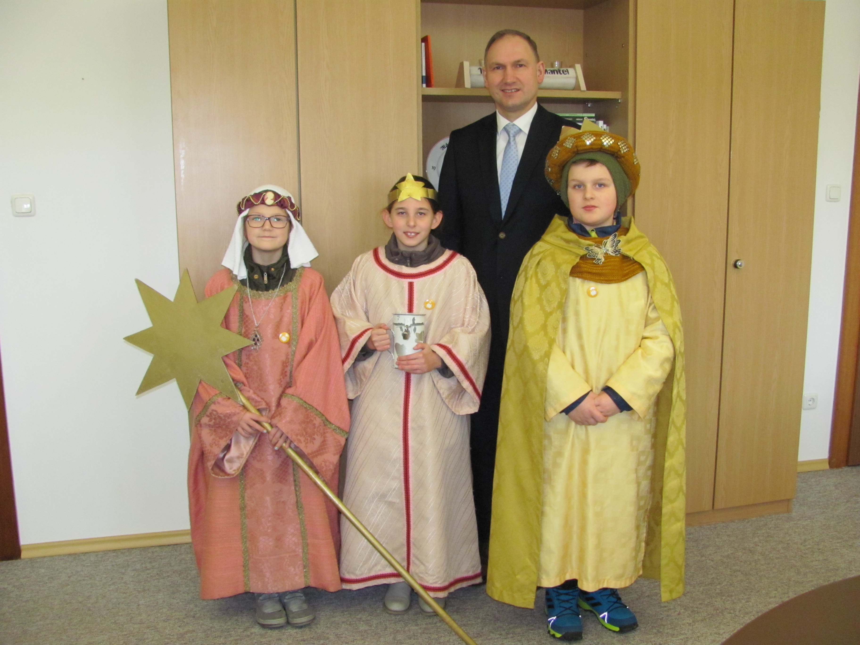Nach dem Abschlussgottesdienst am Dreikönigstag kam eine Gruppe von Sternsingern in Begleitung von Renate Puckschamel zu stellvertretendem Bürgermeister Richard Kammerer ins Rathaus. Sie sagten ihren Segensspruch auf und wurden mit einer Spende für die Spendenbüchse belohnt und freuten sich auch noch über Süßigkeiten für ihr Engagement. Kammerer lobte die Sternsinger für ihren Einsatz für die Kinder in Peru und der restlichen Welt. „Es ist wirklich toll was ihr da macht und ihr helft vielen Kindern auf dieser Welt denen es nicht so gut geht“, so der stellvertretende Rathauschef. Er ermunterte die Truppe, im nächsten Jahr noch weitere Freundinnen und Freunde zu den Sternsingern mitzubringen damit auch wirklich alle Familien in Mantel und den Ortsteilen besucht werden können.