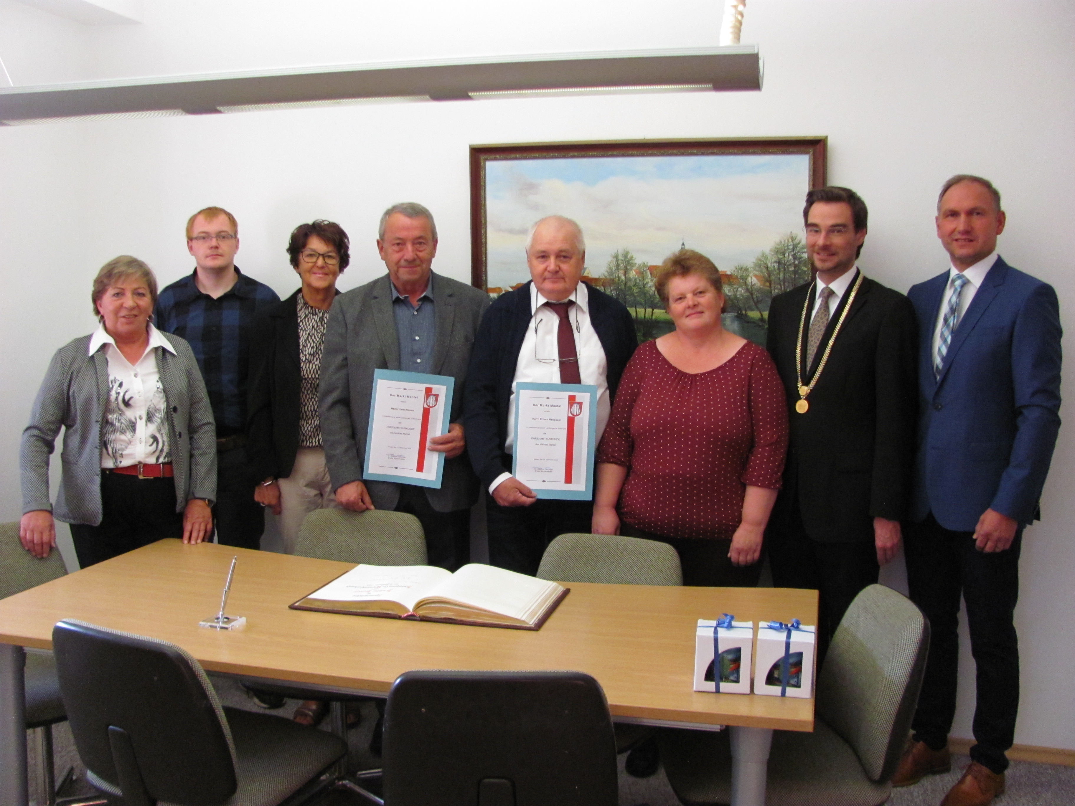 Im Jahr der 800-Jahrfeier, 2012 wurde die Ehrenamtsurkunde eingeführt. Auch in diesem Jahr wurden wieder Bürger, die durch ihr ehrenamtliches Engagement eine Vorbildfunktion haben mit der Urkunde ausgezeichnet. Da beim Ehrenamtstag Hans Klemm und Erhard Neubauer nicht teilnehmen konnten, bekamen sie am Montag im Rathaus in einer kleinen Feierstunde die Urkunden von Bürgermeister Dr. Stephan Oetzinger im Beisein von zweiter Bürgermeisterin Rita Steiner und drittem Bürgermeister Richard Kammerer nachgereicht. Bürgermeister Oetzinger würdigte Hans Klemm, der sich seit vielen Jahren in den unterschiedlichsten Bereichen des Manteler Vereinslebens einbringt. Besonderes Augenmerk legt Klemm auf den Fußballsport und die Brauchtumspflege. Er war über viele Jahre in der Vorstandschaft des VfB Mantel aktiv und hatte von 1986 bis 1992 den Vorsitz des Vereins inne. Er war treibende Kraft bei der Schaffung eines Spielfeldes für Mannschaften die auf einem Kleinfeld spielten. In seiner Amtszeit wurde das Kassenhäuschen mit Doppelgarage und Geräteräumen gebaut. In seiner Ära als Vorstand wurde im Jahre 1990 die Damenmannschaft gegründet. Seit 2017 ist Hans Klemm neuer Vorsitzender des Fördervereins des VfB Mantel dessen Vereinsziel die Förderung der Jugendarbeit ist. Bei den Mantler Club-Freunden ist er von Beginn an aktives Mitglied, ebenso bei der Reservistenkameradschaft wo er sich auch bei der Kriegsgräberpflege einbringt. Auch der Rauchclub kann sich auf das Mitglied Hans Klemm verlassen. Anlässlich des 120-jährigen Gründungsjubiläum hat er sich um die Restaurierung des historischen Protokollbuches gekümmert und war maßgeblich an der Erstellung der Vereinschronik zum 125-jährigen Jubiläum sowie in die Planungen des Jubiläumsjahres eingebunden. Weiterer Träger der Ehrenamtsurkunde ist Erhard Neubauer. Er war viele Jahre Vorsitzender der Reservistenkameradschaft Mantel. Ihm war und ist die Zusammenarbeit zwischen RK und der Krieger- und Soldatenkameradschaft ein Anliegen. Auch heute wirkt Neubauer aktiv im Vorstand der RK Mantel mit und begleitet zahlreiche Veranstaltungen darunter auch die Biwak-Termine. Außerdem brachte er sich aktiv bei den Fahrten zur Kriegsgräberpflege ein. Auch in der KSRK Mantel ist er aktives Mitglied. Dort unterstützt er alle Aktivitäten, vor allem auch die Organisation des Volkstrauertages. Im Beisein ihrer Familienmitglieder durften sich die Geehrten in das Goldene Buch des Marktes Mantel eingetragen und dann wurde noch mit Sekt auf die Ehrung angestoßen.