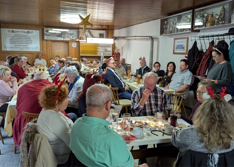 So viele Mitglieder wie noch nie begrüßte Vorsitzende Carola Brust bei der Weihnachtsfeier im Gasthaus Hauptmann. Einige Gäste und die Vorstandsmitglieder trugen lustige Weihnachtsdeko auf dem Kopf. …