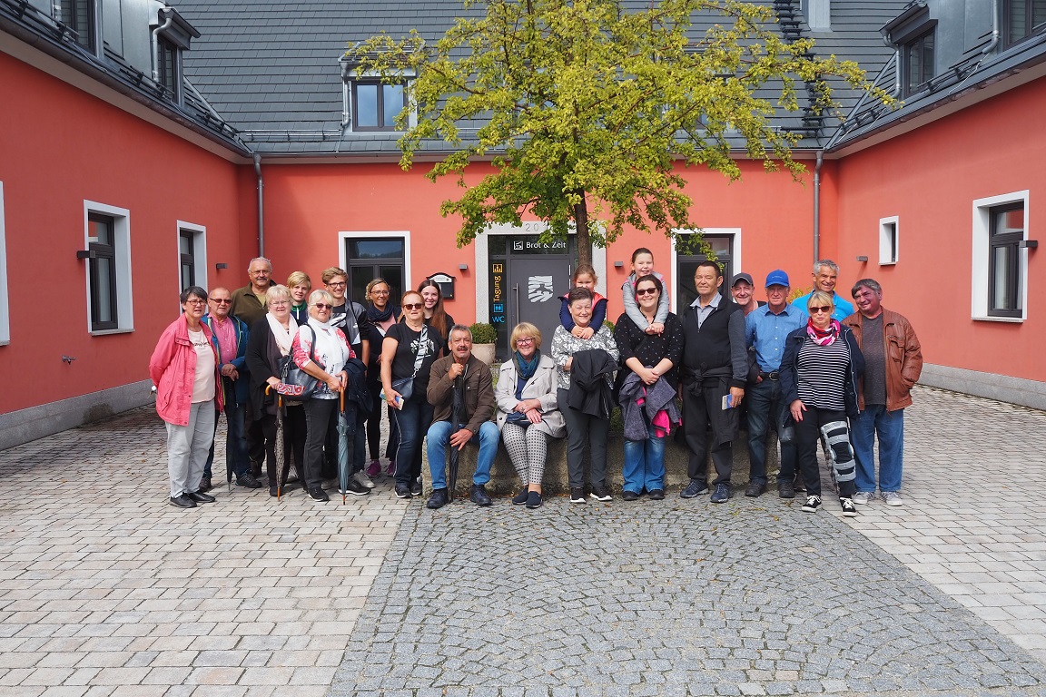 Vor dem Museumscafé „Brot & Zeit“ stellten sich die Teilnehmer zu einem Erinnerungsfoto.