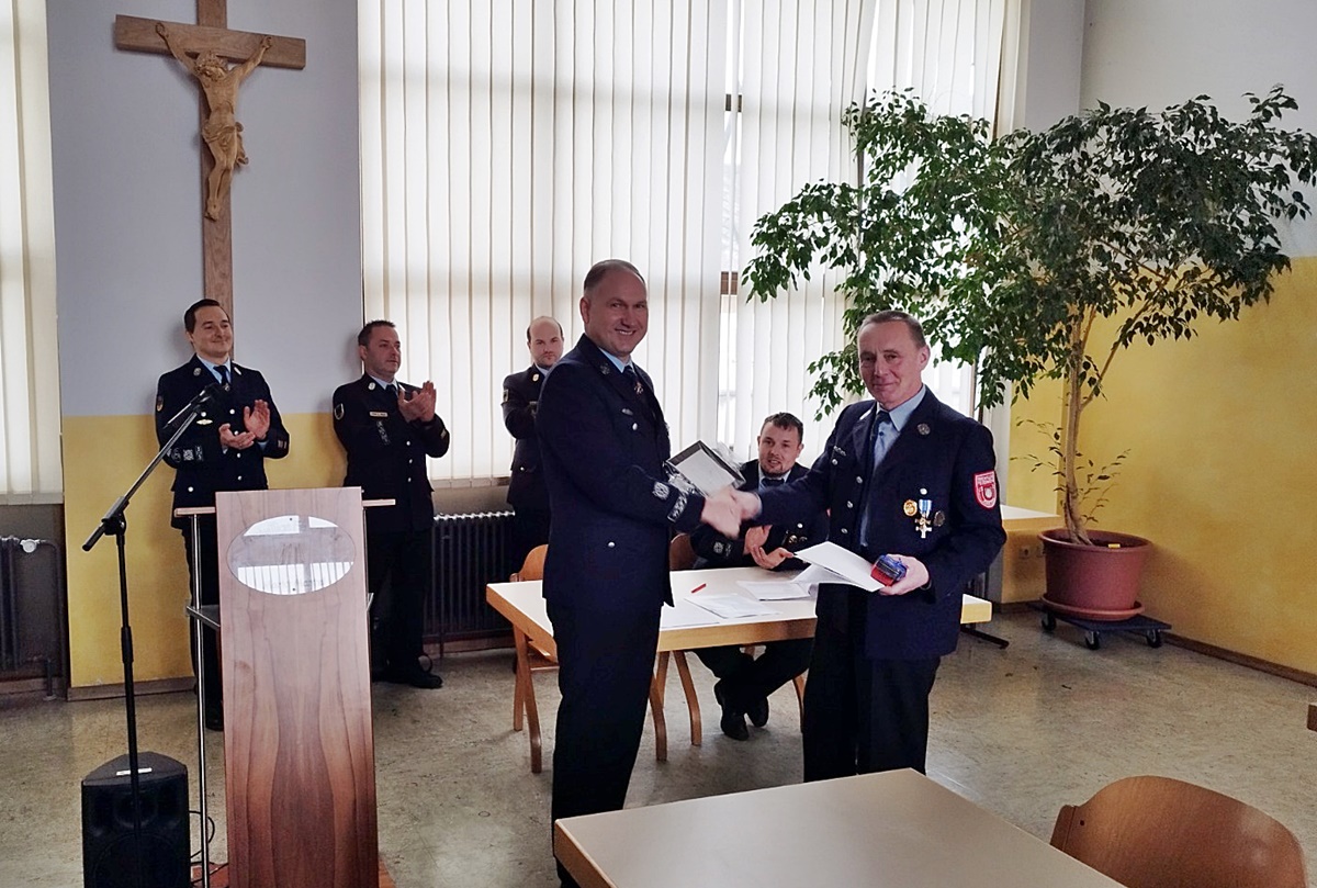 Kreisbrandrat Marco Saller sah es ähnlich: „Es ist schön zu sehen, dass die aktive Wehr und der Verein so gut zusammenarbeitet. In einer Studie wurde kürzlich erst belegt, dass 8 von 10 befragten Personen, die nichts mit der Feuerwehr zu tun haben, davon ausgehen, dass auch die ganzen kleinen Feuerwehren Berufsfeuerwehren sind und nicht ehrenamtlich geführt werden“, so der Kreisbrandrat. „Dem ist aber nicht so und um so mehr muss auch den Familien gedankt werden, die das Verständnis aufbringen, dass die Angehörigen oft zu Hause fehlen oder zu den unmöglichsten Zeiten von jetzt auf gleich zum Einsatz eilen“.