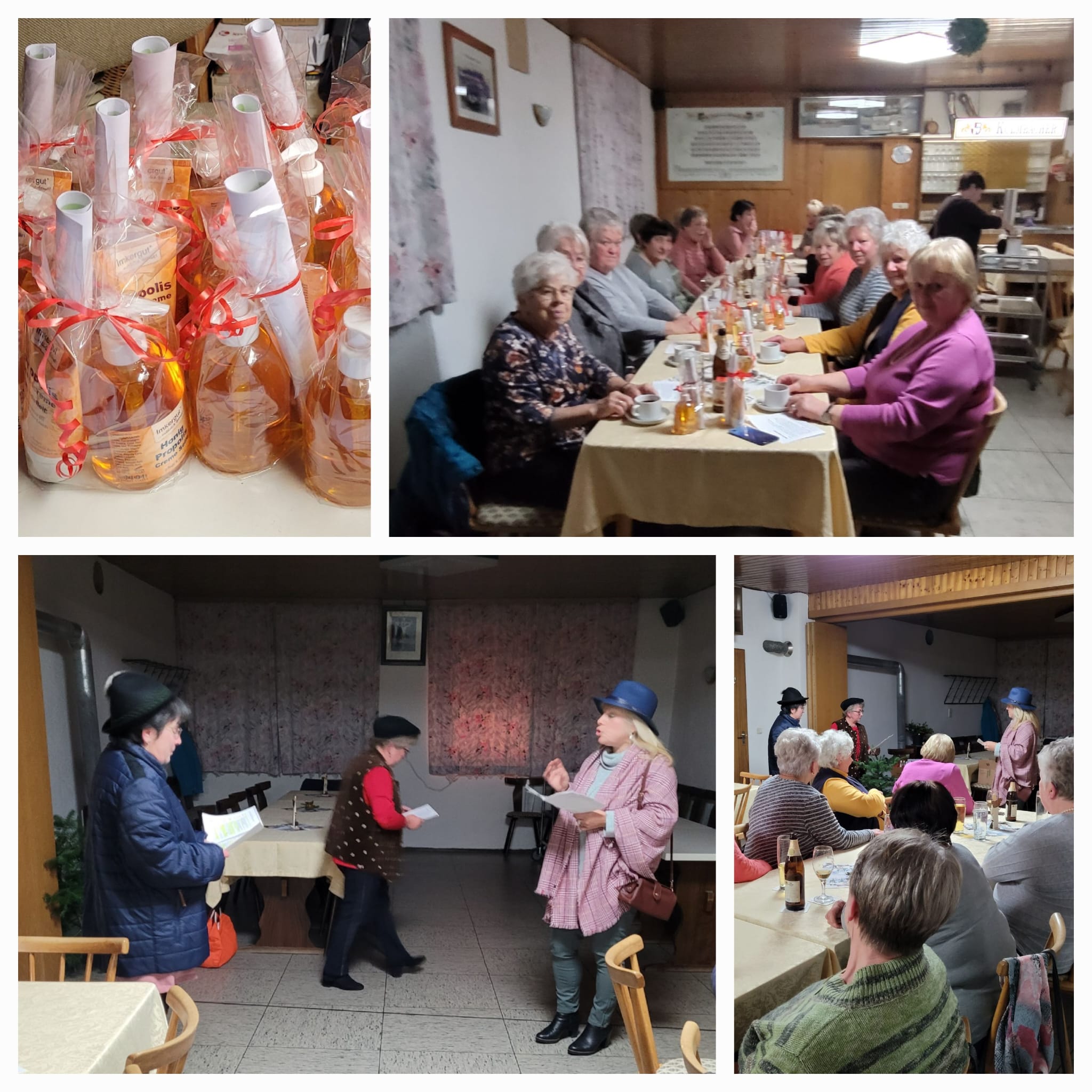 Im Dezember trafen sich die Mantler Siedlerfrauen im Gasthaus Hauptmann zu einer besinnlichen und dann zu einer sehr lustigen Weihnachtsfeier. Die Wirtin Helene servierte zuerst ein leckeres Menü, anschließend verwöhnte sie die Damen mit leckerem Glühwein. Die Vorsitzende Gudrun Horch überraschte jede Siedlerfrau mit einem Weihnachtsgeschenk und einem individuellen Weihnachtsspruch . Einige packten sofort ihr Geschenk aus und erfreuten sich an den verschiedenen Sprüchlein. Auch die nachdenklichen Weihnachtsbotschaften und die lustigen Geschichten fanden begeisterte Zuhörer. Der Höhepunkt des Abends jedoch war die humorvoll vorgetragene Theateraufführung der Wolfinger-Damen. Zwei etwas derbe Gestalten wollten doch tatsächlich der kultivierten vornehmen Dame den Bio- Riesenzwerg-Tiroler-Weihnachtsbaum , getränkt mit Weizenbier, biologisch abbaubar, schmackhaft machen. Es dauerte etwas, bis alle Fragen geklärt waren und die Dame schließlich 78 Euro locker machte und den potthässlichen Christbaum kaufte. Die Zuschauer bogen sich vor Lachen. Alles in allem war es ein gelungenes Fest , da waren sich alle einig und bedankten sich bei allen, die diesen gemütlichen Abend veranstalteten. Für Januar 2023 ist eine Winterwanderung geplant, genauerTermin und Treffpunkt wird noch bekannt gegeben.