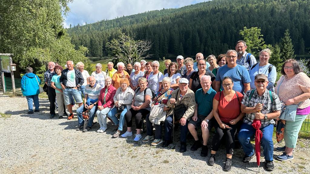 Beim diesjährigen Tagesausflug des VdK Ortsverbandes Mantel hatte der Wettergott wahrlich ein Einsehen mit den 45 Reiselustigen. Bei der Abfahrt um 8.00 Uhr goss es noch in Strömen, zwei Stunden später am Fuße des kleinen Arber brach die Sonne durch. Mit der Bimmelbahn ging es langsam aber stetig durch sattes Grün und feinem Waldgeruch hinauf zum kleinen Arbersee. Wer Lust hatte umrundete den See oder lies sich gleich zu einem Sonnenbad im Biergarten nieder, wo sich zum Mittag hin alles erst einmal bei verschiedensten Leckereien stärkten. Wieder mit der Bahn unten angekommen ging es mit dem Bus der Firma Zitzmann, Störnstein weiter nach Arnbruck in Glasdorf. Der dort stattfindenden Vorführung des Glasbläserhandwerks folgten alle sehr genau. Aus einem kleinen Glasklumpen entstand in kurzer Zeit eine zierliche Vogelskulptur. Anschließend war noch Zeit im Glasdorf bei Kaffee und Kuchen die Sonne zu genießen oder einfach durch die zahlreichen Glasshops und Dekogeschäfte zu bummeln. Um 17.00 Uhr gings zurück nach Mantel. Je näher die Heimat kam um so finsterer wurde es und 10 Kilometer vor Ankunft setzte der Regen wieder ein. Der Wettergott stand an diesem Tag auf unserer Seite.