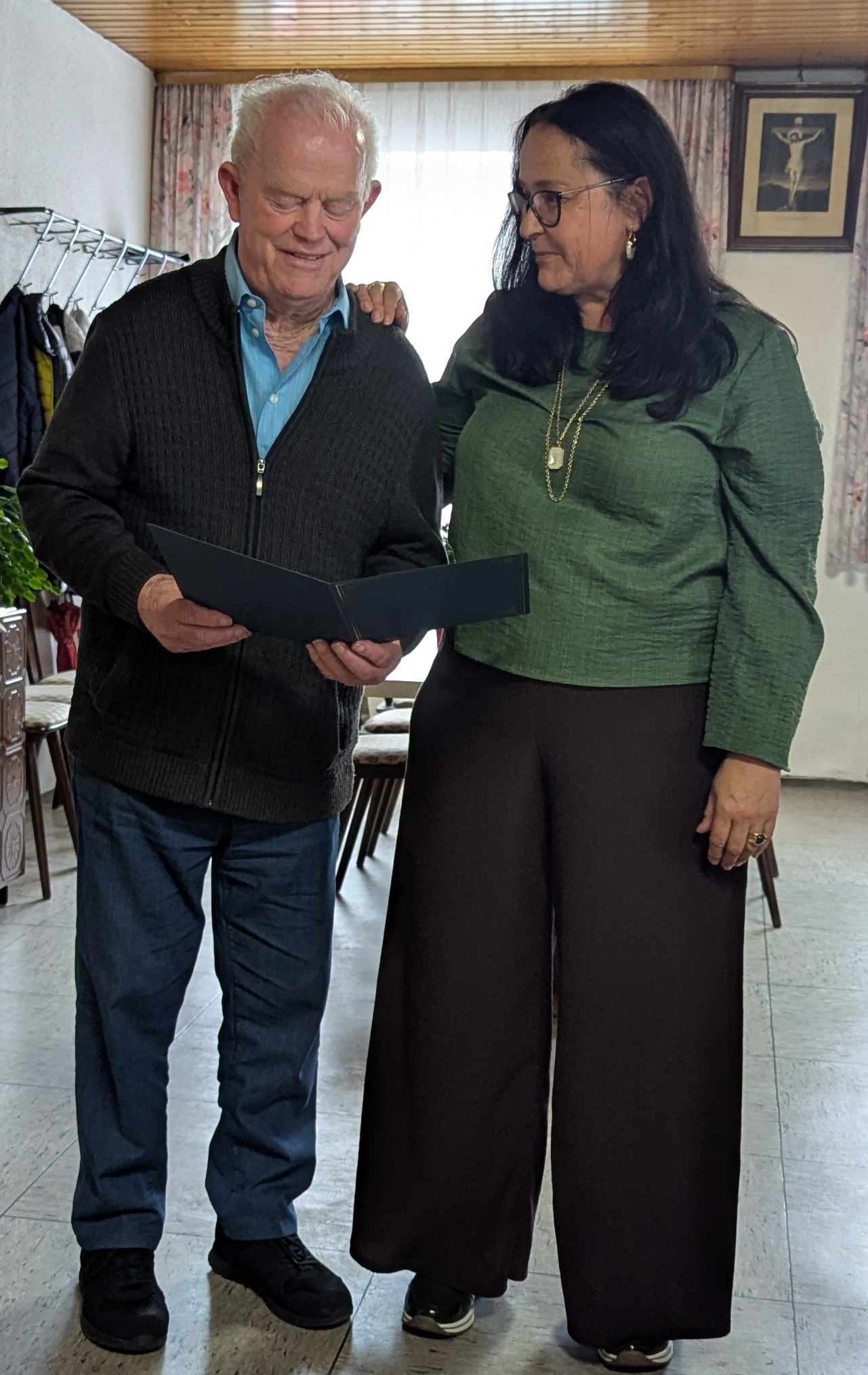 Für einen emotionalen Moment sorgte die Vorsitzende, als sie diesem Wunsch zunächst eine klare Absage erteilte: „Durch einstimmigen Beschluss der Vorstandschaft ist das nicht gewünscht. Es geht eine Ära zu Ende“, erklärte Carola Brust und sorgte damit für überraschte Gesichter und betretenes Schweigen im Saal. Mit einem Schmunzeln löste sie die Spannung jedoch schnell auf: „Wir haben dich einstimmig zum Ehrenortsvorsitzenden ernannt!“ Unter großem Applaus überreichte sie Kleber die entsprechende Urkunde und würdigte damit seine herausragenden Verdienste.