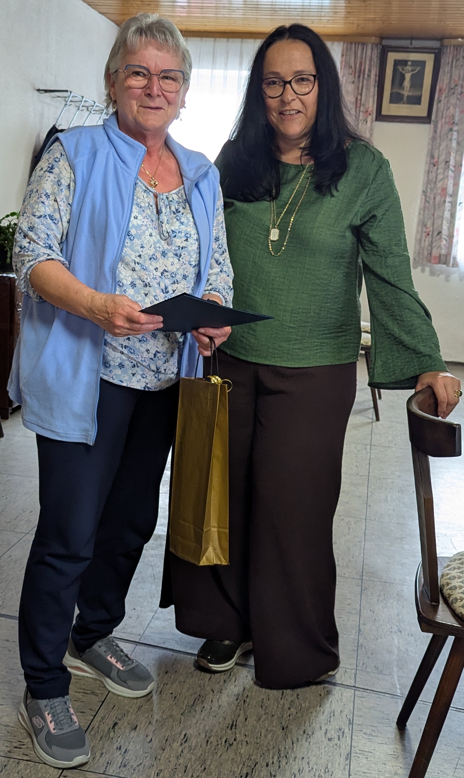Ebenfalls für 30 Jahre Mitgliedschaft und ehrenamtliche Mitarbeit im VdK wurde Rita Steiner geehrt. Sie war von 1996 bis 2006 als Schriftführerin tätig, engagierte sich als Vertreterin der Frauen und ist seit 2006 bis heute als Kassiererin eine verlässliche Stütze des Ortsverbands. Auch sie erhielt eine Urkunde sowie ein kleines Geschenk als Anerkennung.
