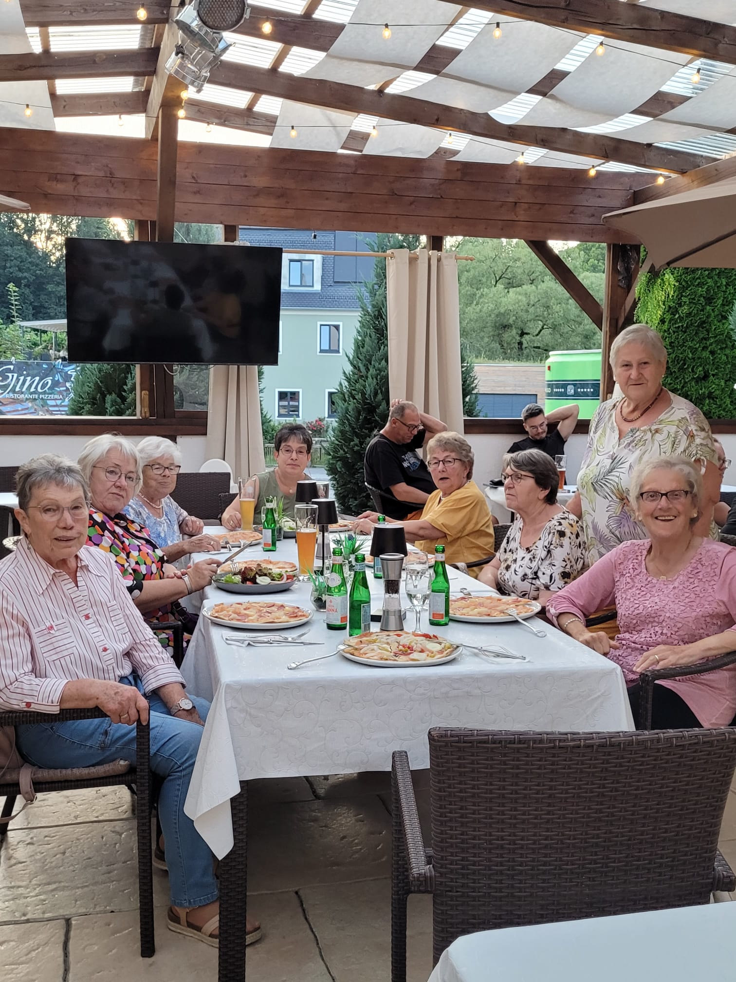 Im Juli hatte sich Vorsitzende Gurdrun Horch für ihre Siedlerfrauen erst einen musikalischen, dann einen kulinarischen Leckerbissen ausgedacht. In Fahrgemeinschaften ging es zuerst nach Neustadt in die Freizeitanlage. Die Damen besuchten die Serenade des Gospelchores Hope and Joy. Auch die Damen wurden von den Liedern in den Bann gezogen, einige wippten oder sangen und klatschten mit. Einige Zuschauer tanzten sogar mit. An dem wunderbaren Sommerabend genossen dann die Damen auf der Terrasse beim Italiener Gina in Neustadt noch eine leckere Pizza. Gut gestärkt und bestens gelaunt ging es nach Mantel zurück.