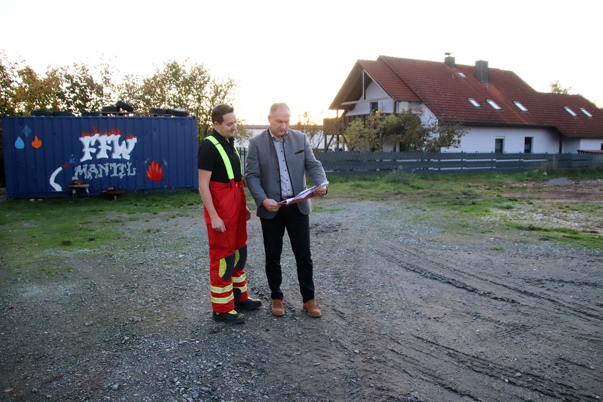 1987 wurde das jetzige Feuerwehrgerätehaus in der Friedhofstraße gebaut, seitdem wurde noch ein Anbau im hinteren Bereich angebracht. Nun hat Siegfried Janner, der vorherige Kommandant der Freiwilligen Feuerwehr eben im Jahre 2020 den Antrag gestellt. „Mittlerweile platzt das Feuerwehrhaus aus allen Nähten“, weiß auch Bürgermeister Richard Kammerer. „Wir mussten sogar schon Container aufstellen, um diverses Material unterzubringen“. Und auch die Schutzbereichsanalyse der Kreisbrandinspektion zeigte auf, das aufgrund des Fahrzeugkonzeptes vier Fahrzeugspuren (Unterstellplätze) gebraucht werden. „Das Feuerwehrhaus wurde daraufhin überprüft und es funktioniert so aktuell nicht“, so Kammerer. Auch andere Faktoren spielten hier eine wesentliche Rolle. „Wir haben aktuell 23 Jugendliche in unserer Feuerwehr, die sitzen im Hausgang, weil es keinen Platz gibt“.