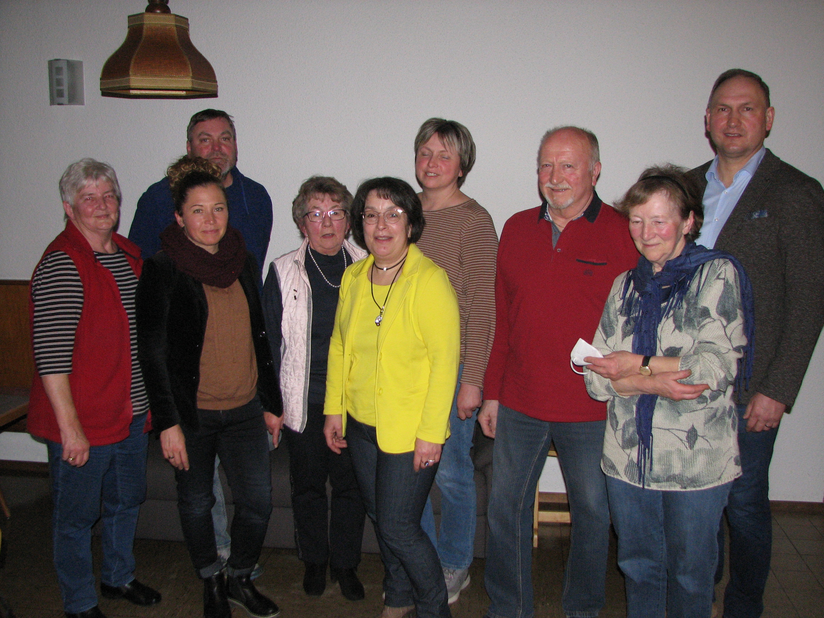 Bürgermeister Richard Kammerer (rechts) gratulierte der Vorsitzenden Elke Hackbarth (Bildmitte) und ihrer Vertreterin Sandra Fenzl (vorne 2. v. l.) zu ihrer Wahl und wünschte der gesamten Vorstandschaft gute Entscheidungen bei ihrer Arbeit.