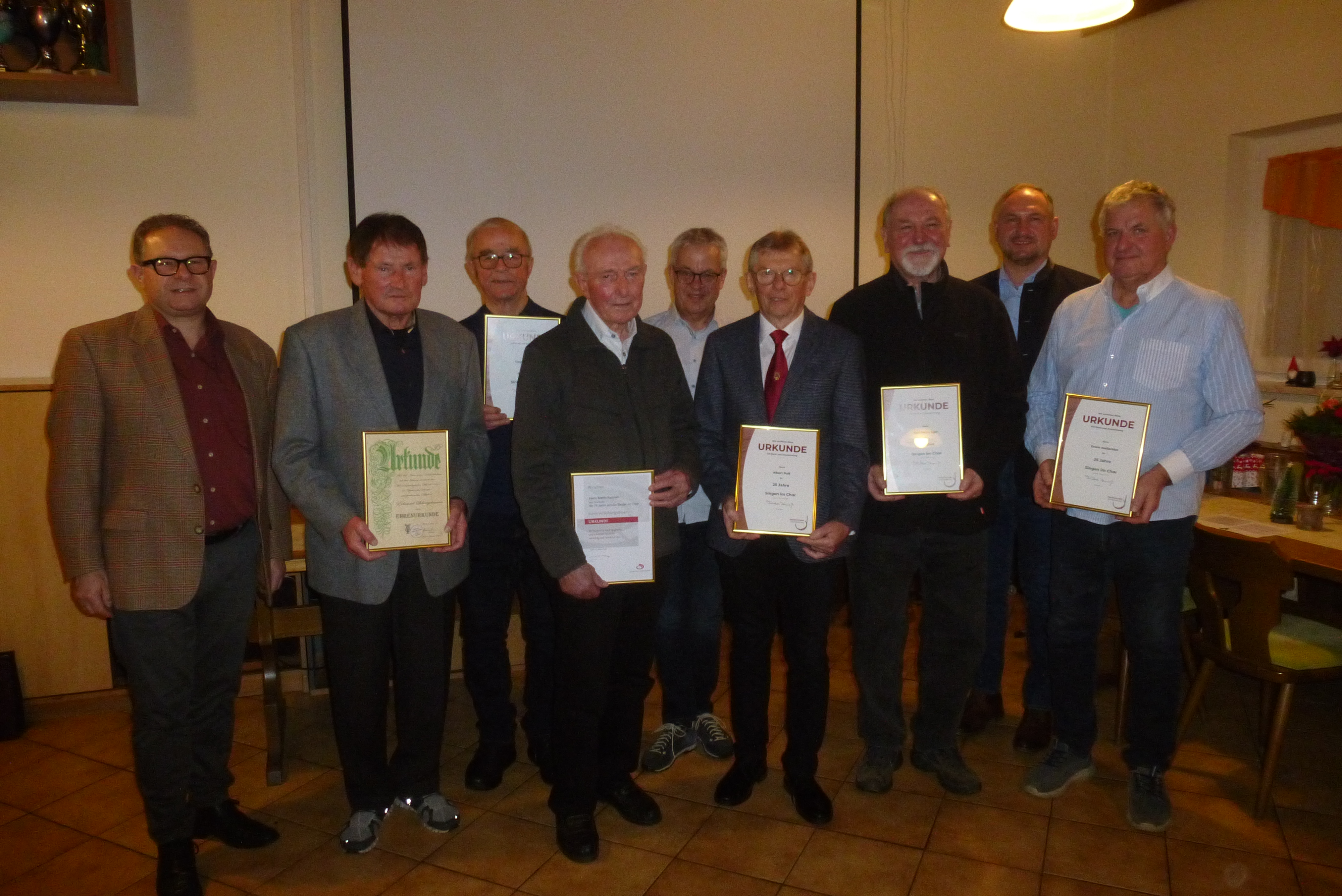 Ebenfalls mit einer treffenden Laudatio hatte der MGV-Chef die Auszeichnung für Willi Koller (erkrankt) und Martin Kummer, seit 75 Jahren aktiv, versehen. Sie erhielten zusätzlich die Urkunde des Deutschen Chorverbands. Edmund Schregelmann hält dem MGV seit 60 Jahren die Treue. Den verhinderten Alfons Bogner, seit 70 Jahren aktiv, Karl-Heinz Fellner (50 Jahre aktiv) sowie Alfons Ostermeier (60 Jahre Mitglied) und Hans Heindl (70 Jahre) wird die Auszeichnung nachgereicht.
