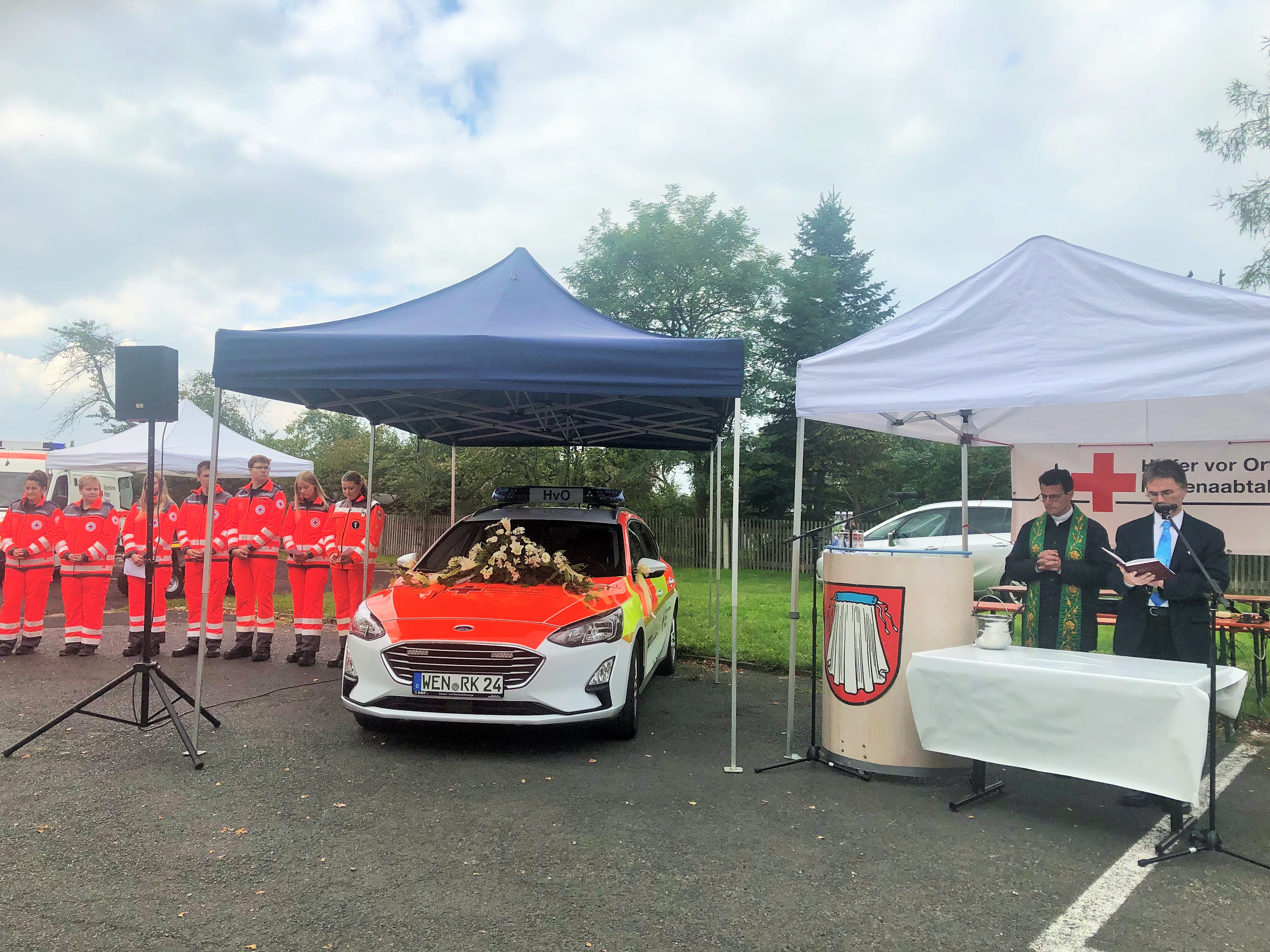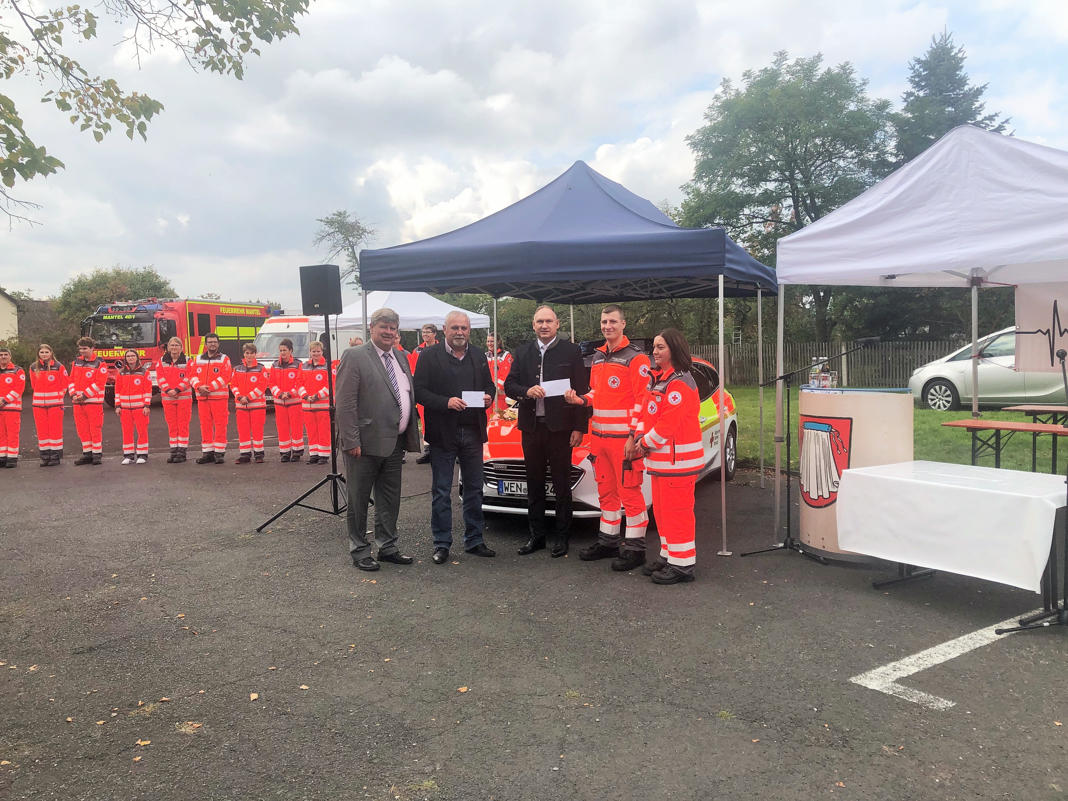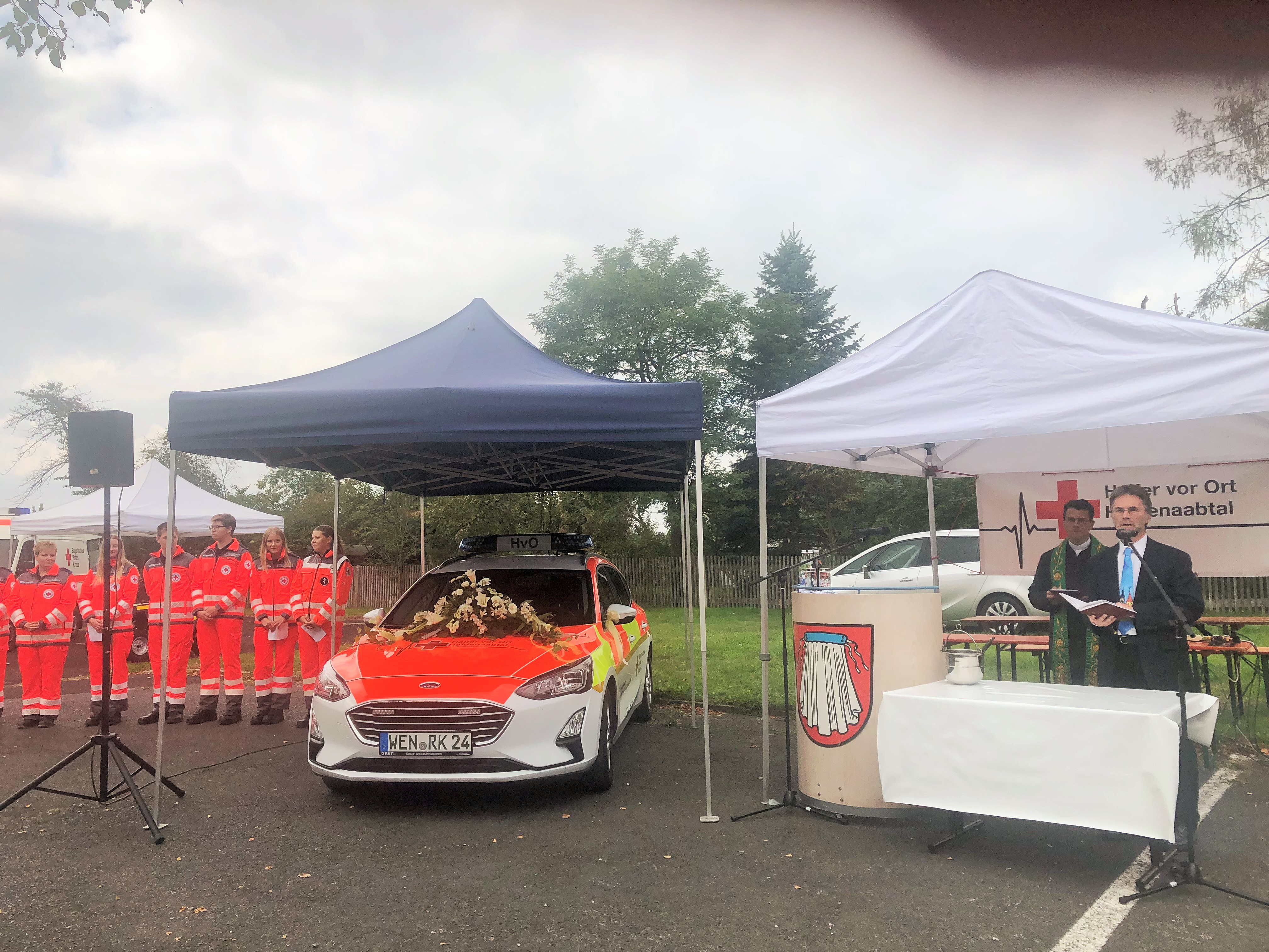 Mit einer Andacht wurde kürzlich das neue Einsatzfahrzeug der „Helfer vor Ort“ Haidenaabtal beim Gemeindezentrum Mantel eingeweiht. BRK Bereitschaftsleiter Gerd Kincl dankte den Geistlichen für die Segnung und der Bevölkerung, darunter auch Landtagsabgeordneter Dr. Stephan Oetzinger und Roland Magerl für das zahlreiche Erscheinen. Die Pfarrer Thomas Kohlhepp und Andreas Ruhs erteilten dem Ford Focus den kirchlichen Segen. „Es gibt Menschen, die sich im Notfall an unsere Seite stellen. Dieses Fahrzeug dient dazu, dass sie noch schneller an ihren Einsatzort kommen“, so Ruhs. „Die „Helfer vor Ort Haidenaabtal“ leisten einen wichtigen Dienst so Pfarrer Kohlhepp. Wie die Geistlichen erklärten, ist bei den Fahrten immer noch einer mit an Bord, nämlich Gott. Die Fürbitten wurden von den Mitgliedern der Helfertruppe gesprochen. Philipp Mangold, Leiter der „Helfer“ gab einen Rückblick auf die Entstehung der Truppe. Anfang 2019 war die Idee geboren worden und Seit 1.Februar 2020 sind ist der „HVO“ Haidenaabtal im Dienst. Er bekam damals vom Kreisverband Neustadt ein Fahrzeug, das war aber viel zu klein. Dann kam Coronabedingt eine Pause, aber die Helfer waren da nicht untätig. Sie betrieben in Mantel eine Teststation, fuhren Masken aus und betätigten sich im Rettungsdienst. All das ehrenamtlich. Seit Februar 2020 haben sie dann Spenden für ein neues größeres Fahrzeug gesammelt. Nun stand der Ford Focus mit Ausstattung im Wert von 36.037,48 Euro mit Blumen geschmückt und gesegnet auf dem Parkplatz des Gemeindezentrums. Die Firma RdF-Tec war für die Spezialausstattung zuständig. Bürgermeister Richard Kammerer erläuterte, dass der HVO zuerst nur aus einer kleinen Handvoll Feuerwehrleute bestand, welche die Ausbildung zum First Responder hatten. Nun steht eine starke Truppe von 40 Leuten hier, das verdient Applaus, so der Manteler Rathauschef. Durch die Spendenbereitschaft von Firmen, Vereinen, Organisationen und Bürgern zeigte sich wie wichtig der Bevölkerung der Einsatz der HVO-Helfer ist. Bürgermeister Richard Kammerer übergab mit seinen Kollegen Ludwig Biller aus Weiherhammer und Martin Schregelmann aus Etzenricht Spenden. Die Helfer sind auch in den Nachbargemeinden tätig. Stellvertretende Landrätin Maragit Kirzinger könnte sich eine Situation ohne die Helfer gar nicht mehr vorstellen. Sie brauchen aber die Unterstützung der Politik. Wenn ein Mensch in Not ist, zählt jede Sekunde, so Kirzinger. Auch von ihr kam eine Spende. Sandro Galitzdörfer, Kreisgeschäftsführer des BRK Weiden-Neustadt erklärte die Anfänge der HVO Gruppen die früher noch mit Privatauto ausrückten und ihre Ausrüstung in einem Werkzeugkoffer eines Baumarktes verstaut hatten. „Niemals hätte ich damit gerechnet, dass in so kurzer Zeit die Spenden für das neue Fahrzeug zusammenkommen“. Die Ersthelfer können schon in zwei bis vier Minuten beim Patienten sein, während der Rettungswagen doch wesentlich länger für seine Fahrt braucht, so der Kreisgeschäftsführer. Petra Luber, stellvertretende Bundesbereitschaftsleiterin und Dieter Hauenstein, Landesbereitschaftsleiter gratulierten zum neuen Einsatzfahrzeug und bedankten sich für den ehrenamtlichen Einsatz. Carmen Stubenvoll, stellvertretende Leiterin der HVO lud die Gäste noch ein, die Fahrzeugschau zu besichtigen und Kaffee, Kuchen oder Steaks und Bratwürste zu genießen und die Segnung noch ein bisschen zu feiern.