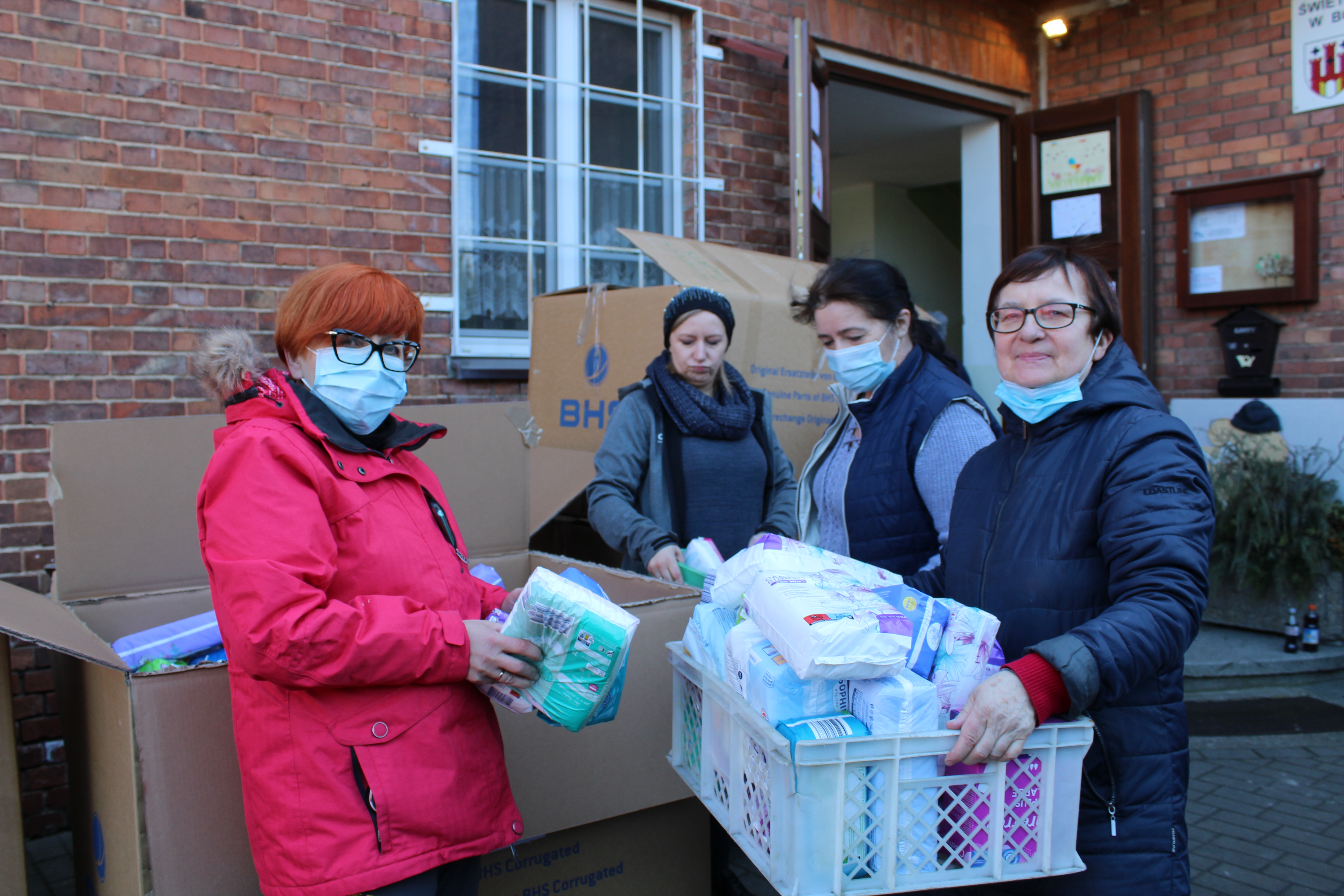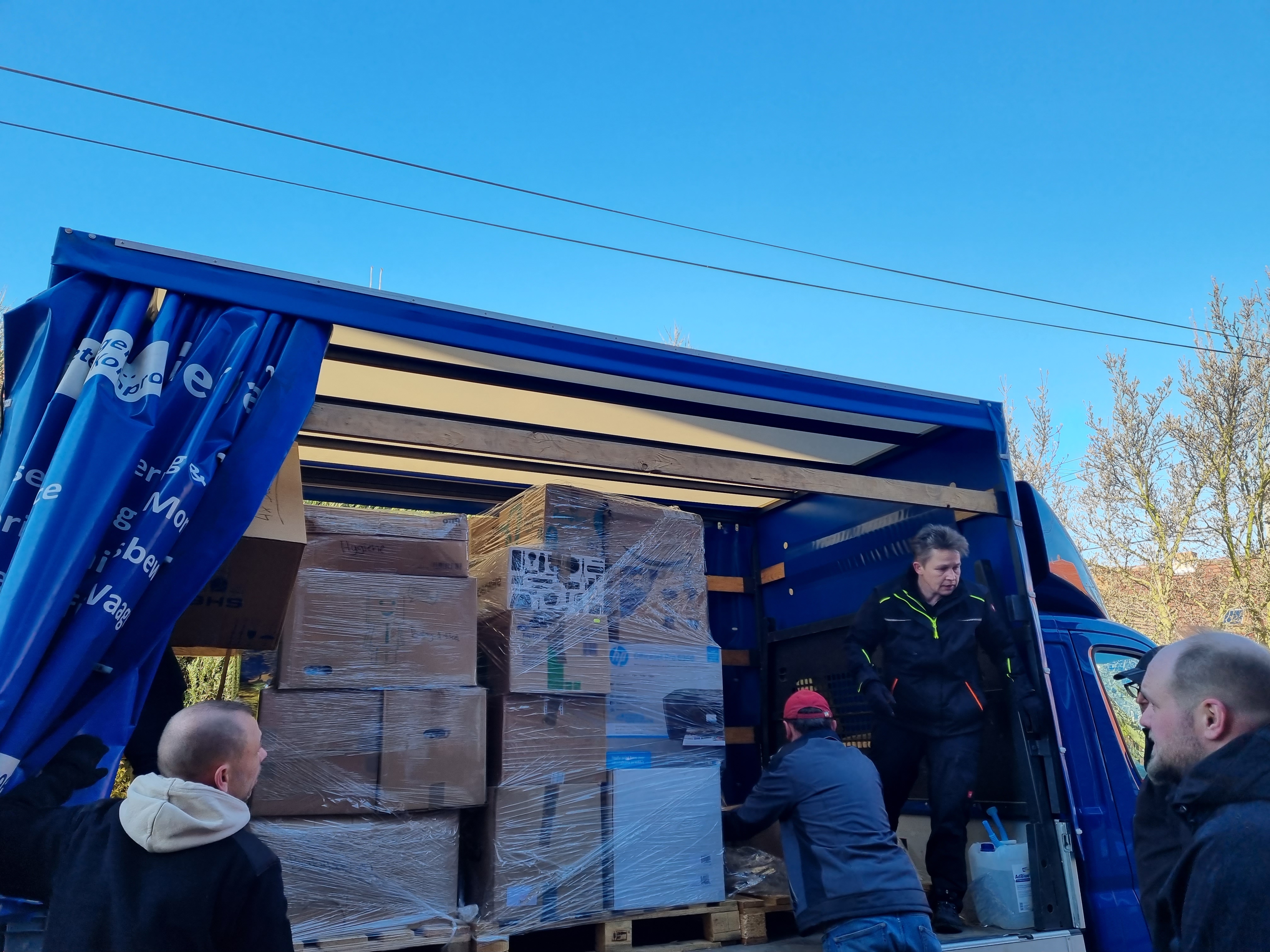 Am Samstag ging es nach einem ausgiebigen Frühstück nach Borkowice ins Gemeindezentrum, wo die acht Fahrzeuge und vier Anhänger mit Hilfe örtlicher Freiwilliger entladen wurden. Das Gemeindezentrum ist ähnlich wie in Mantel eine ehemalige Schule, die nun kurzfristig als Erstaufnahmeeinrichtung für ukrainische Flüchtlinge vorbereitet wurde. Ein Teil der Spenden verblieb direkt dort, ein weiterer Teil wurde noch am Samstagabend nach Berezhan in die Ukraine gebracht.