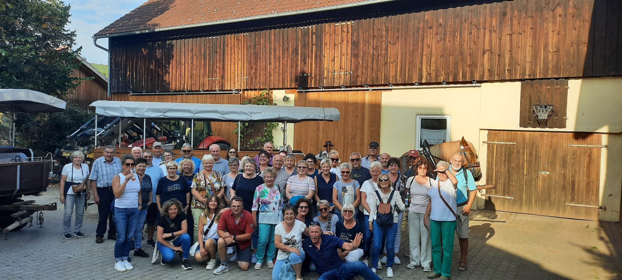 Am Sonntag, den 21.09.2025 startete ein mit Imkerfreunden voll besetzter Reisebus in Richtung Brombachsee. Im Bus begrüßte Vorsitzende Elke Hackbarth die Anwesenden, gab einen Überblick über das Programm und wünschte allen einige angenehme Stunden im Frankenland. Bei der Ankunft am Brombachsee gab es ein Frühstück am Bus, das von der Familie Hackbarth und Sieglinde Wolfinger serviert wurde. Danach nutzten die Mitreisenden die freie Zeit für einen Spaziergang und ließen es sich in den Kaffees am Rande des Sees gut gehen. Gegen Mittag brach die Reisegruppe nach Spalt auf. Dort standen bereits die Planwagen für die Rundfahrt durch Spalt bereit. Nach einem Stamperl für Wamperl, bestiegen die Imkerfreunde die drei Wägen, die von sechs süddeutschen Kaltblutpferden gezogen wurden und fuhren durch die Hopfenstadt mit Herz. Zu der Reisegruppe gesellte sich eine Reiseführerin, die den Imkerfreunden in den historischen Gassen Informationen zukommen ließ. Nach einer Brotzeit im Wiesengrund, wo die Pferde wohnen, ging es zurück zum Bus. Am frühen Abend kehrte die Reisegruppe zufrieden und mit vielen neuen Eindrücken im Gepäck wieder nach Mantel zurück.