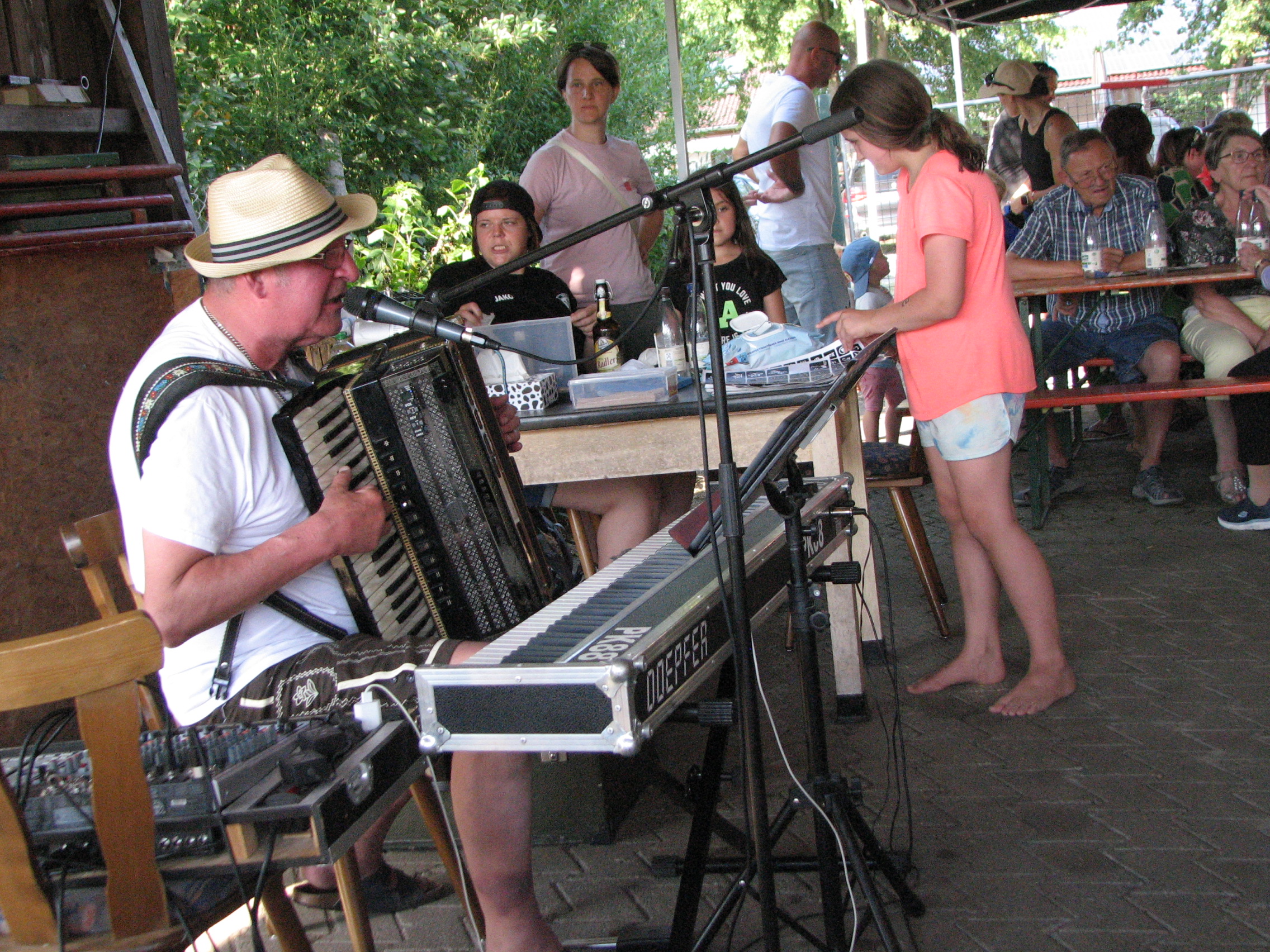 Am späten Nachmittag sorgte Mike Biller mit reichhaltigem Repertoire aus den sechziger bis neunziger Jahren für musikalische Unterhaltung. Mit Einbruch der Dämmerung schwangen die gut gelaunten Besucher noch das Tanzbein und forderten mehrfach eine Zugabe. Am Ende waren die Gäste voll des Lobes und Vorsitzender Klemm stellte ein weiteres Sommerfest mit Oldiemusik für das neue Jahr in Aussicht.