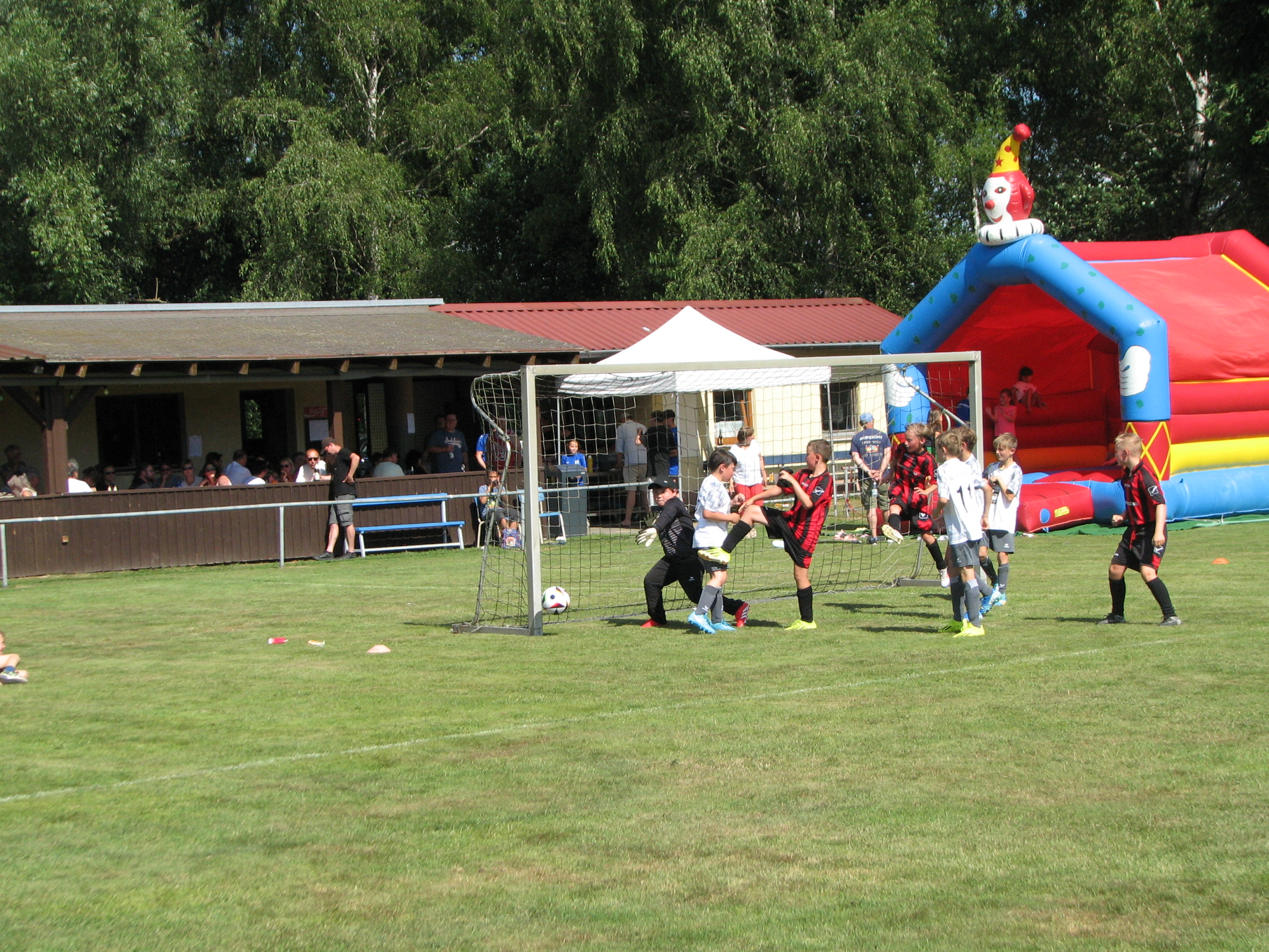 Mehr als 50 begeisterte Buben und Mädchen der E-, F- und G-Jugend zeigten bei Spielen auf dem Kleinfeld unter der Leitung von Fußballkennern und ehemaligen Aktiven erste fußballerische Finessen und geizten auch mit Toren nicht. Spieler der B-Jugend, die als Meister in ihrer Gruppe die letzte Saison beendeten, stellten mit einem Meßgerät die Schusskraft von Spielern jeden Alters fest. Ein Spieler brachte es bereits auf 53 km/h. Zwei Damen von der Frauenelf versorgten die Kinder mit bedeutungsvollen Tattoos. Die Kleinen sah man häufig auf der Hüpfburg, die den ganzen Nachmittag über ihren Bewegungsdrang auslebten.