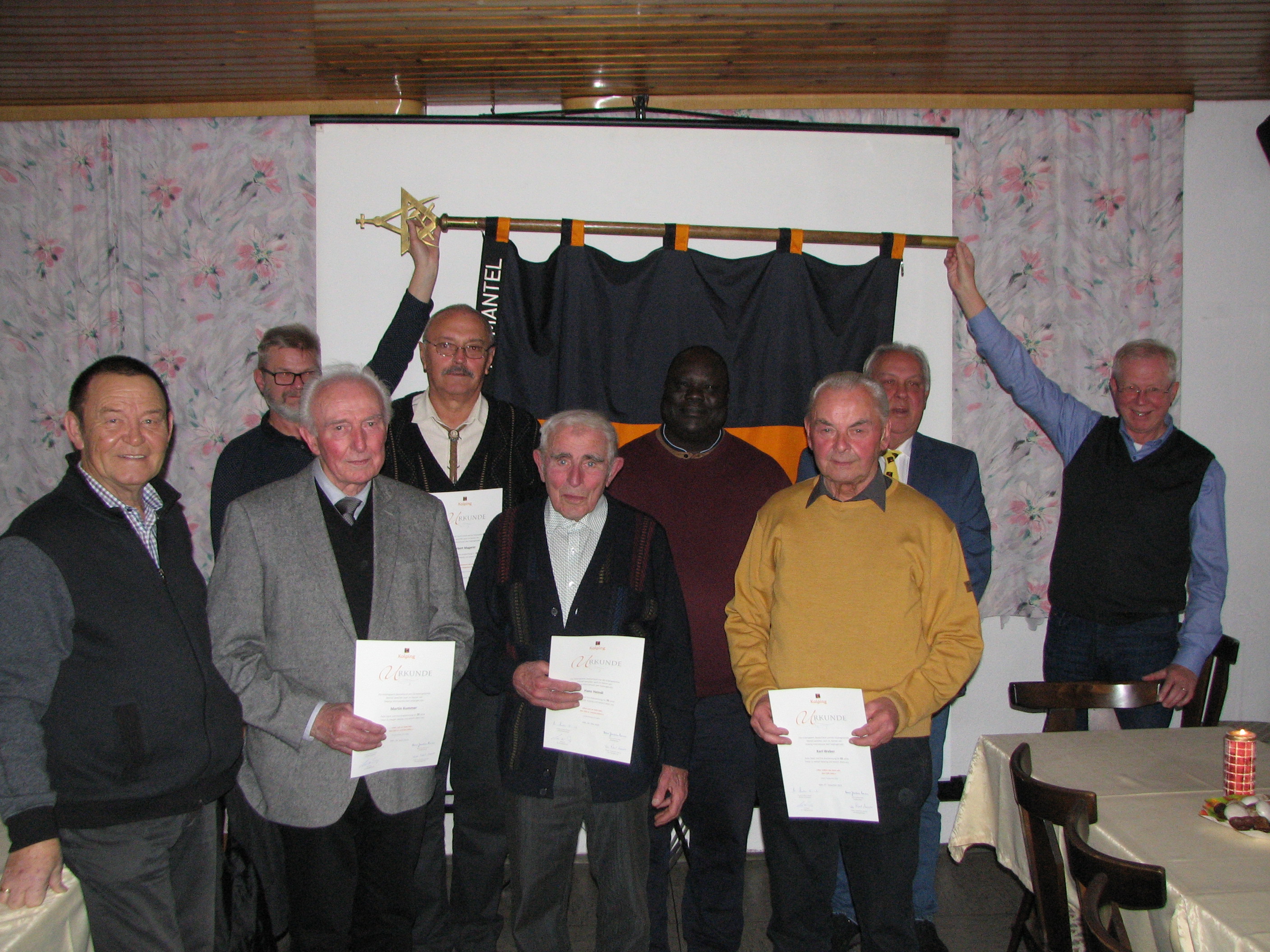 Vorsitzender Georg Seiser und sein Vertreter Georg Schlehuber nahmen die Ehrungen vor. Für 70 Jahre Mitgliedschaft erhielten Martin Kummer und Hans Heindl sowie Karl Weber für 65 Jahre Treue eine Urkunde. Ebenfalls 70 Jahre gehört Willi Koller der Kolpingsfamilie Mantel an. Wegen Verhinderung des Vaters nahm Sohn Roland die Urkunde entgegen. Für 40 Jahre Treue erhielt Norbert Magerer eine Urkunde und den Kolpingteller. Kolpingteller und Urkunde für 40jährige Treue werden nachgereicht an Andreas Bertelshofer. Ebenfalls nachgereicht werden Urkunden für 65 Jahre Mitgliedschat an Bernhard Schneider und für 60 Jahre Treue an Oskar Gruber.